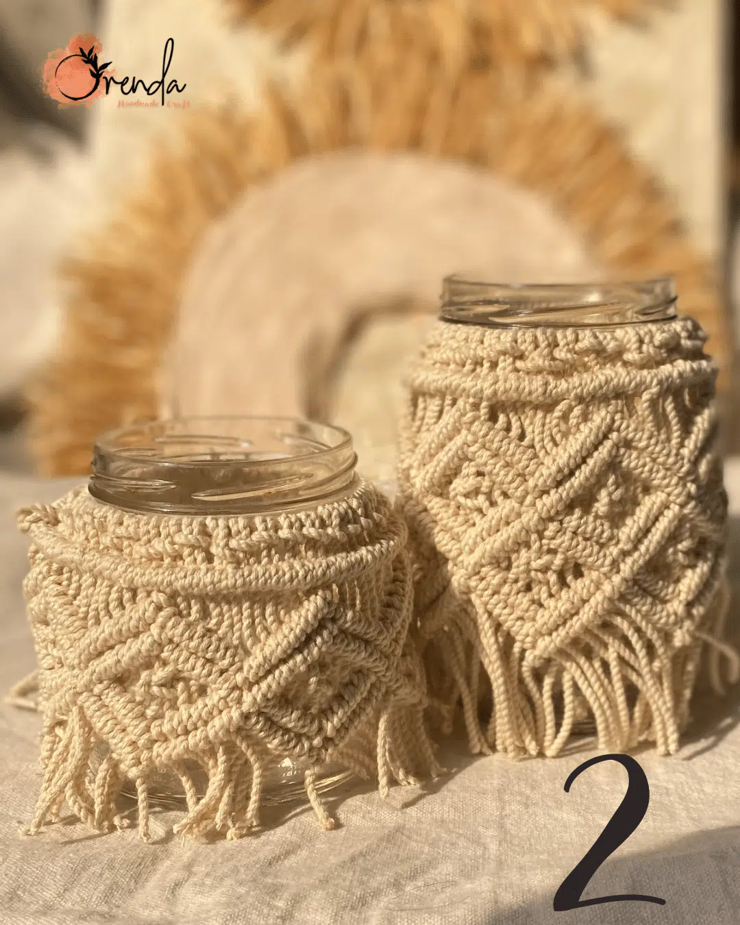 Macrame vases and lanterns are beautiful decorative accessories in the trendy boho style and conjure up a cozy atmosphere in every home. Versatile in use and can be combined with other vases, candles or flowers as desired.