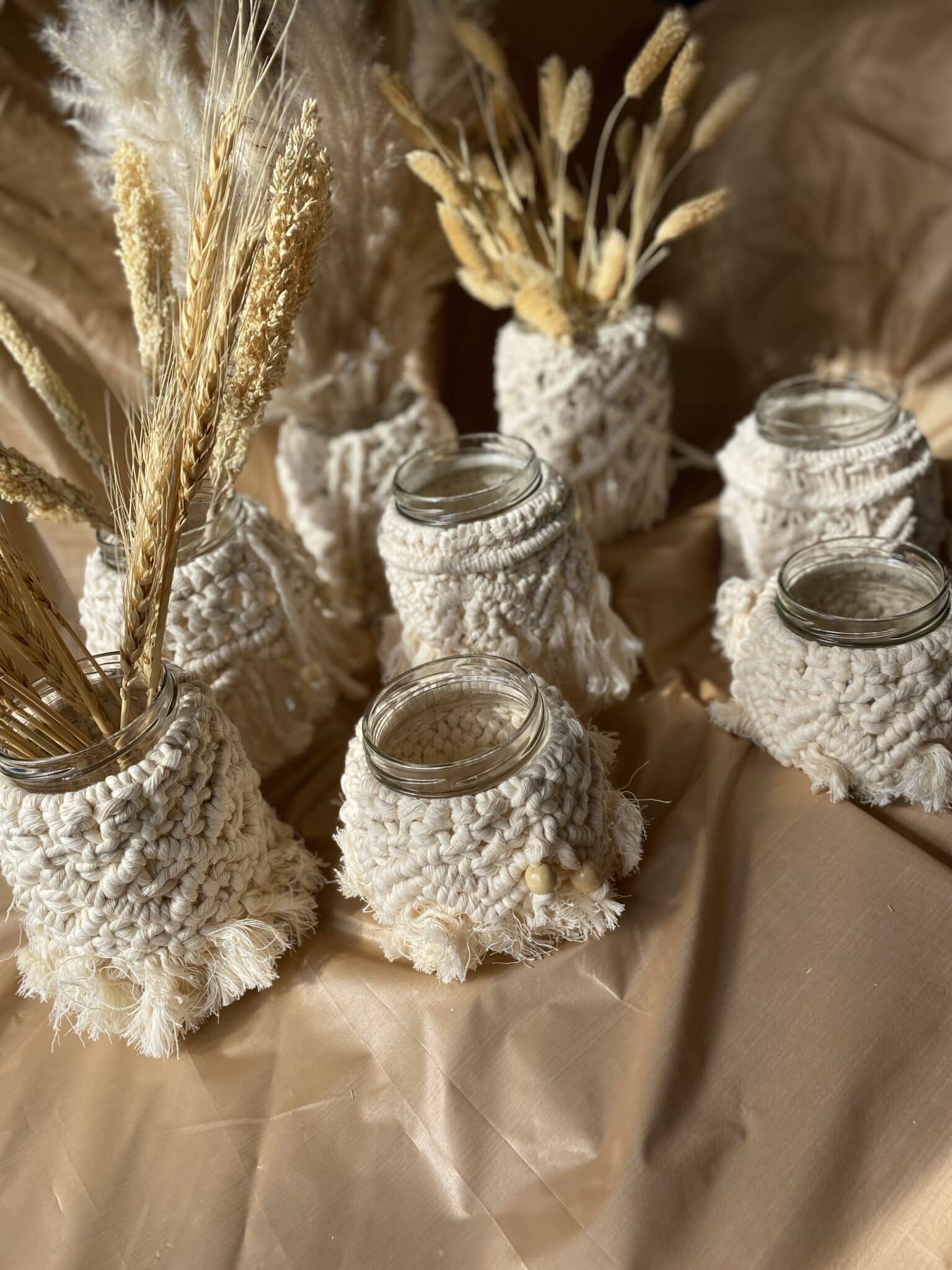 Macrame vases and lanterns are beautiful decorative accessories in the trendy boho style and conjure up a cozy atmosphere in every home. Versatile in use and can be combined with other vases, candles or flowers as desired.