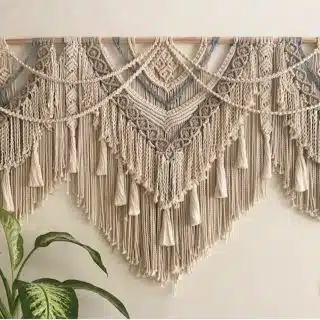 This Bohemian table lampshade is handwoven with a macrame cord decorated with 2 rainbows And 4 pompoms.