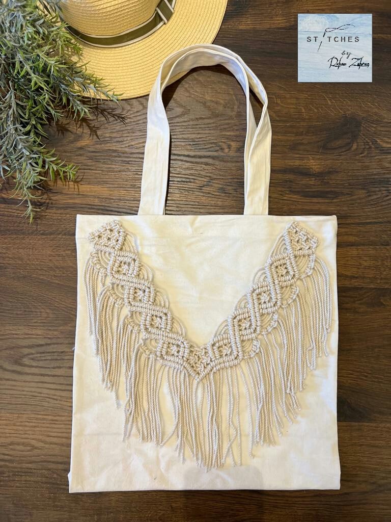 These are high-quality, eco-friendly, beautifully sewed canvas bags, decorated with 100%  cotton cord macrame