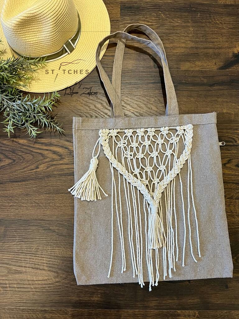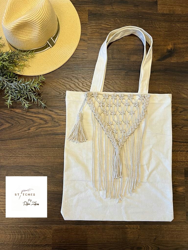 These are high-quality, eco-friendly, beautifully sewed canvas bags, decorated with 100% cotton cord macrame