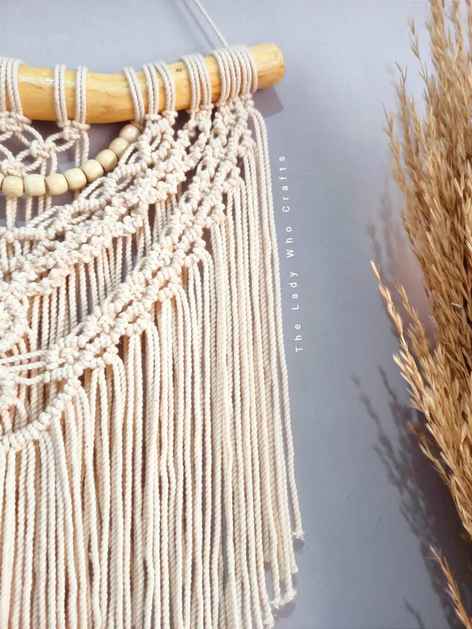 Add an elegant and cozy touch to your home with our unique macrame wall hanging with wood beads and cotton cords ✨
