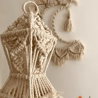 Macrame wall shelf with mint tassels