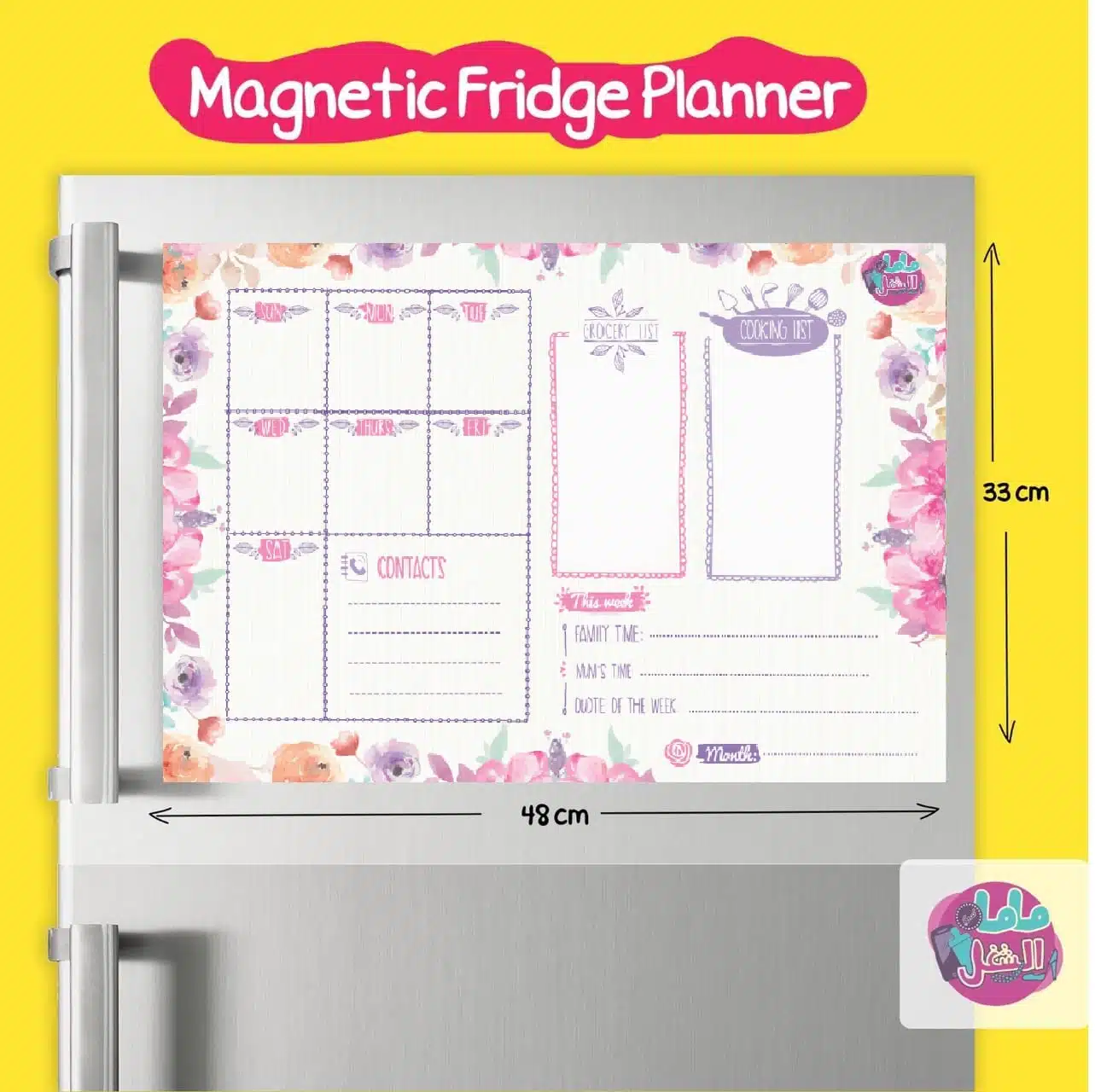 Erasable magnetic fridge board planner. The planner is divided into weekdays and includes different sections such as: