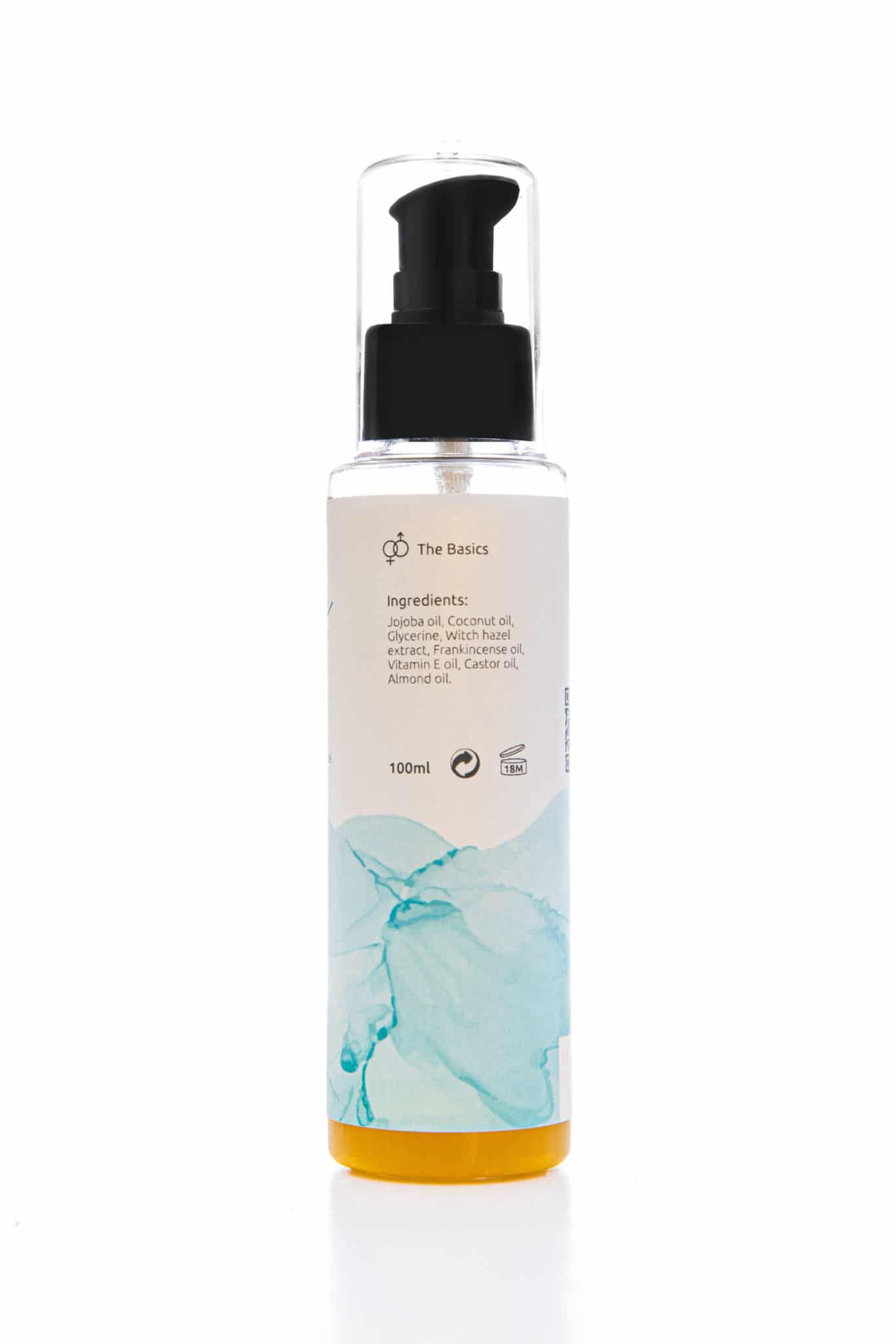 Jojoba oil, Coconut oil, Glycerin, Witchhazel extract, Frankincense oil, Vitamin E oil, Castor oil, Almond oil
