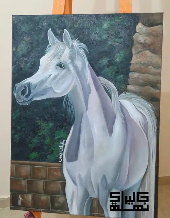 Malik Elamin Original white horse Size 60 * 80 cm Oil painting on canvas