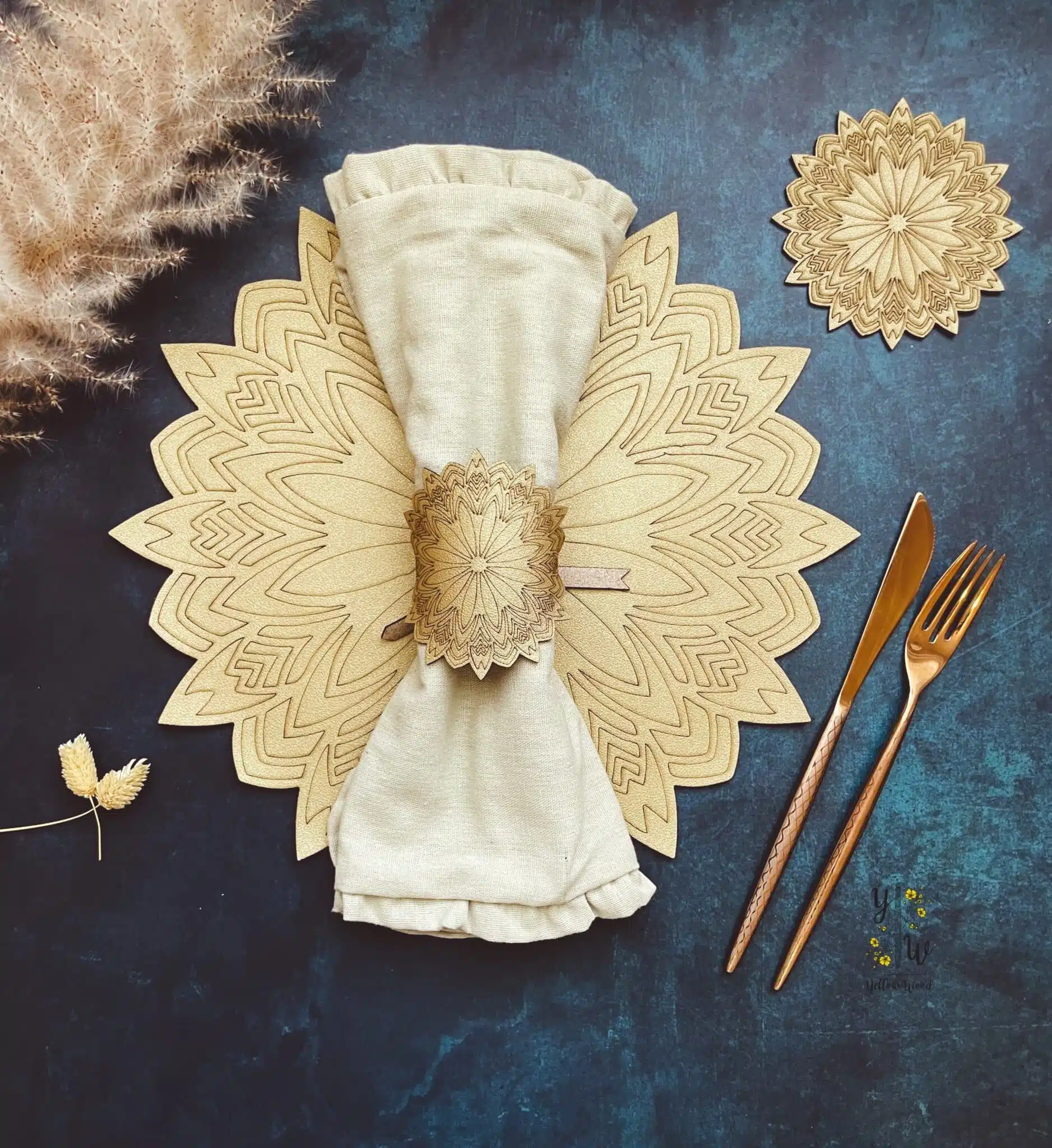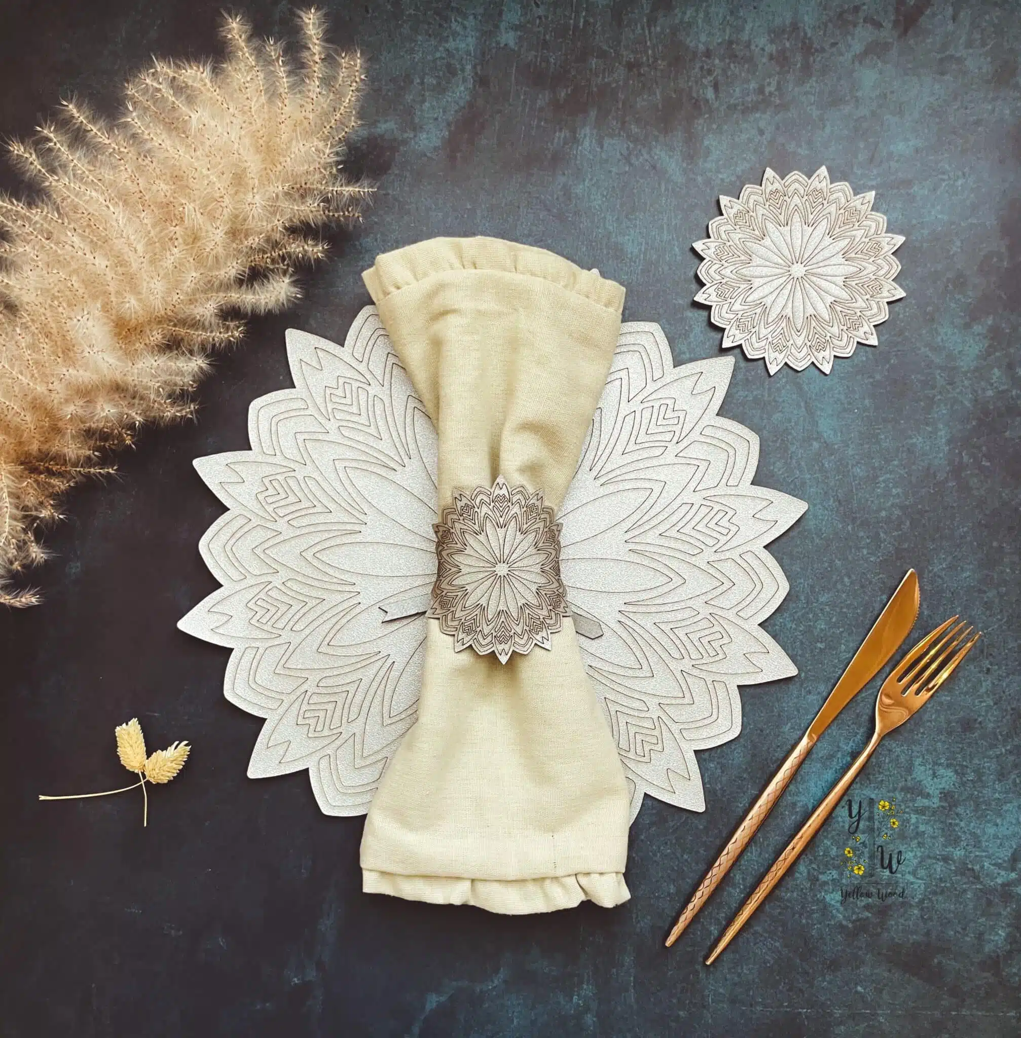 | Set | Silver Napkin Holder, Gold Napkin Holder, Rose Gold Napkin holder, Silver Placemat, Gold Placemat, Rose Gold Placemat, Silver Coaster, Gold Coaster, Rose Gold Coaster |