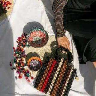 Check GHAGARIA’s MARYMAR bag made from Black pearl and silver beads. You can wear it for every day. It will fit everything and even more.