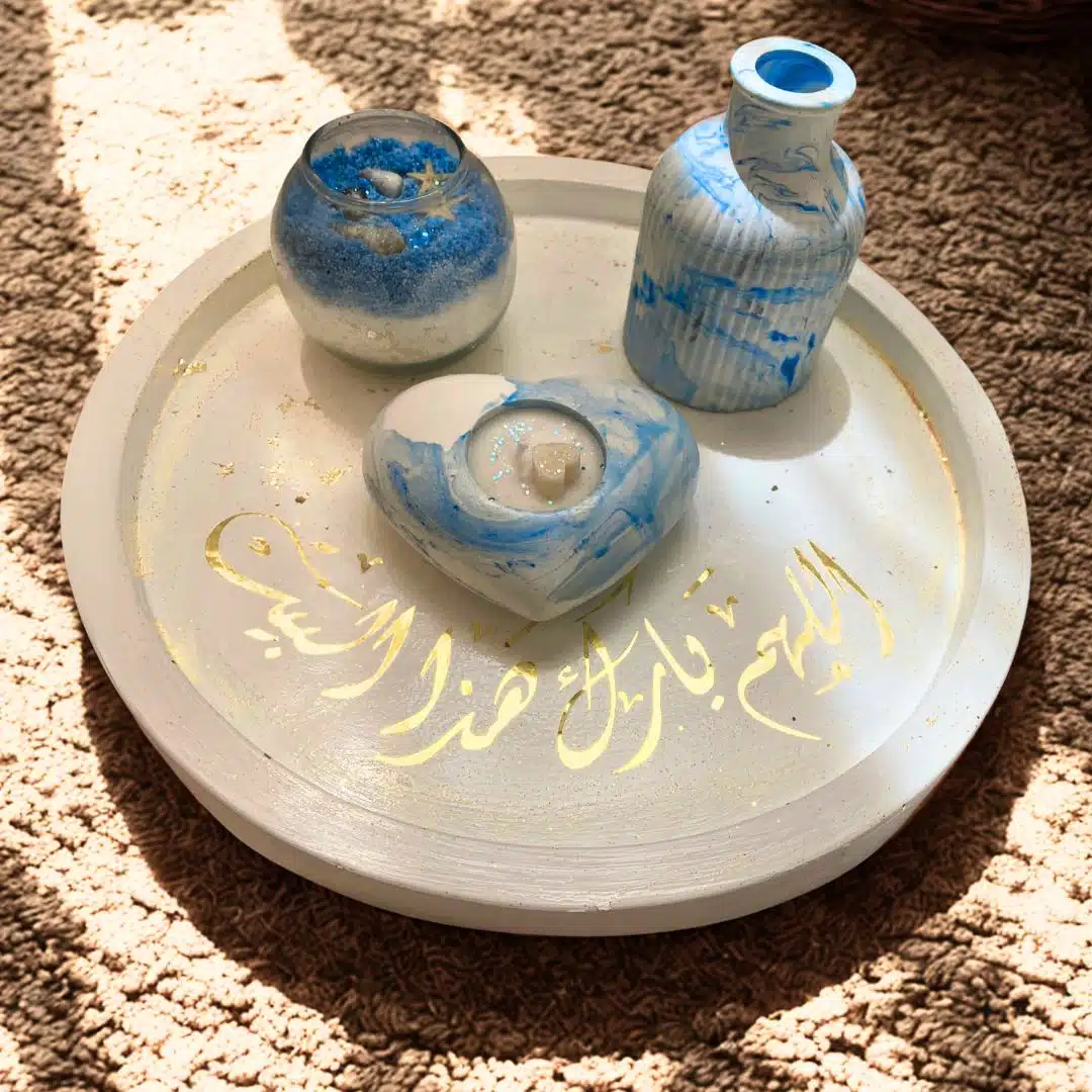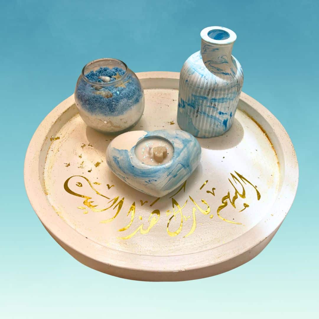round concrete coaster اللهم بارك هذا البيت (40 cm) (white)