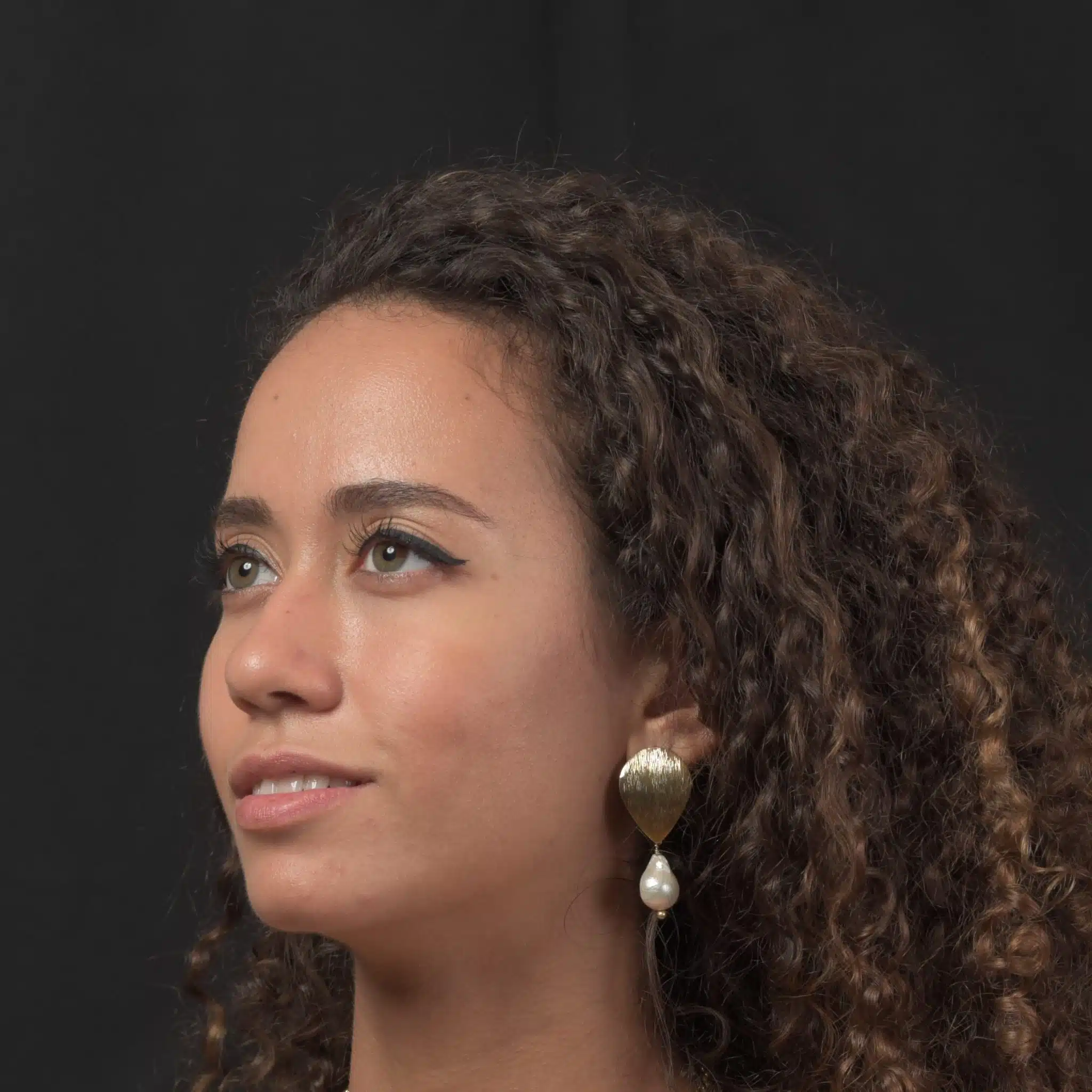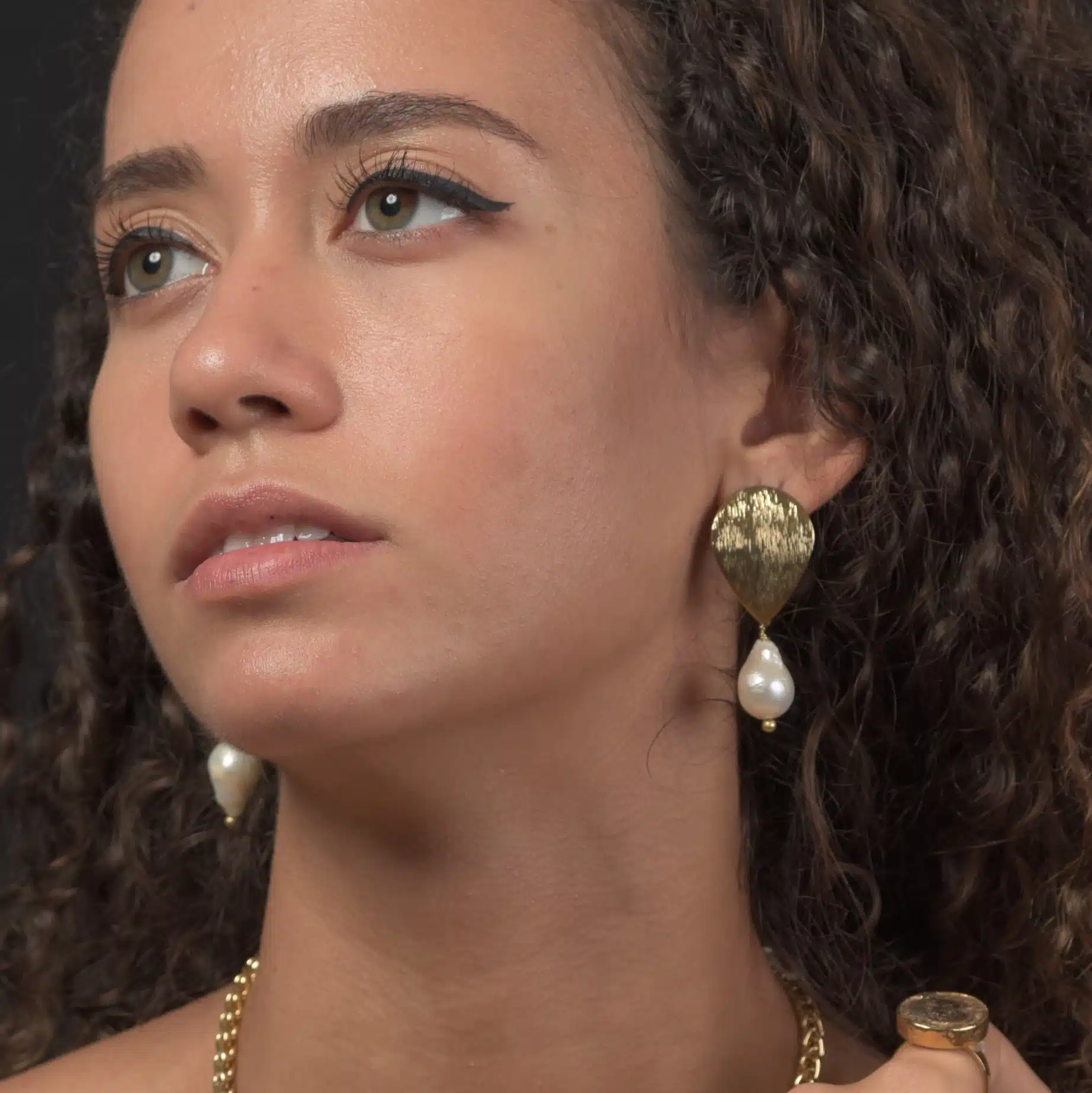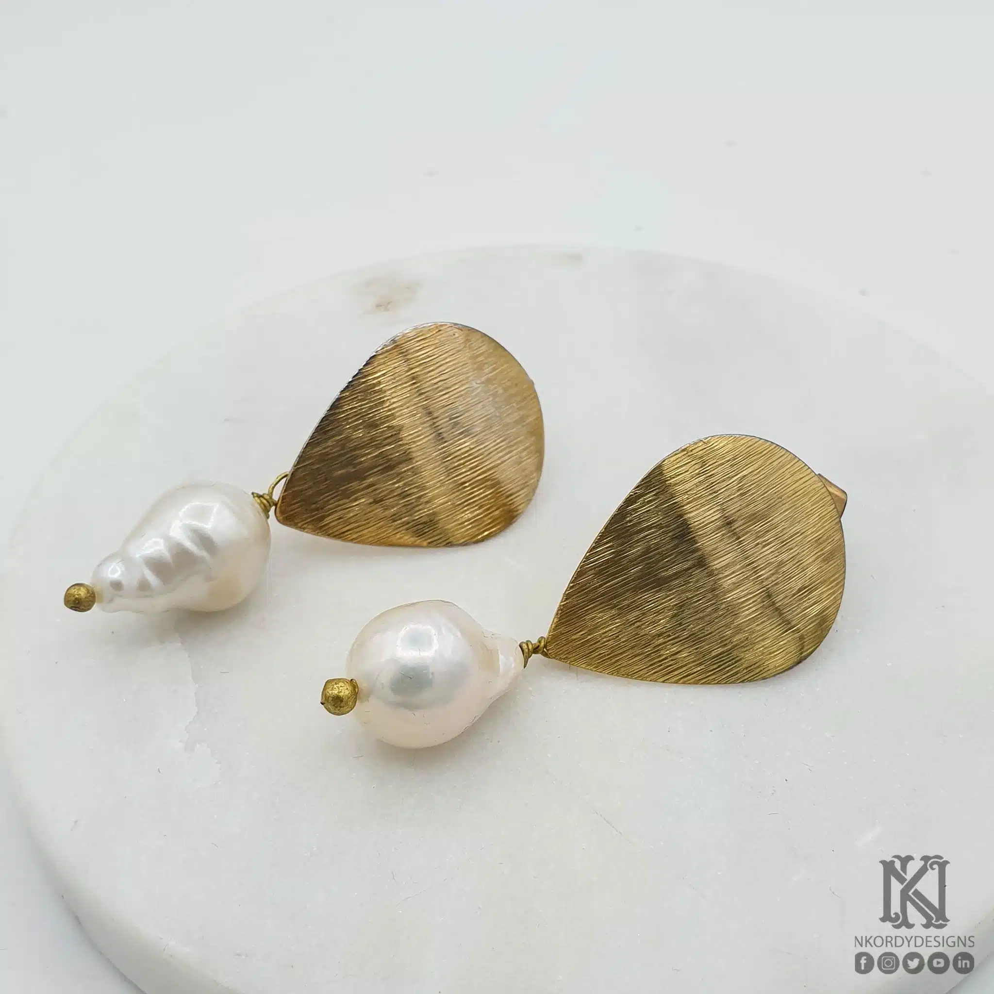 Gold plated pear shaped matt earrings with natural pearls.