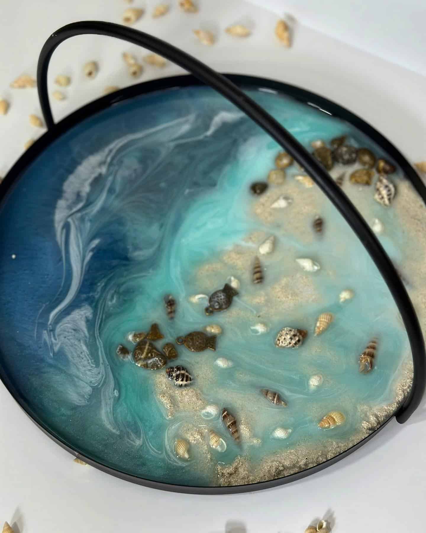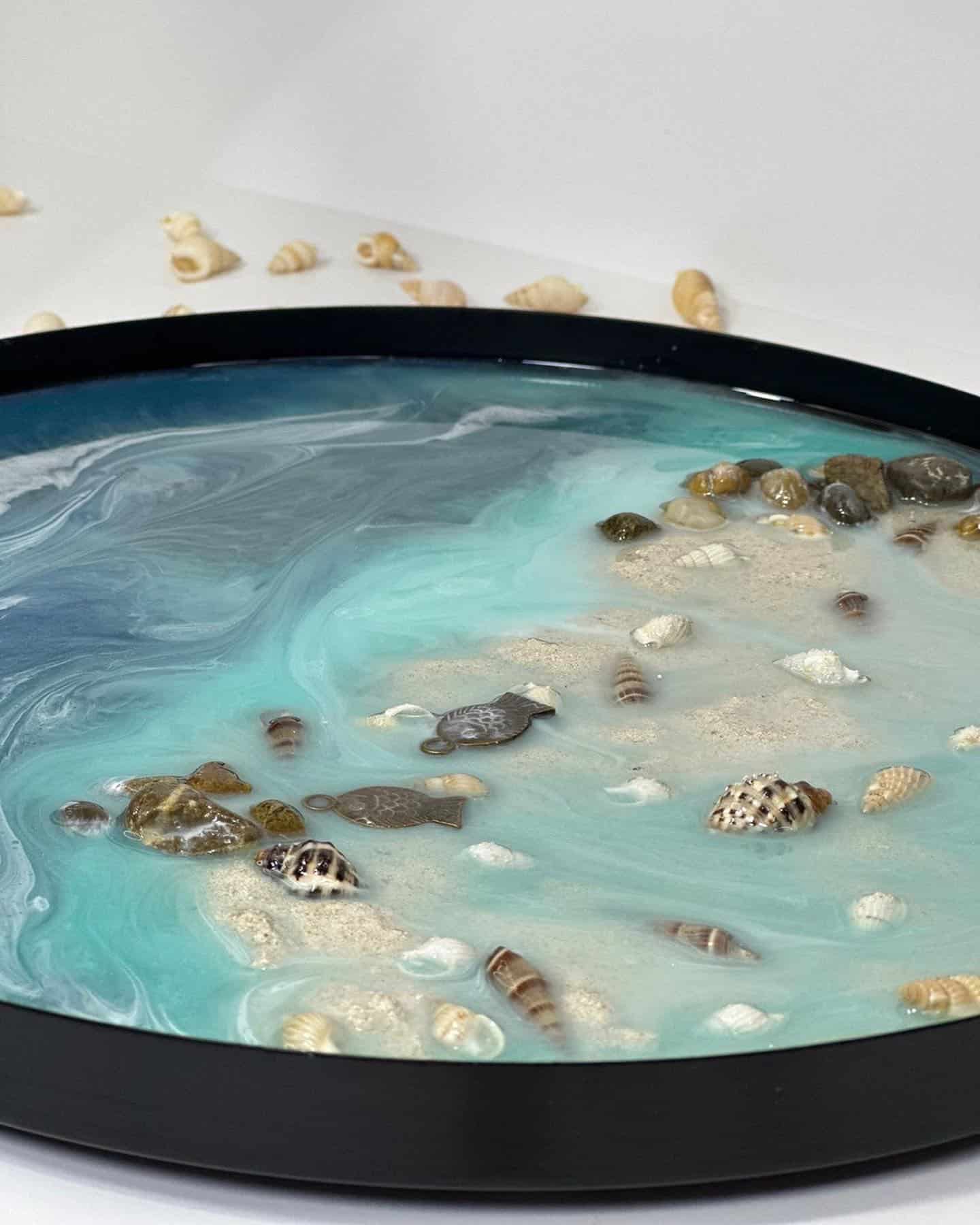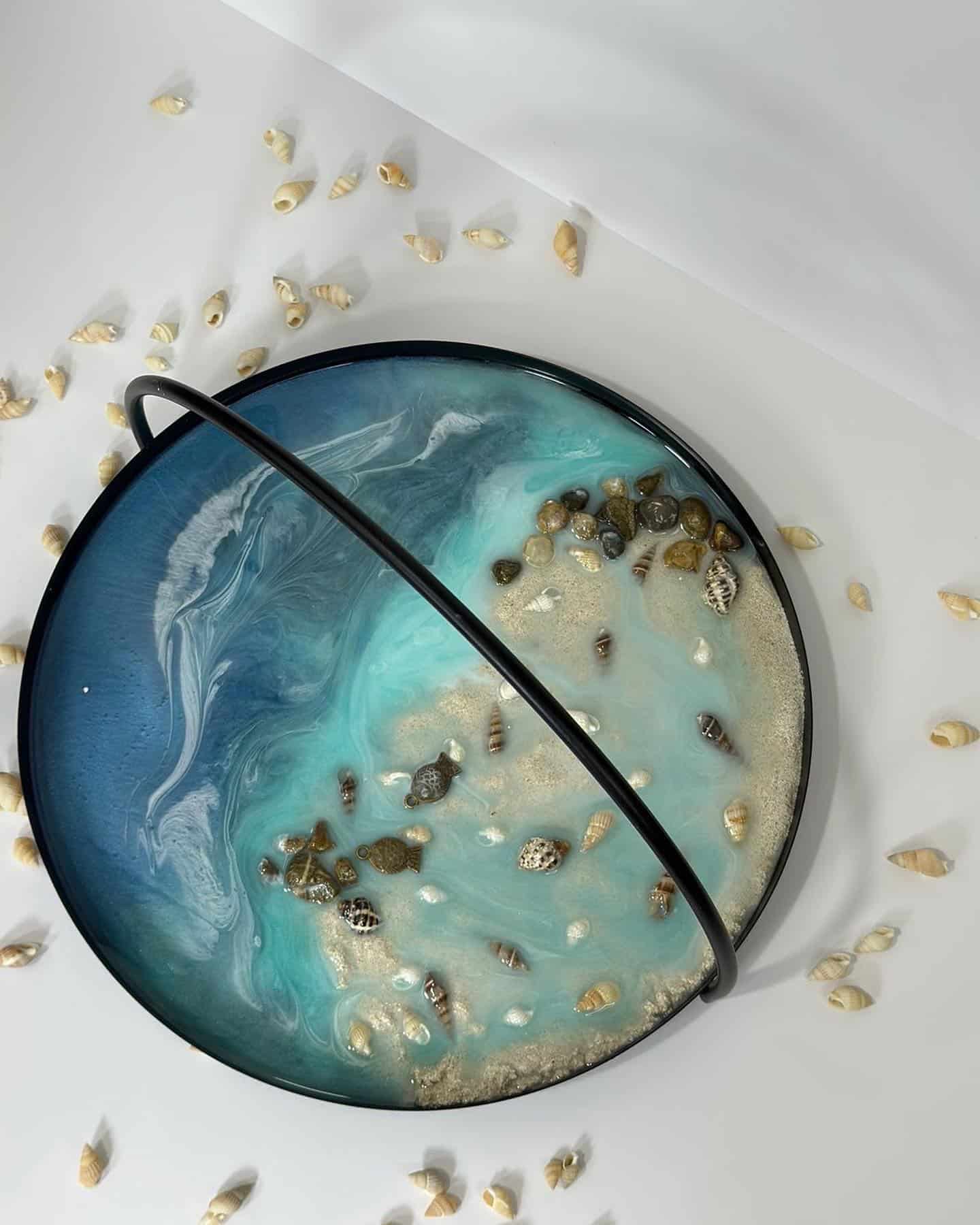 Steel circle tray with resin, sea theme, diameter 30 cm