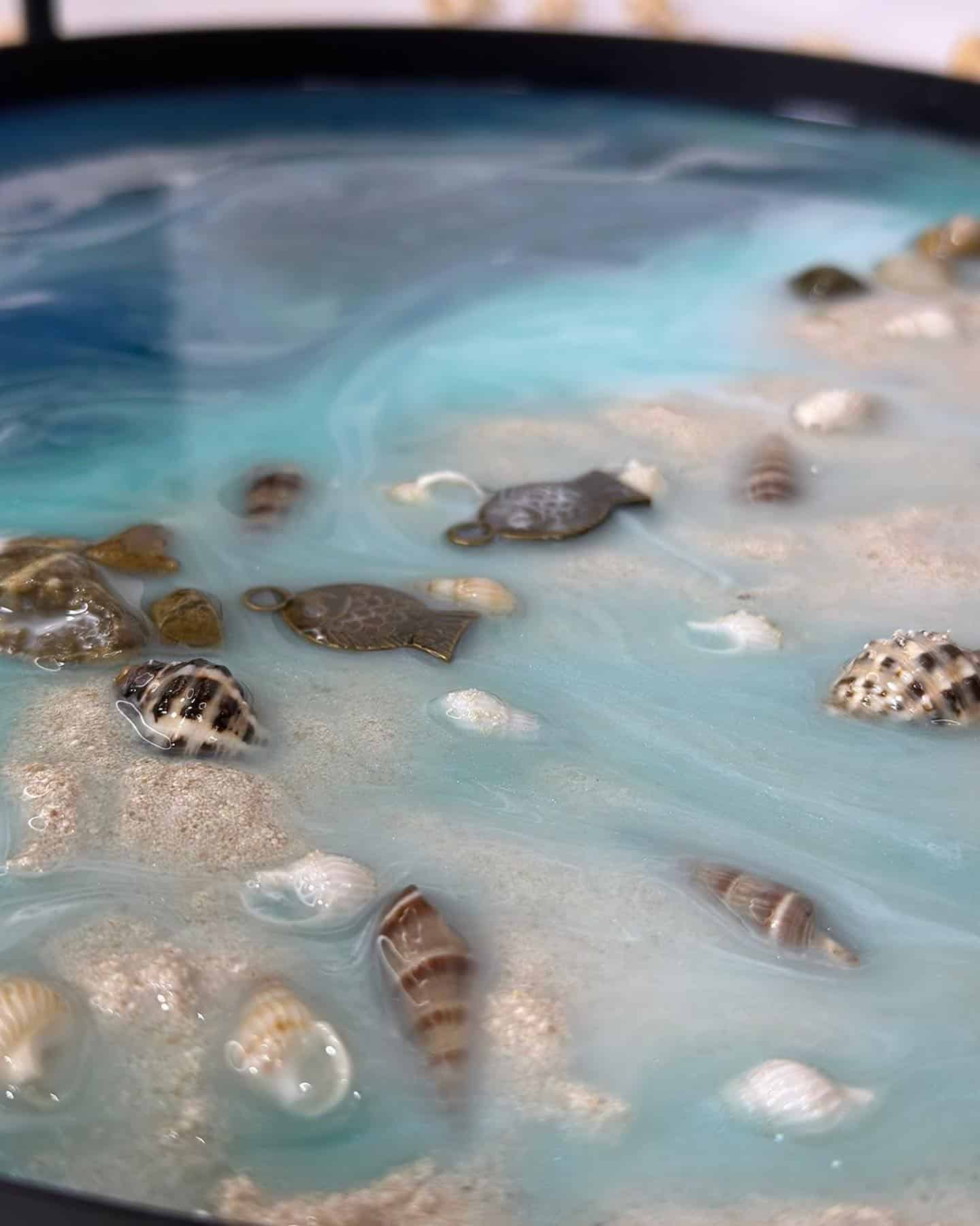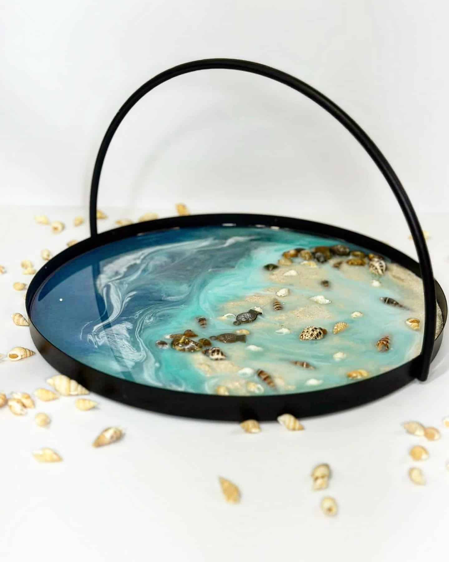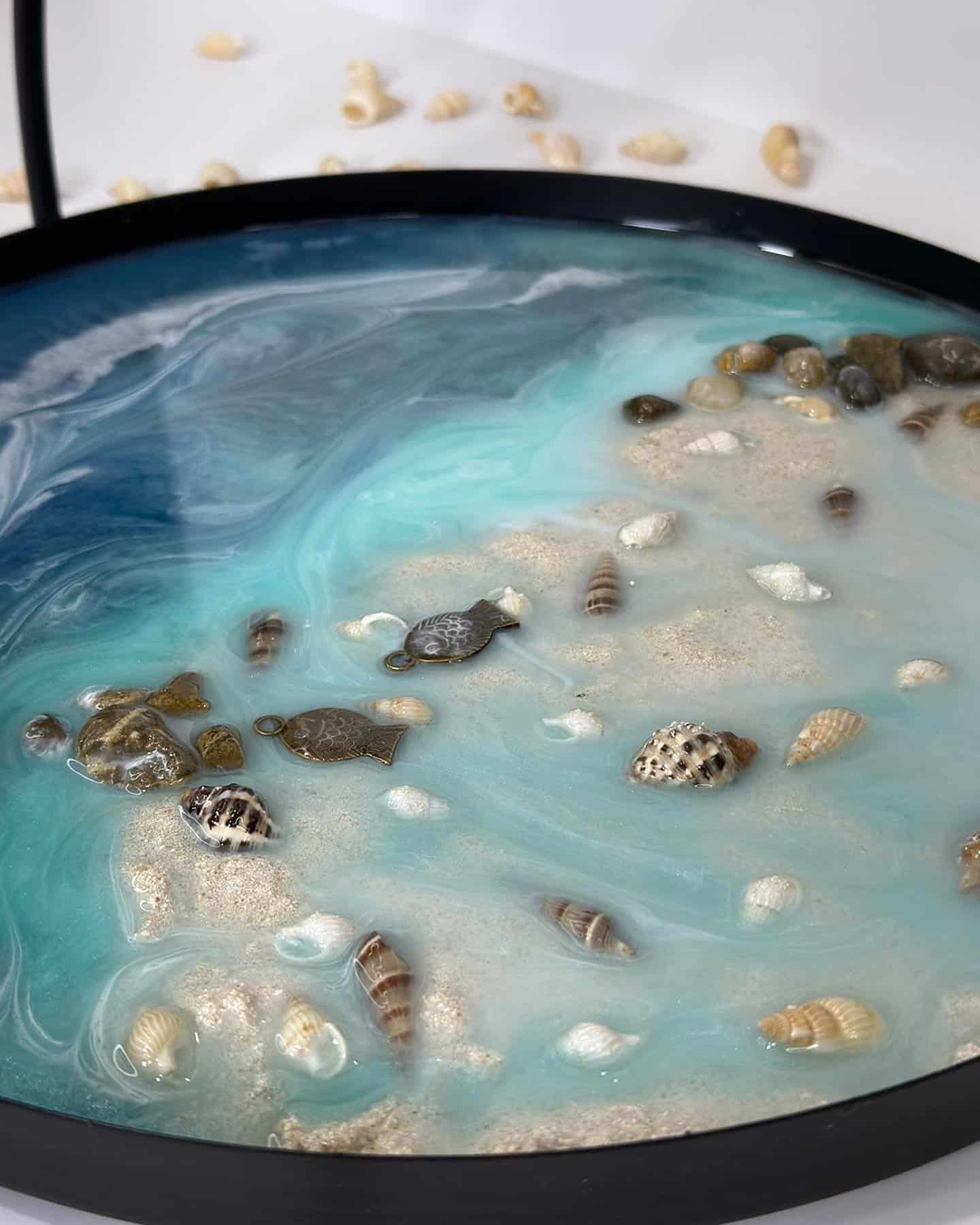 Steel circle tray with resin, sea theme, diameter 30 cm