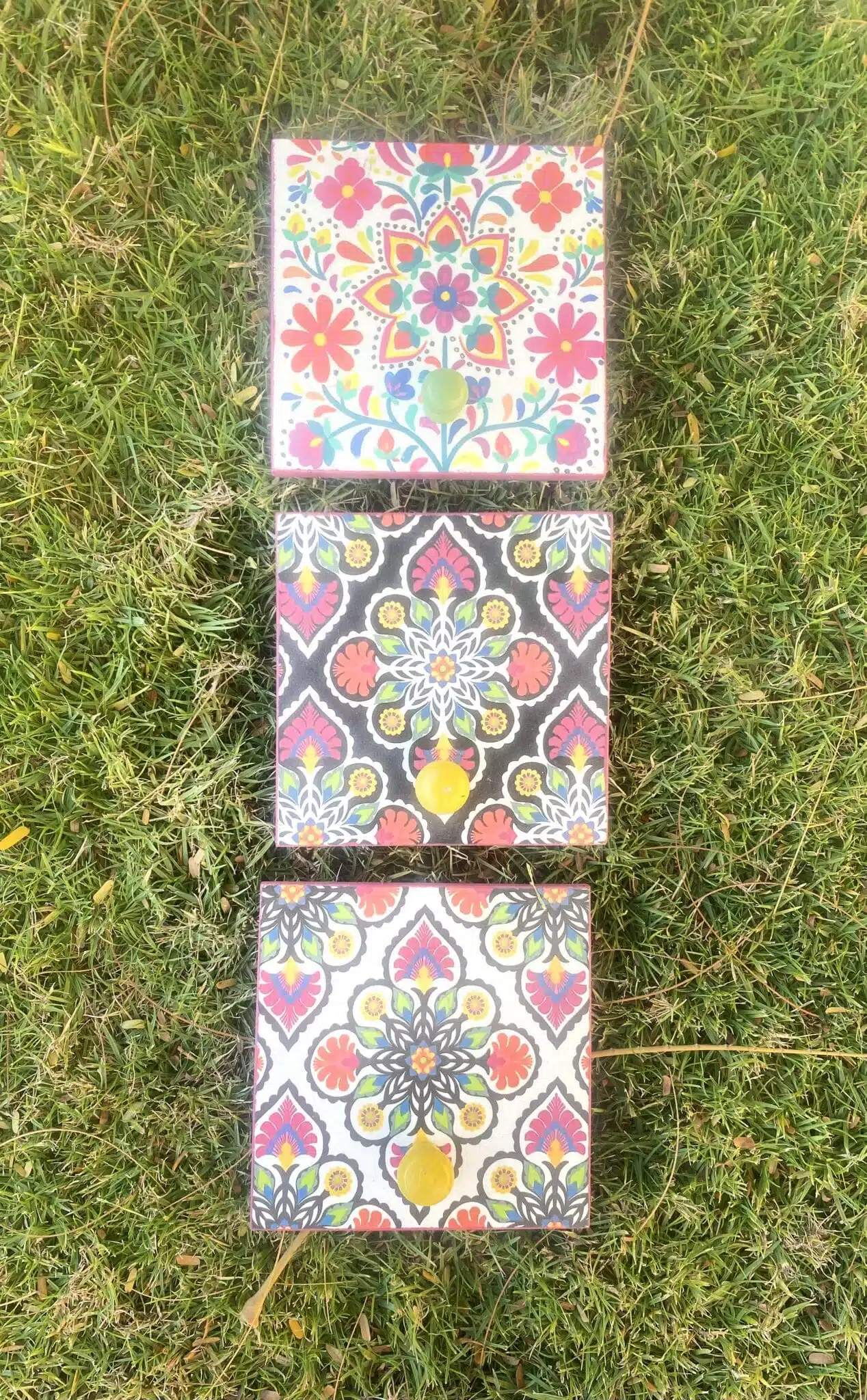Wooden set of hangers in Mexican tiles design