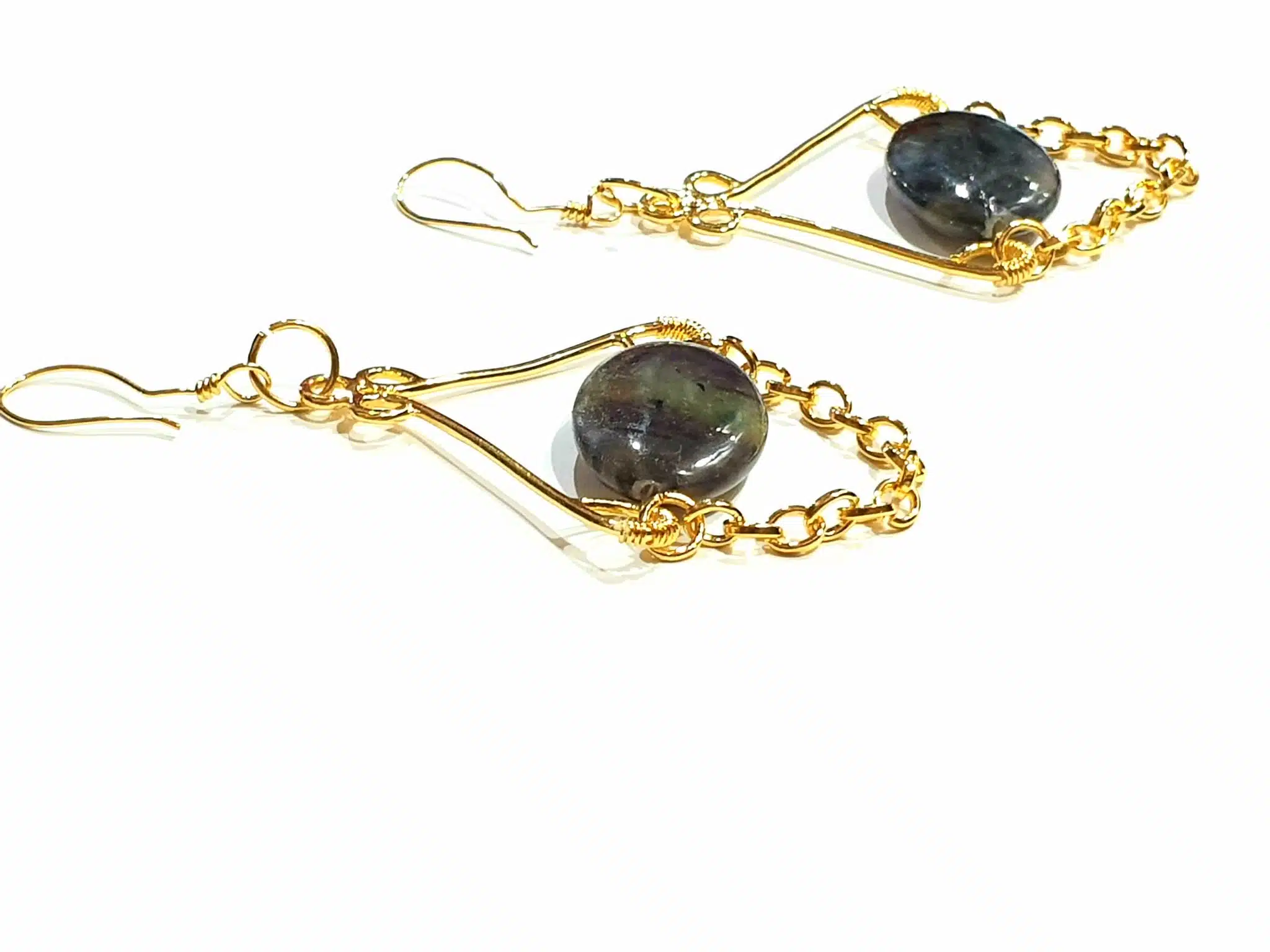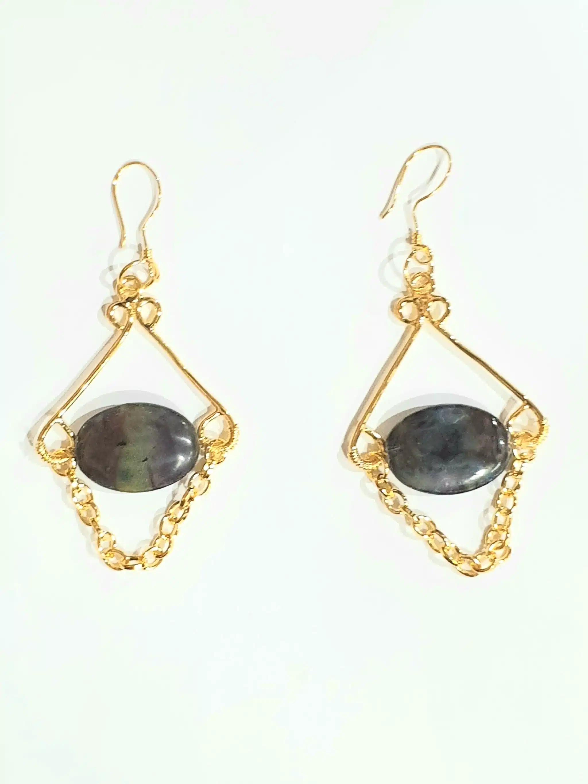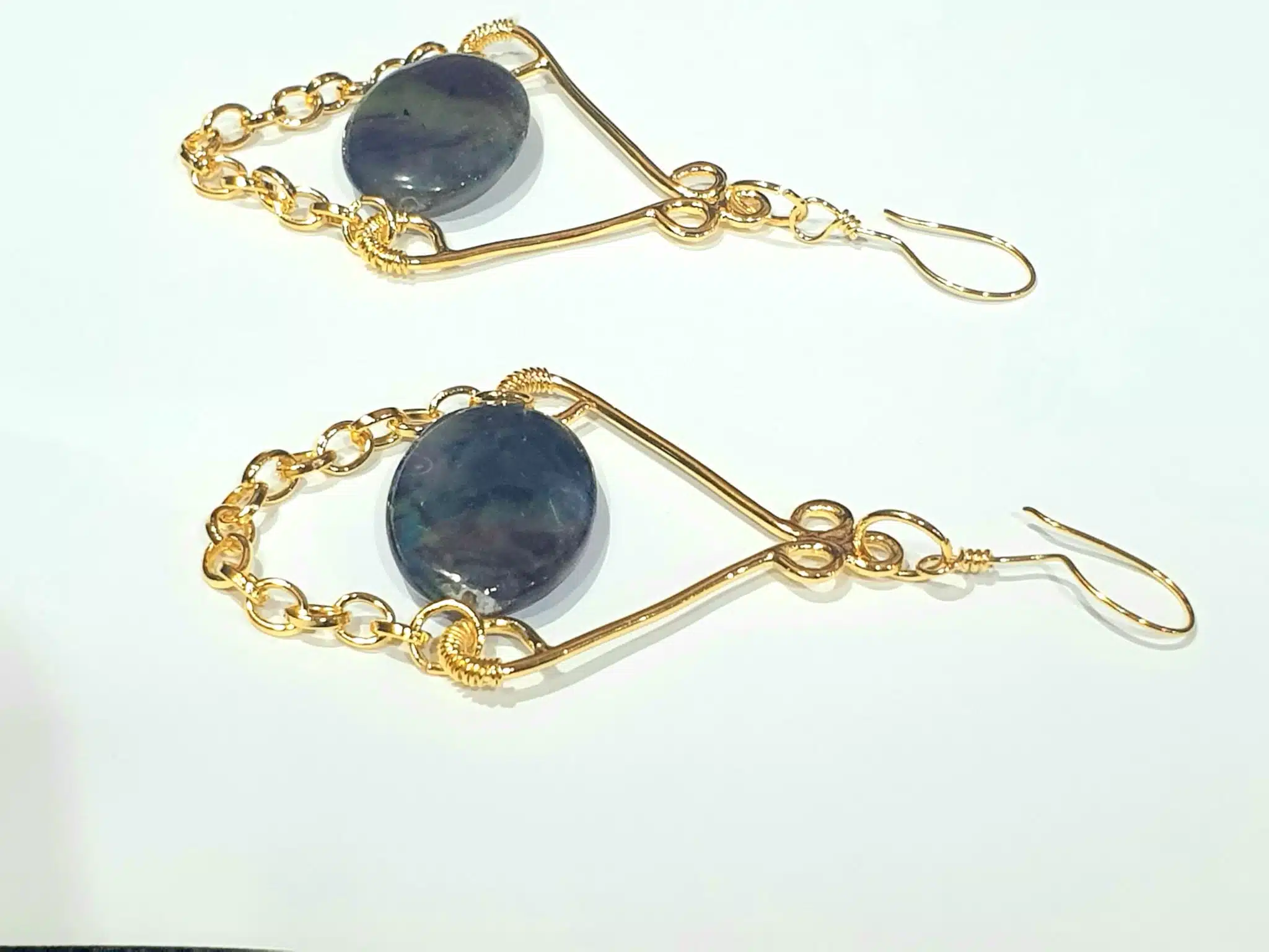 Gold plated brass earring with flat agate stone.