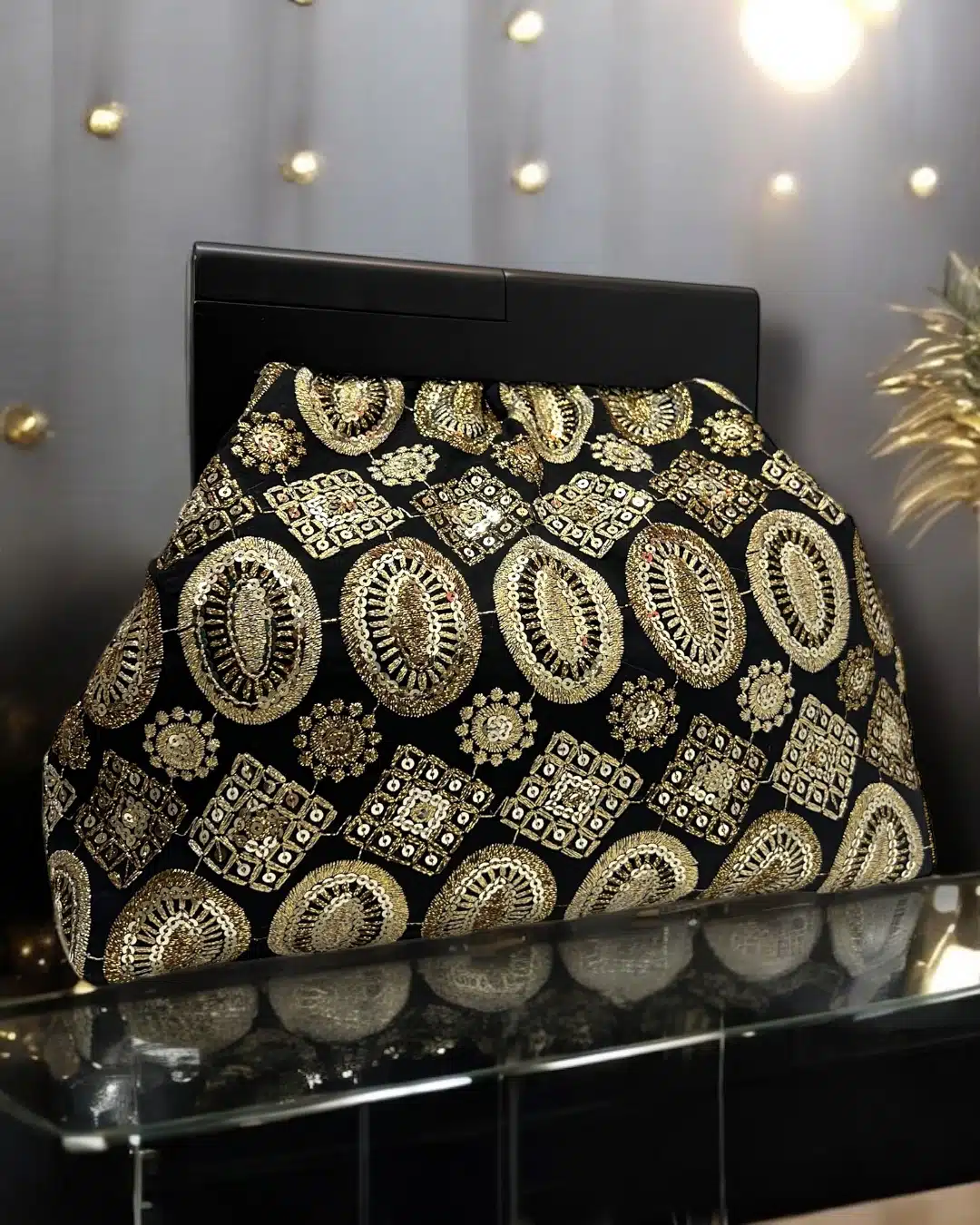 Midnight gold clutch
