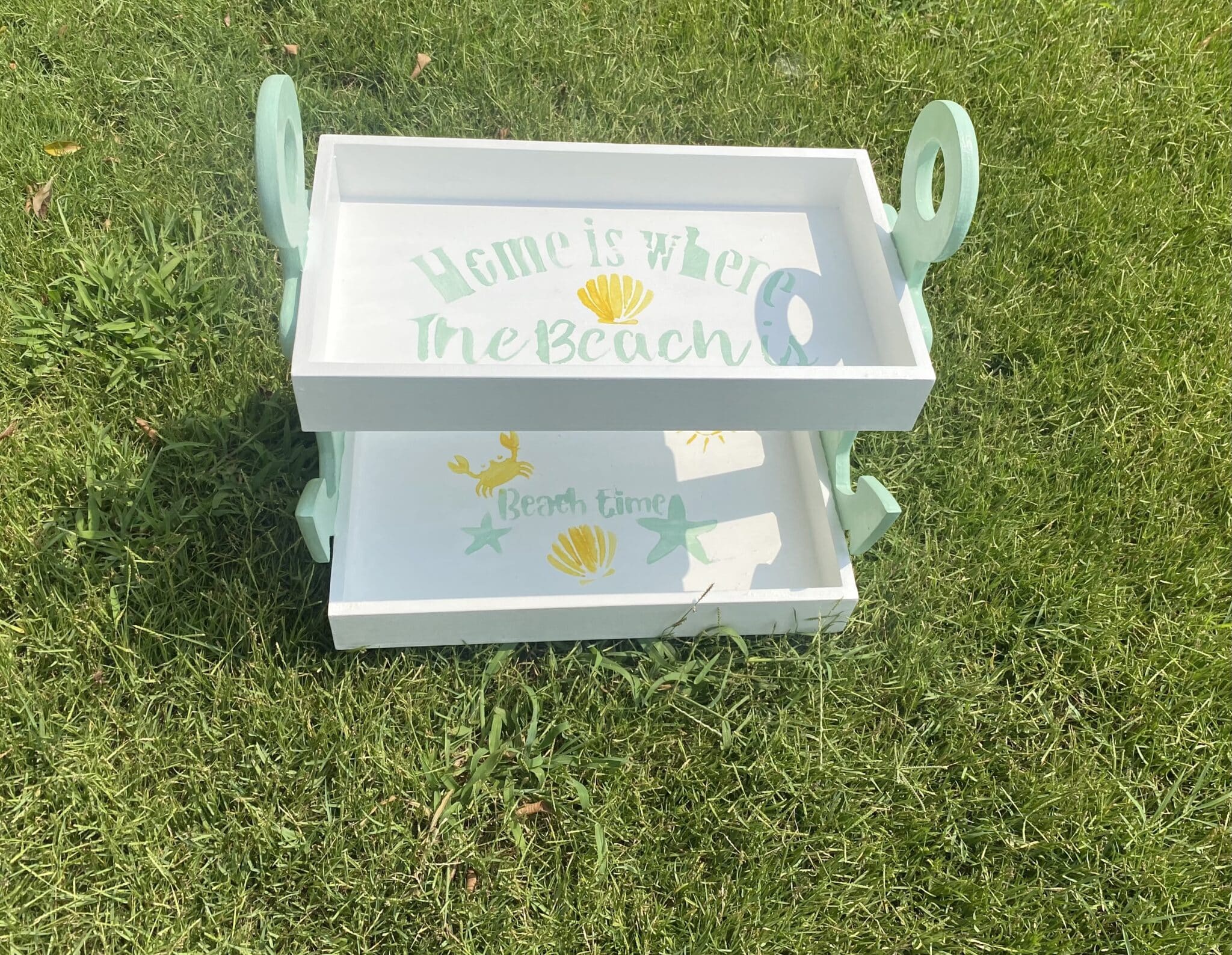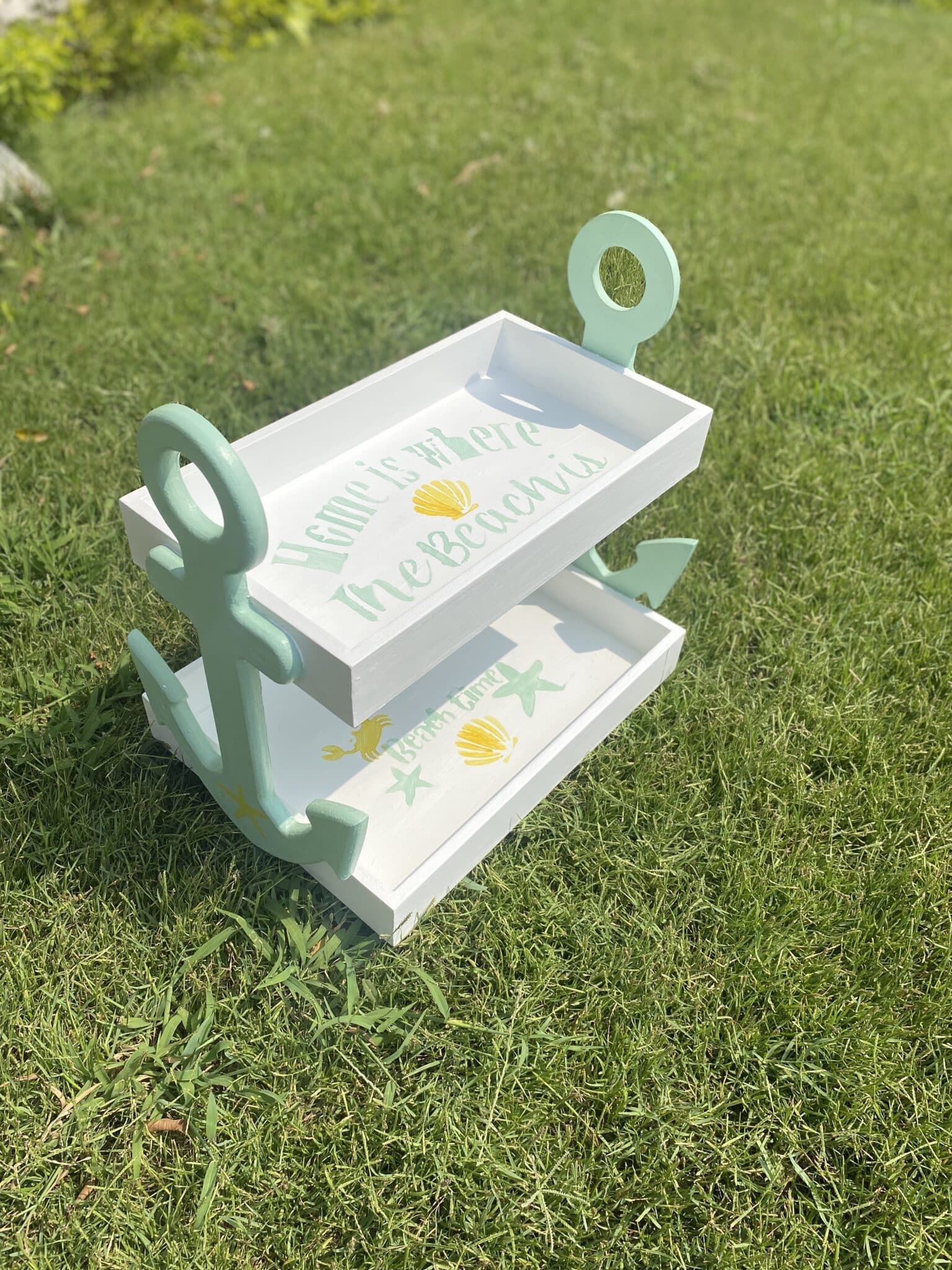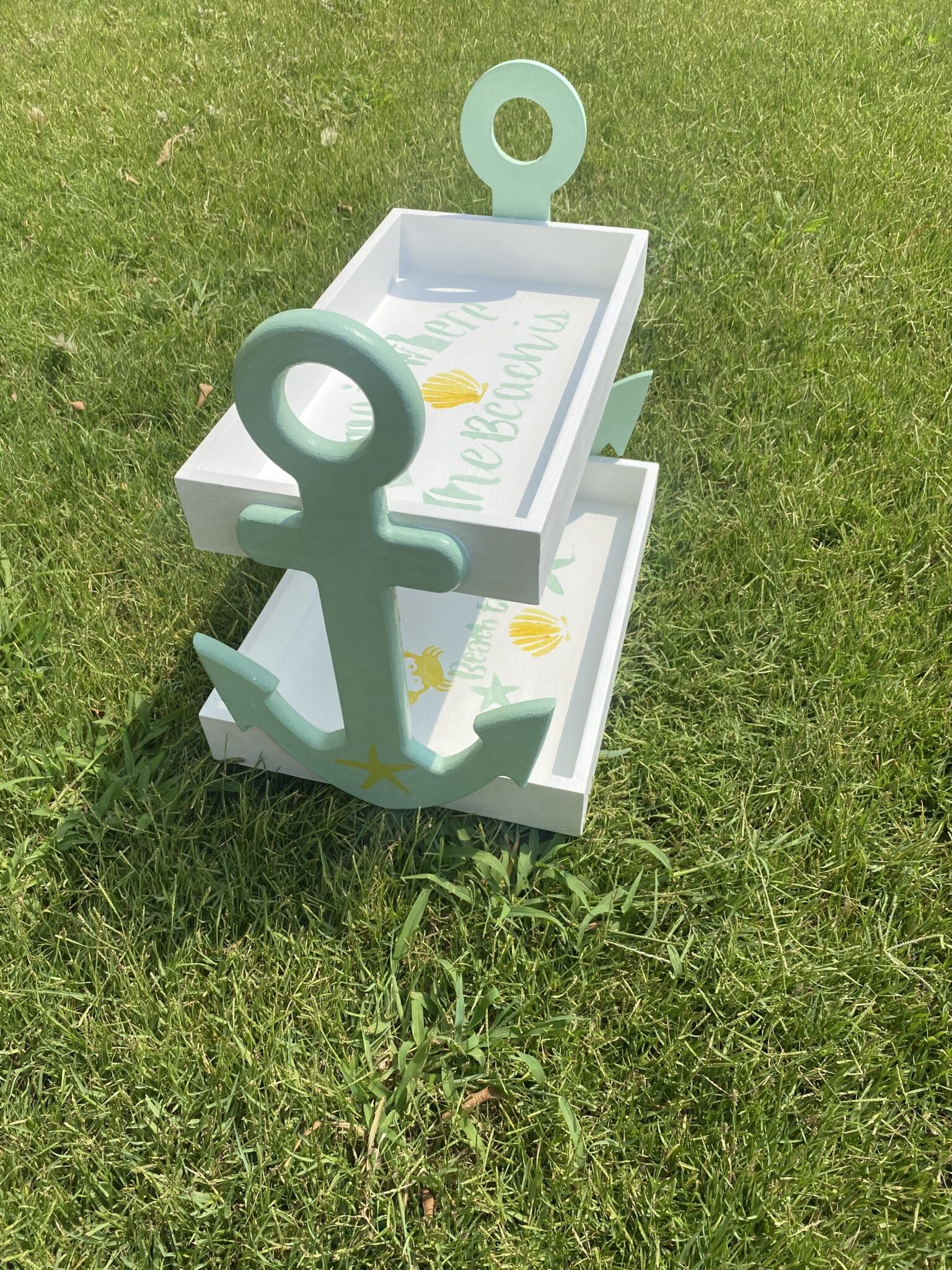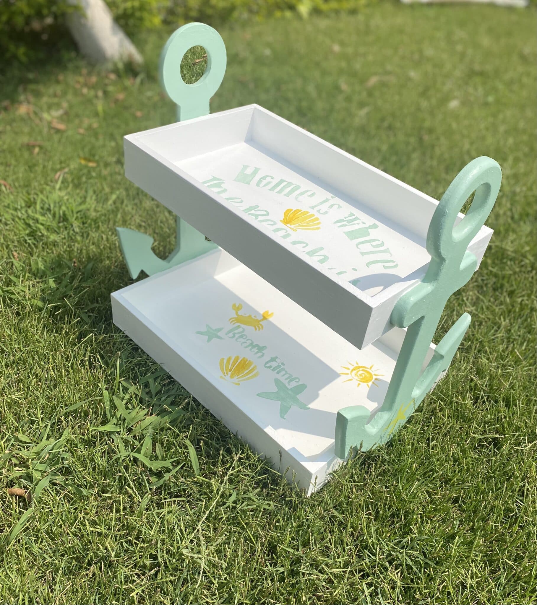 Wooden 2 tiers anchor tray in mint x white colors