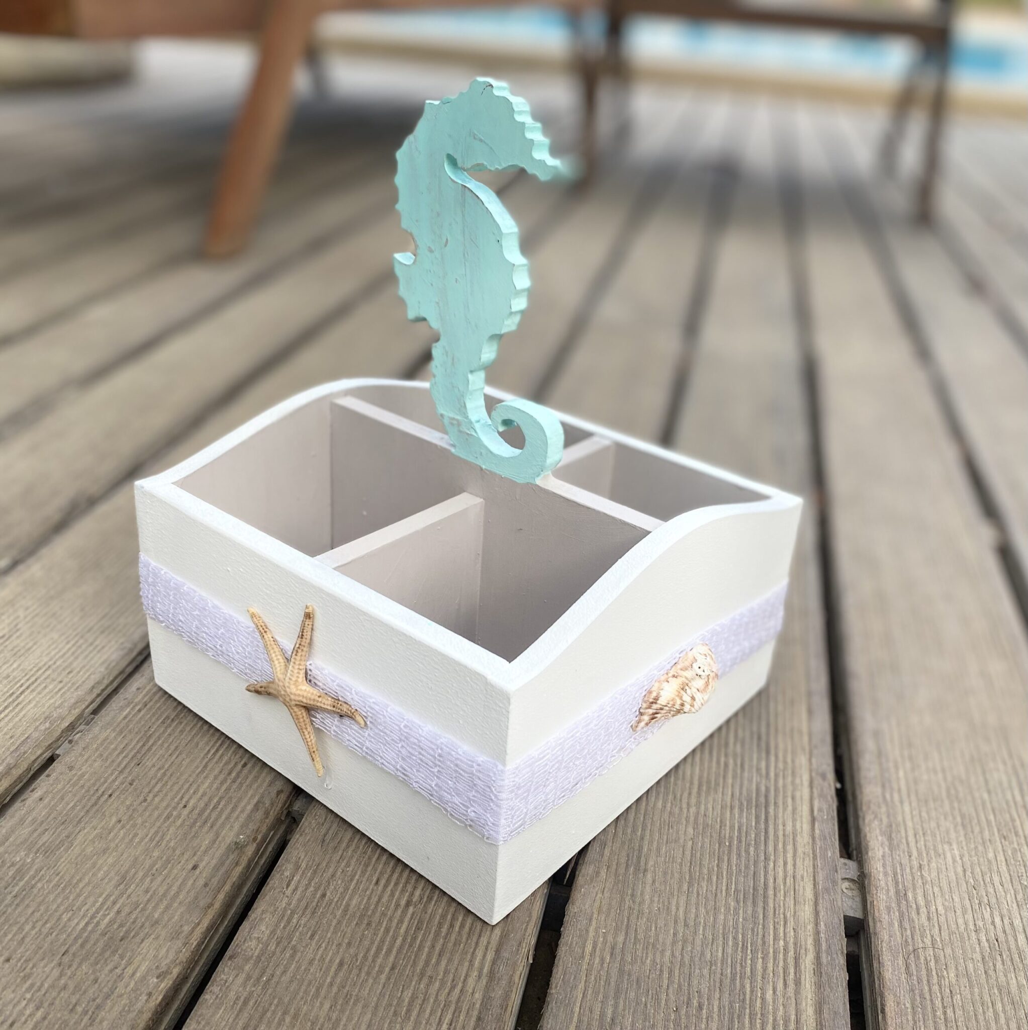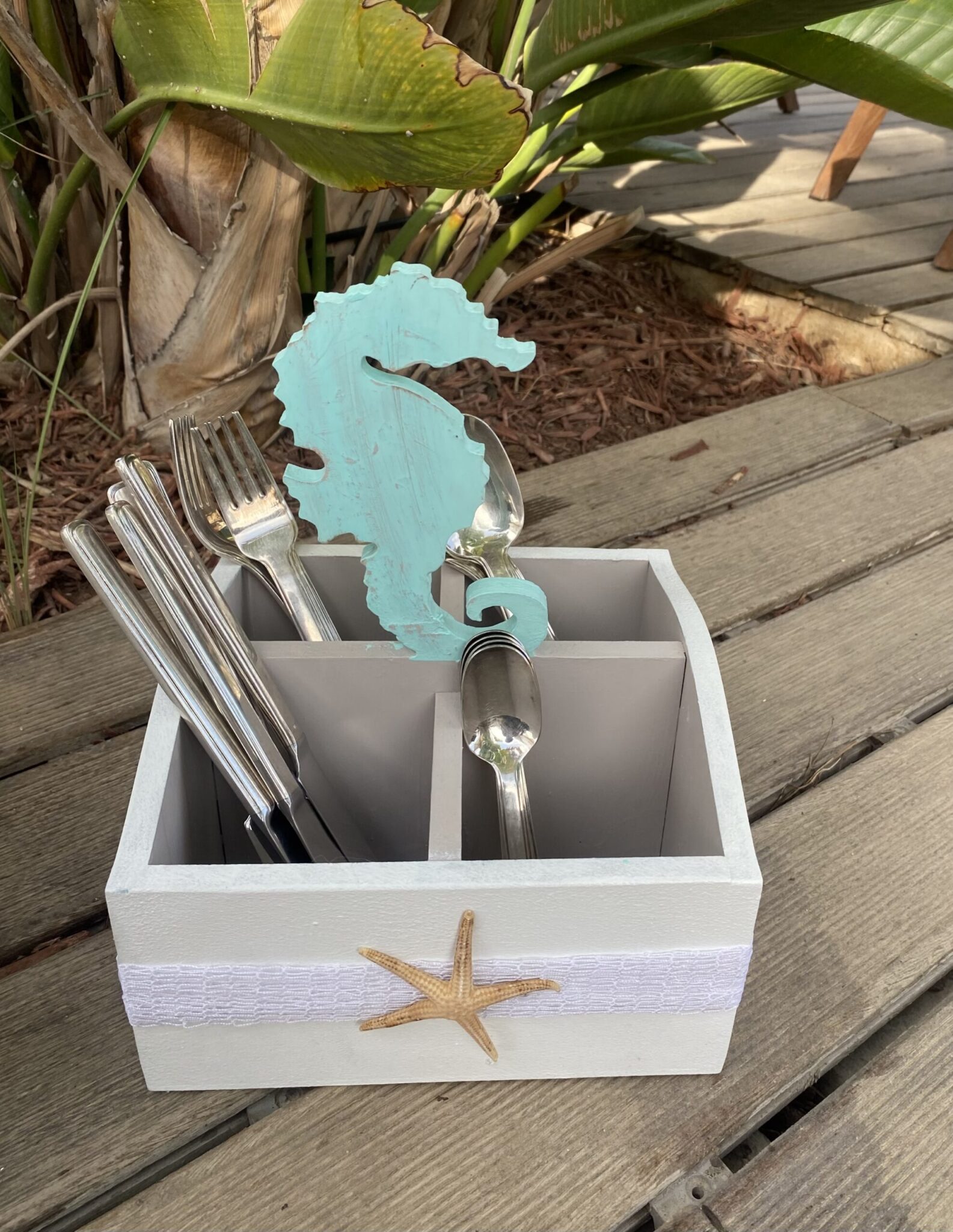 Wooden Summer Cutlery Organizer with Sea Horse Design