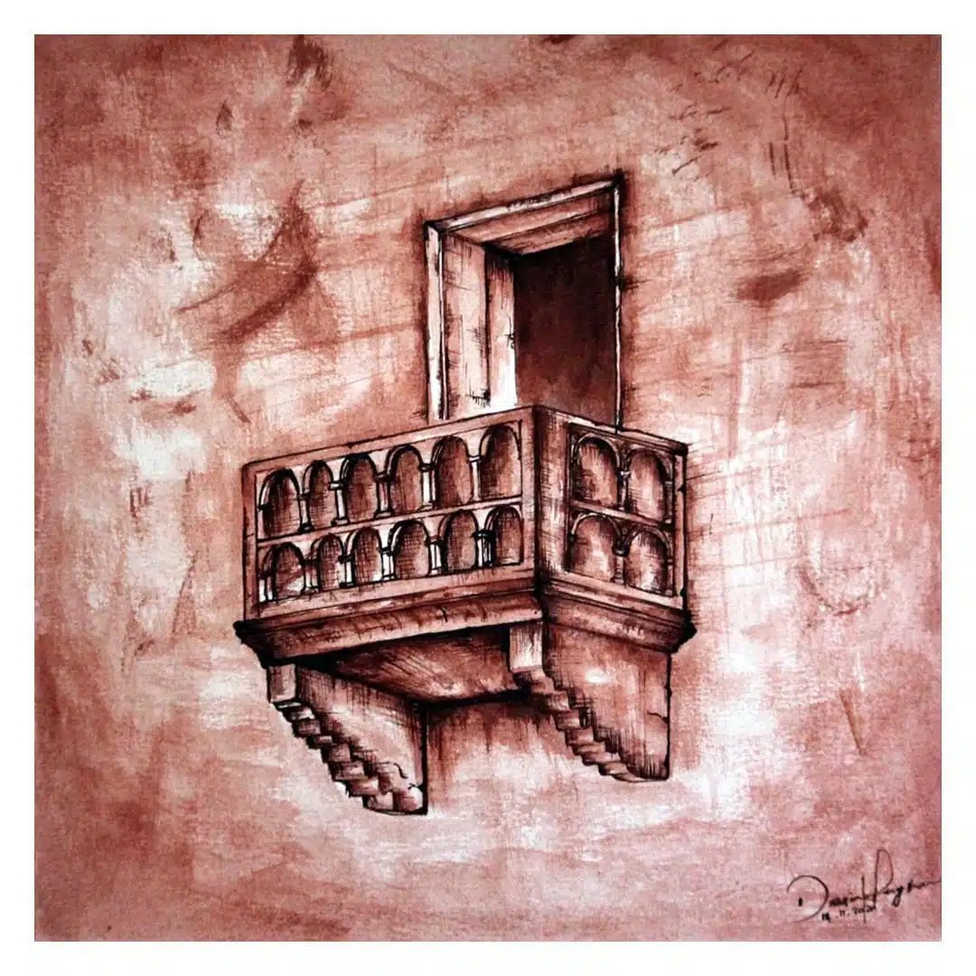 – Brown ink paintings.