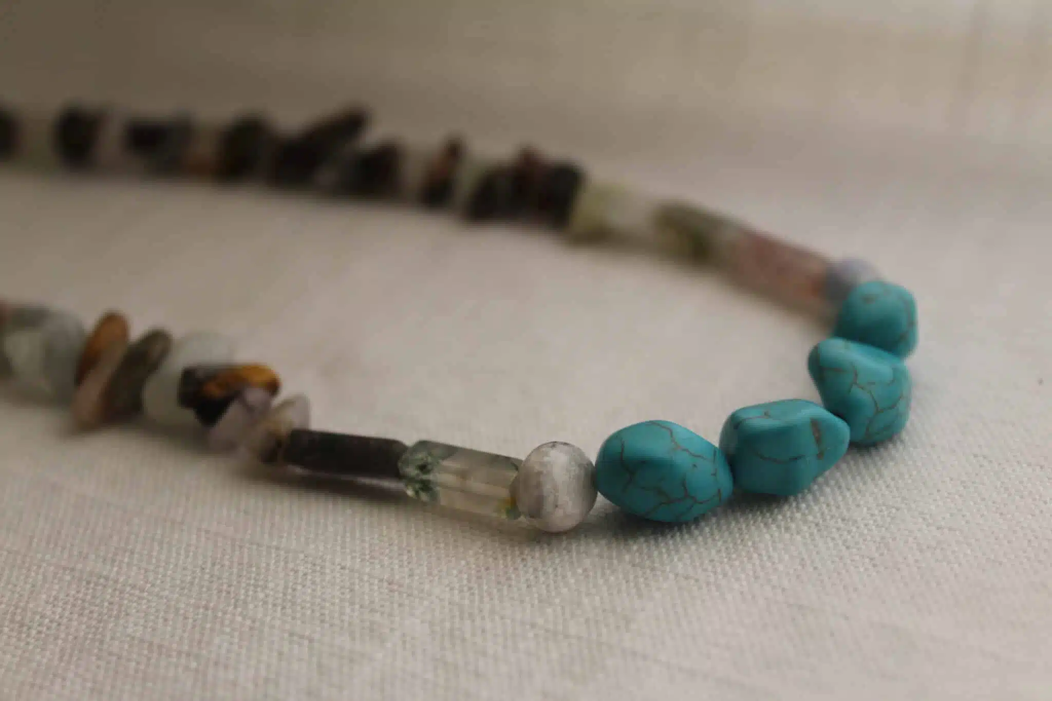 Mix of Turquoise stones and mixed colors smaller stones with different shades and shapes