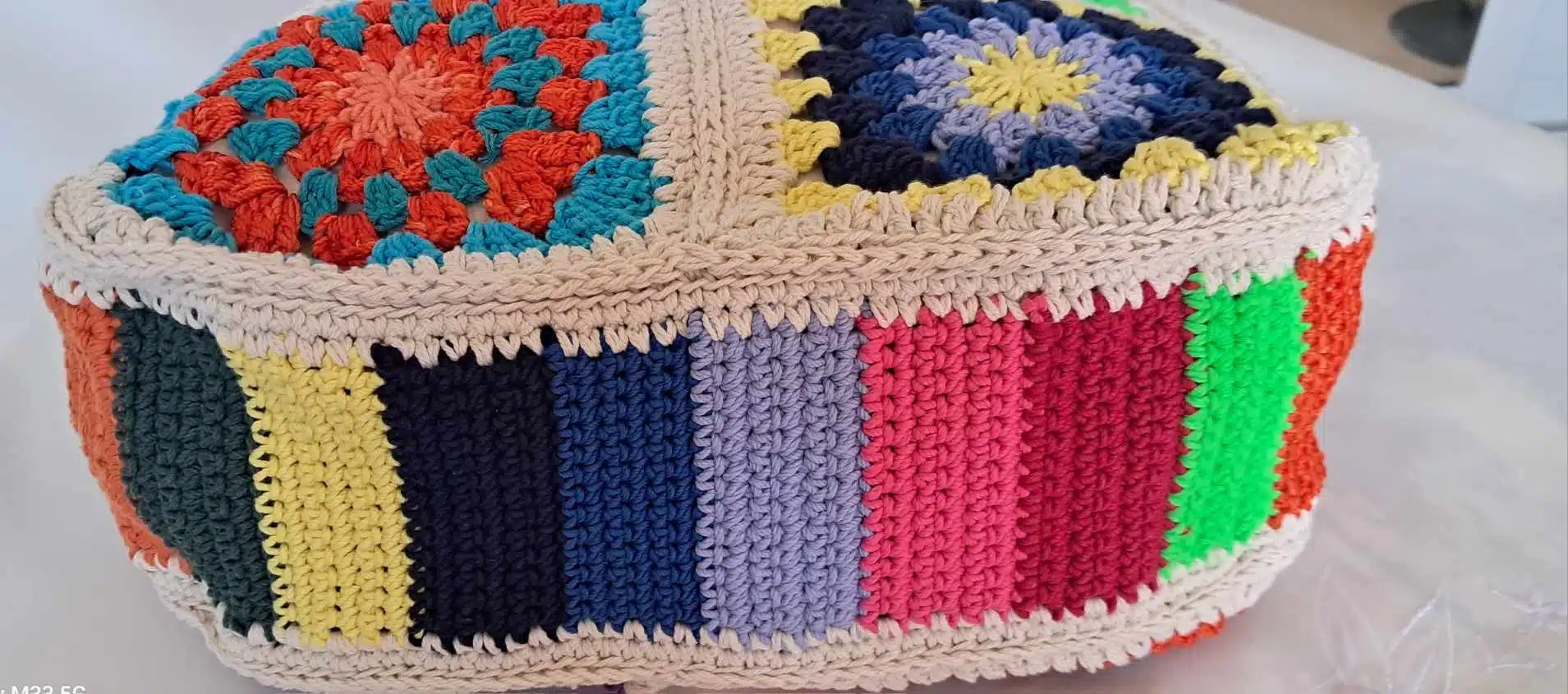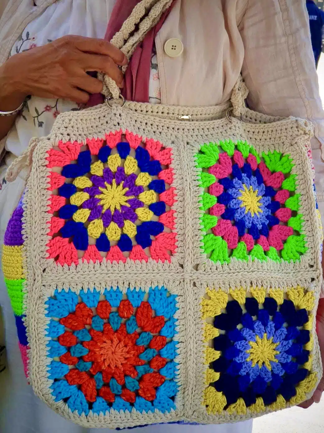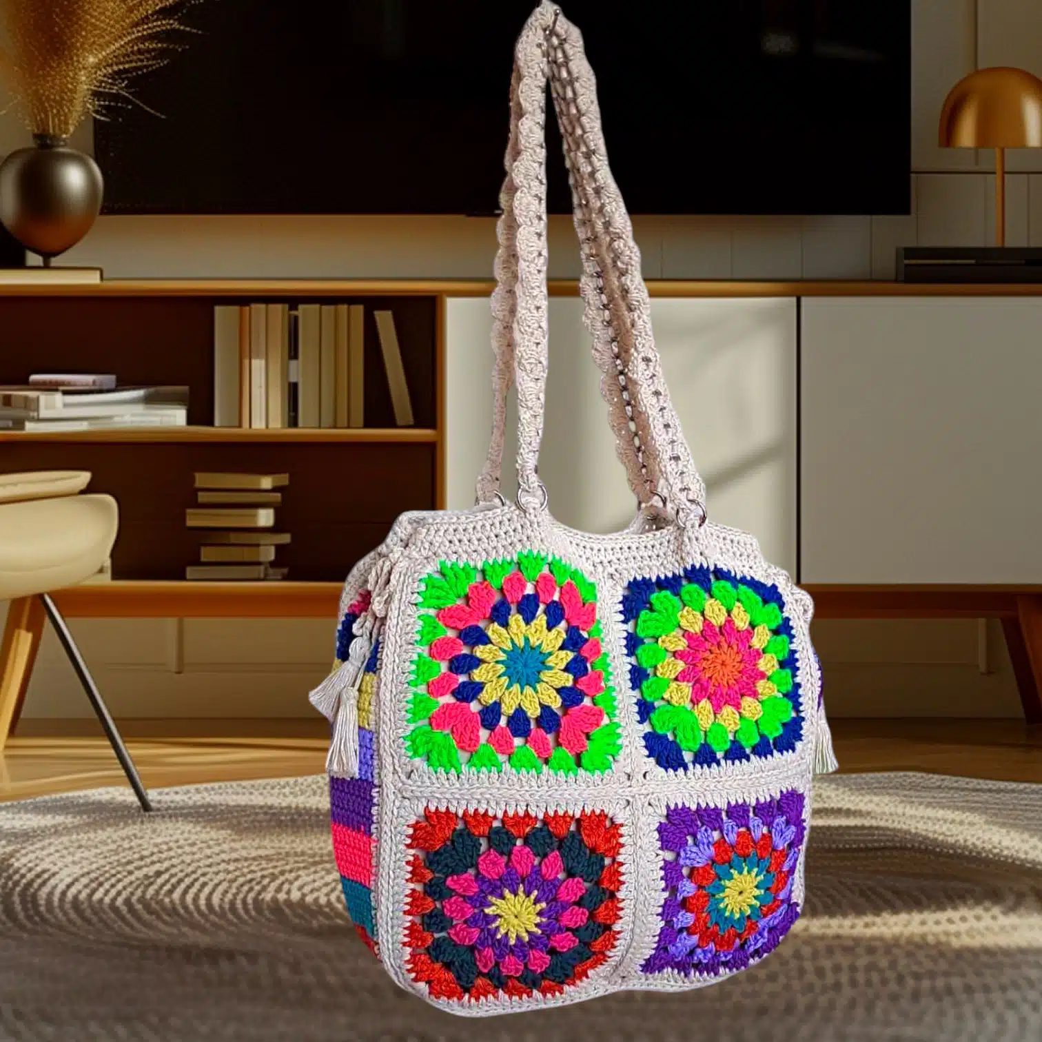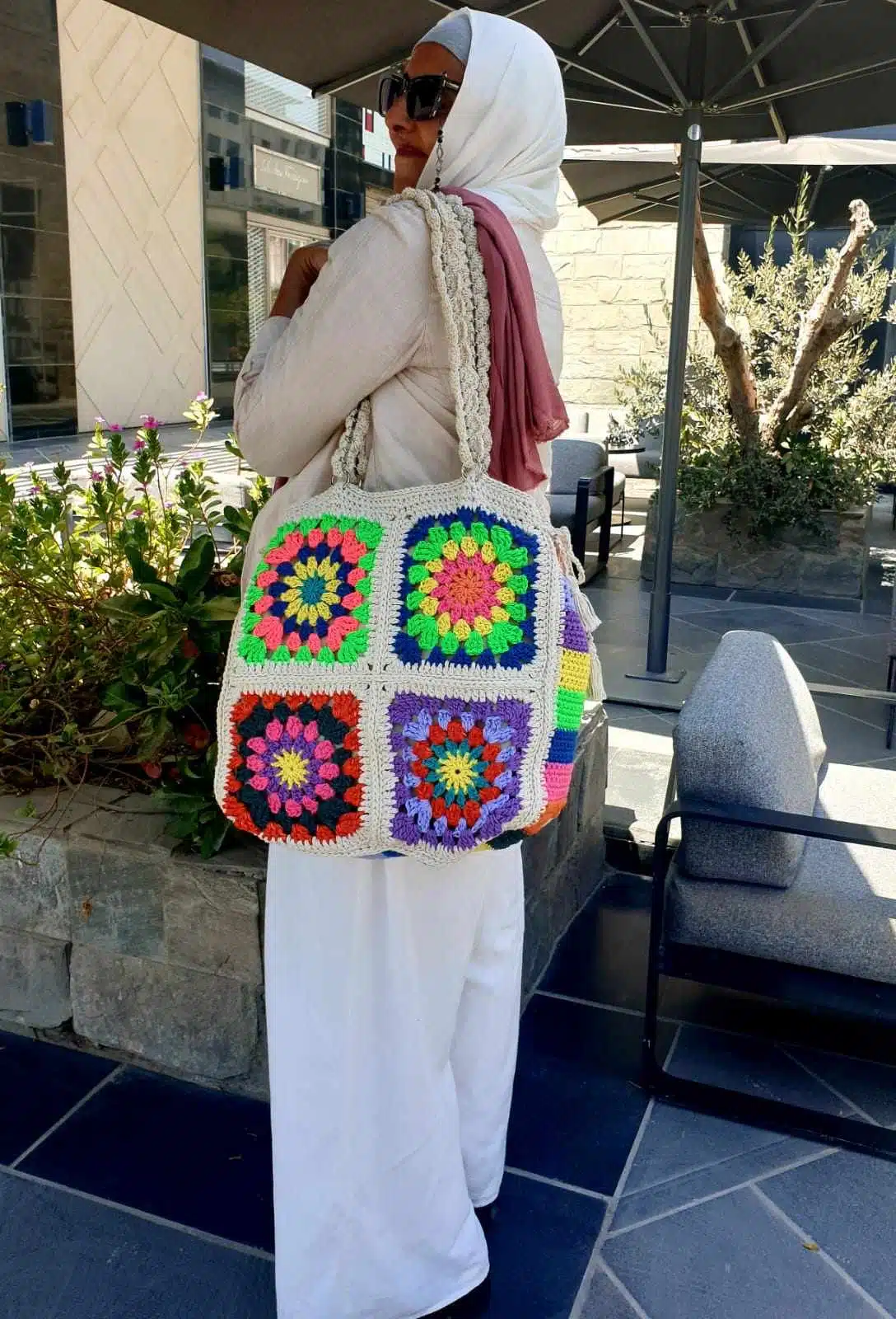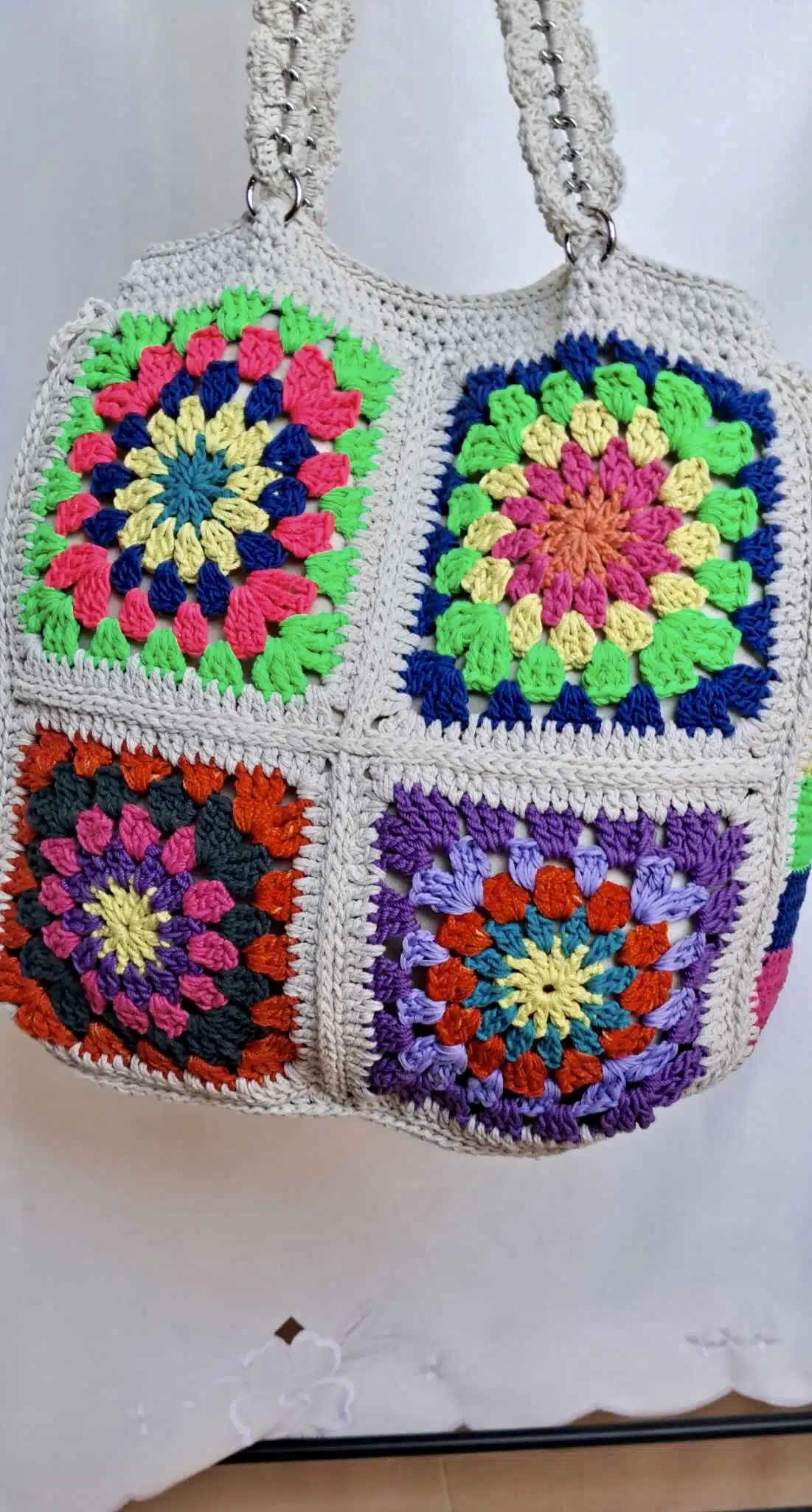 Bright colors tote crochet bag. The bag is made of highest quality of cotton yarn.