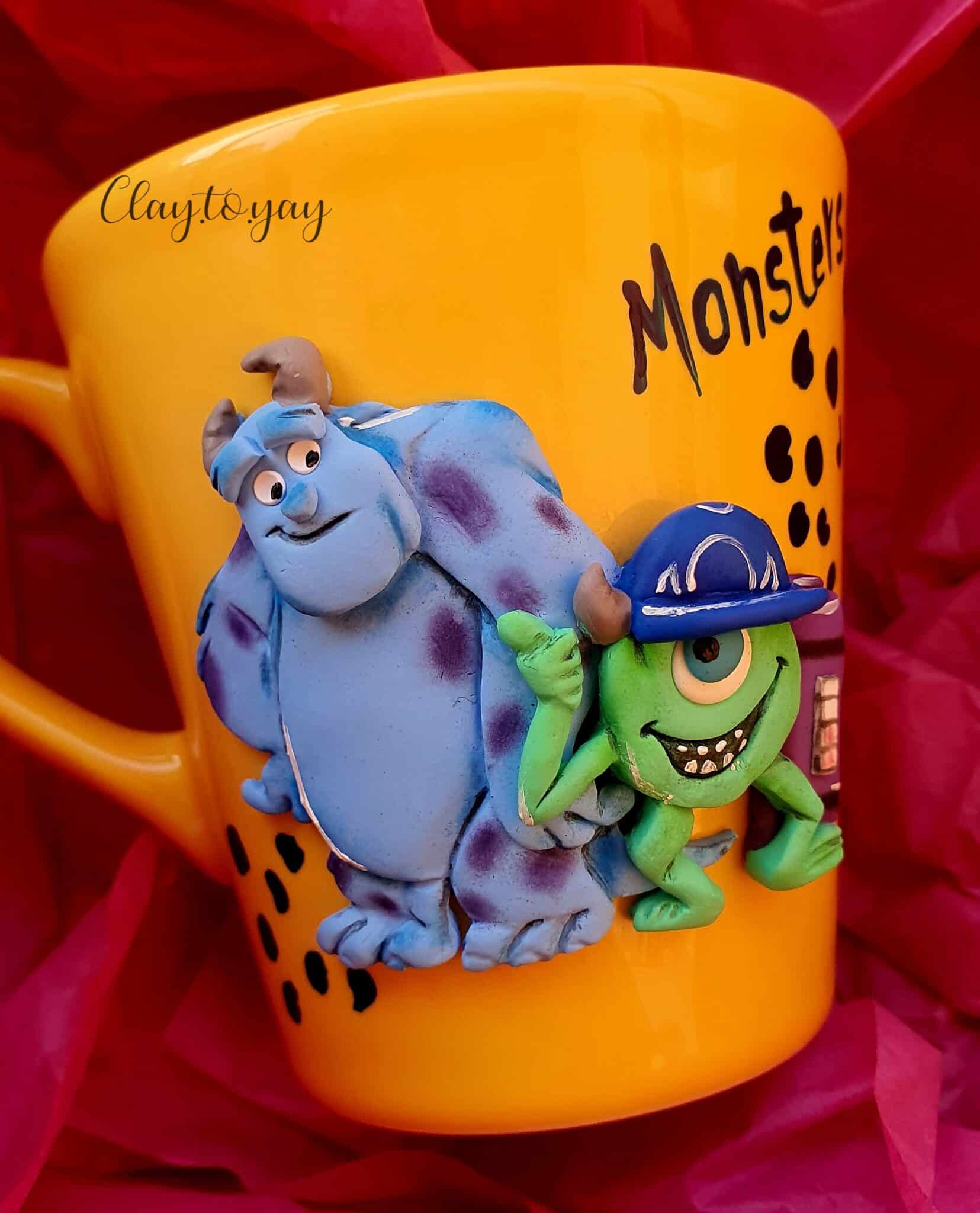 Porcelain mug with a design made of polymerclay