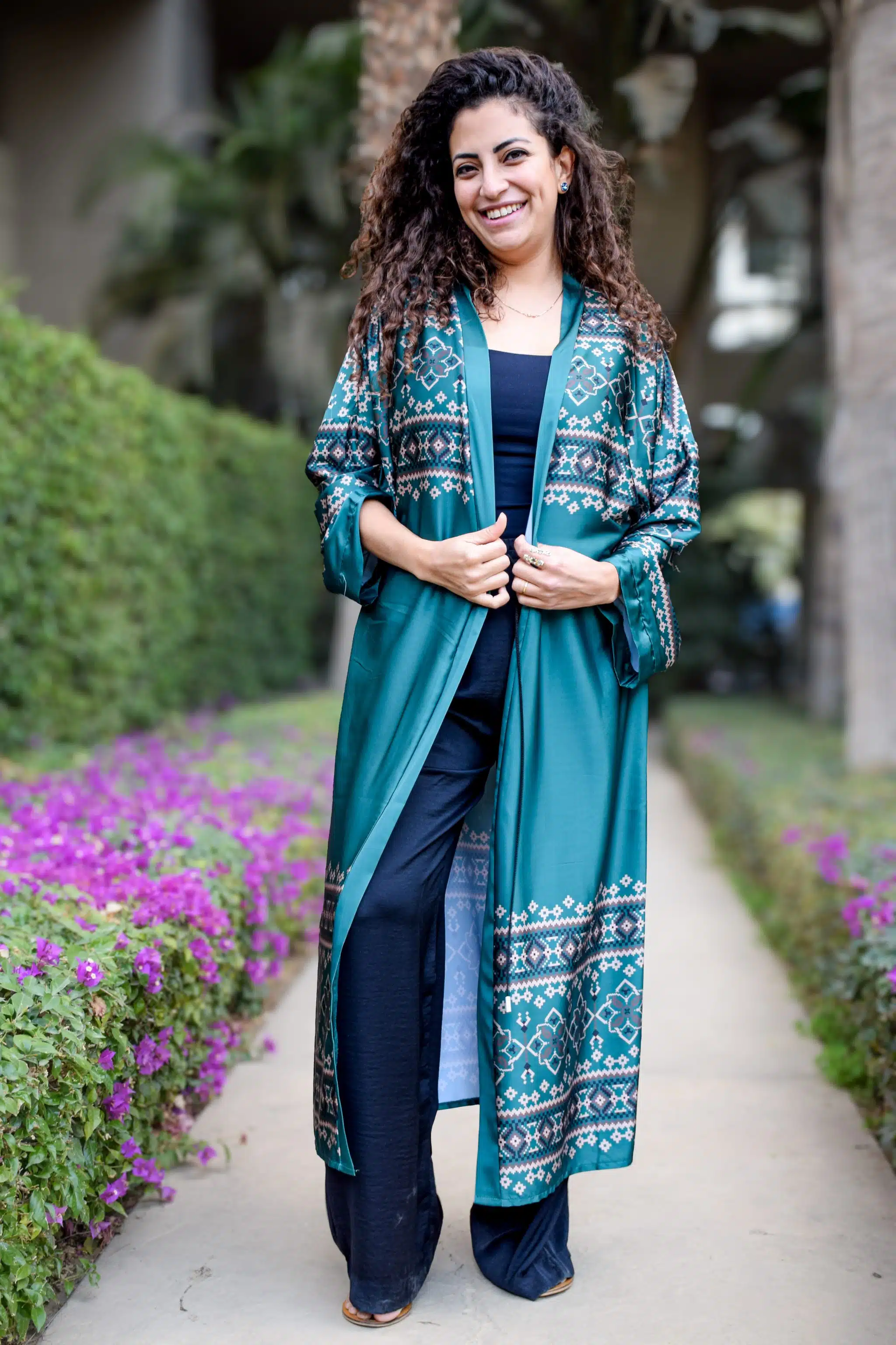 Our unique mosaic muse kimono made of Satin silk fabric.