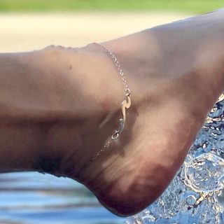 Anklet with multi bluish goldish stones and seashell in flower shape