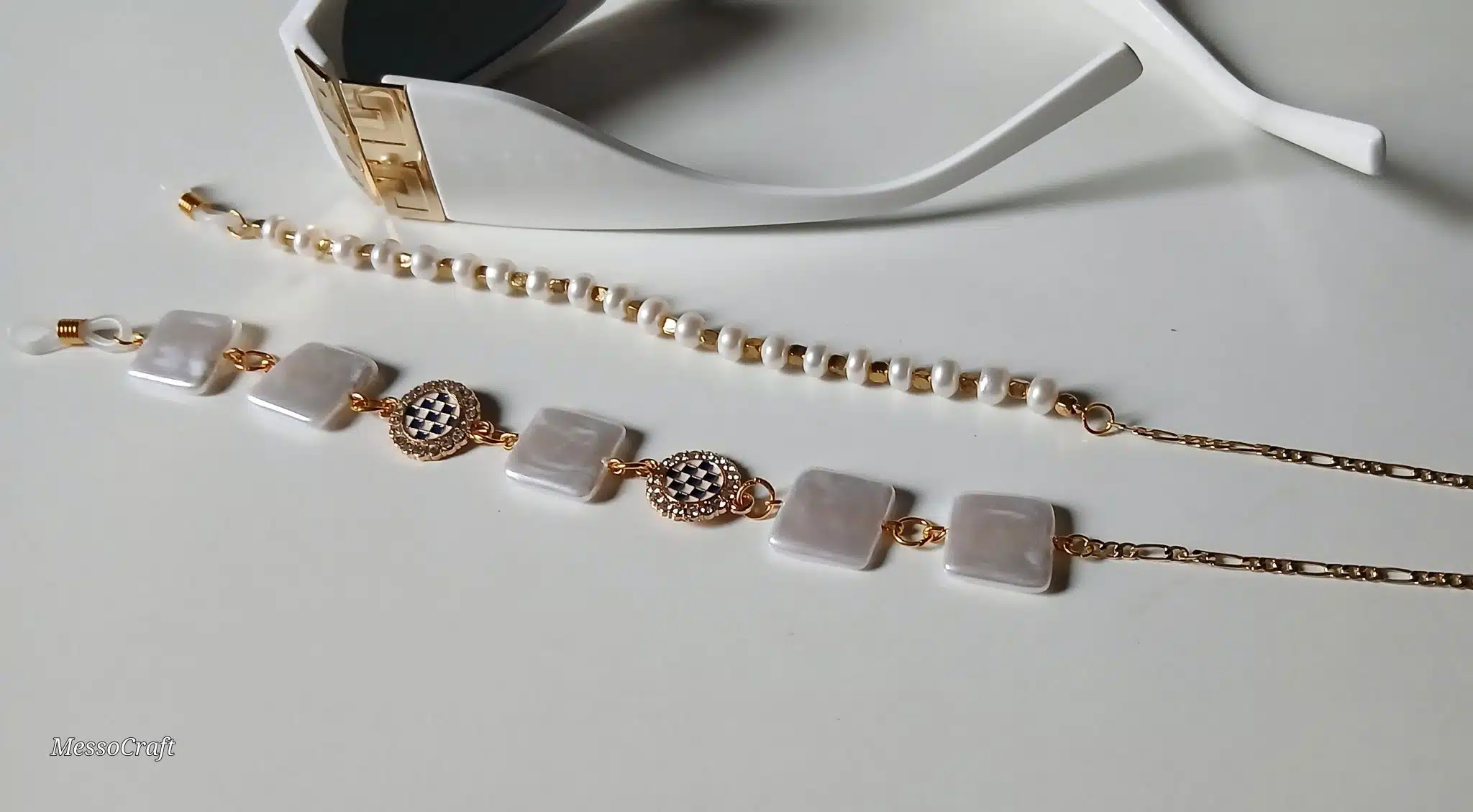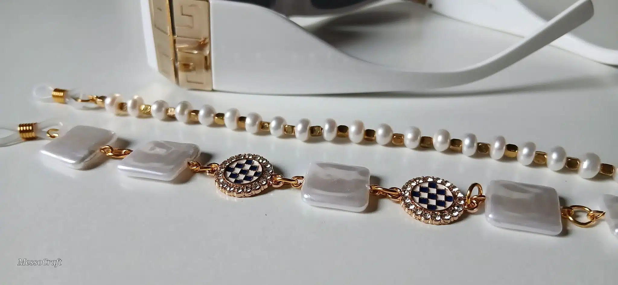 Glasses chain with pearls stones in different shapes with unique plated pendants and Chinese gold chain