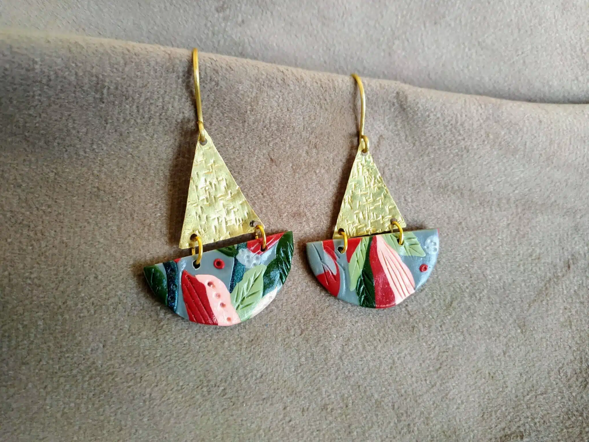 beautiful lightweight handmade multicolored earrings.made with polymer clay and brass