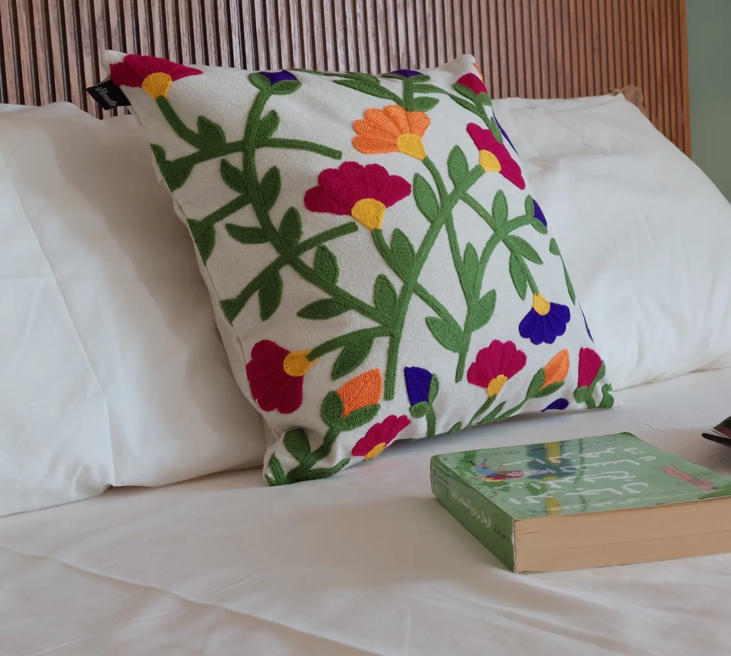 Machine embroidery cushion cover.
