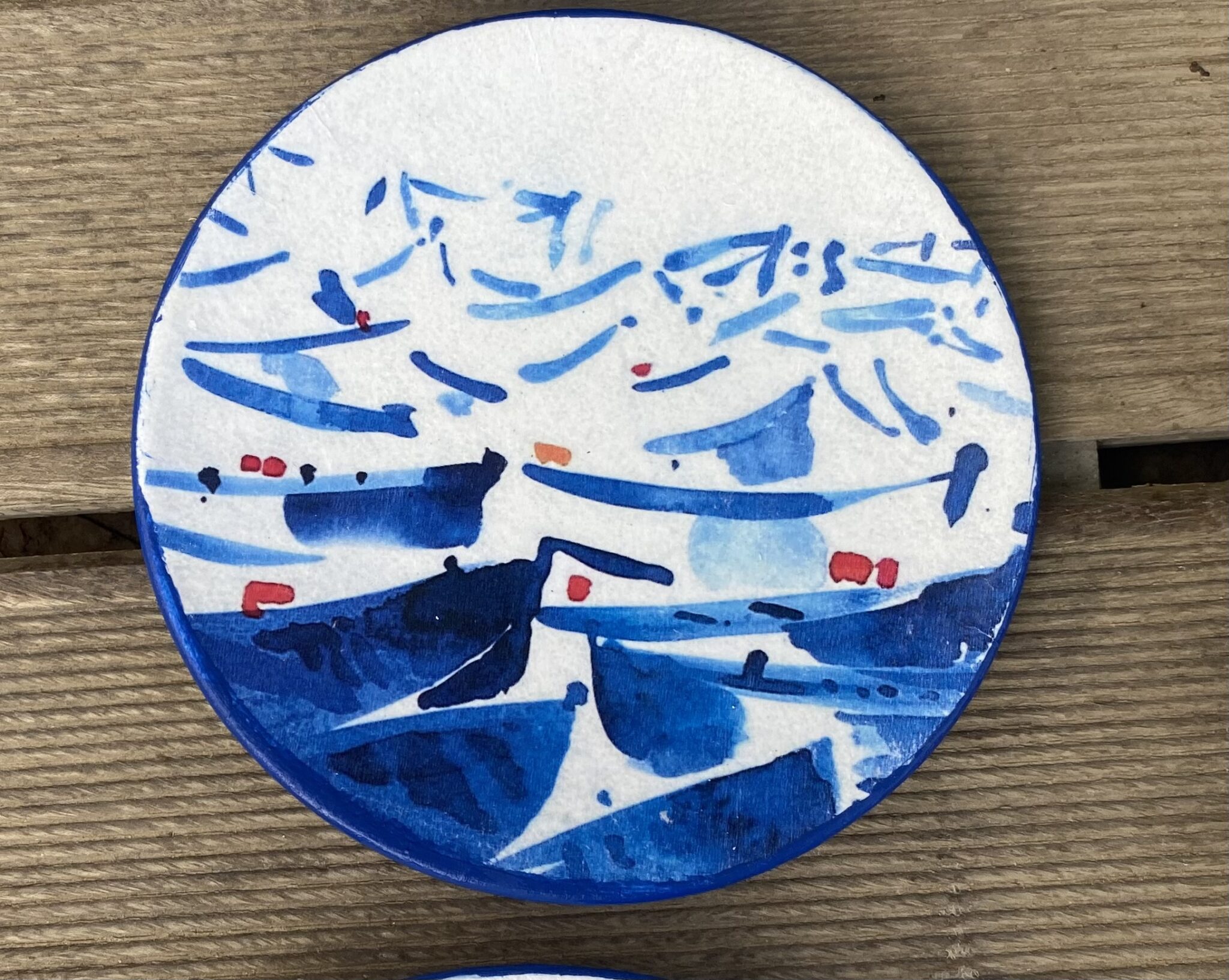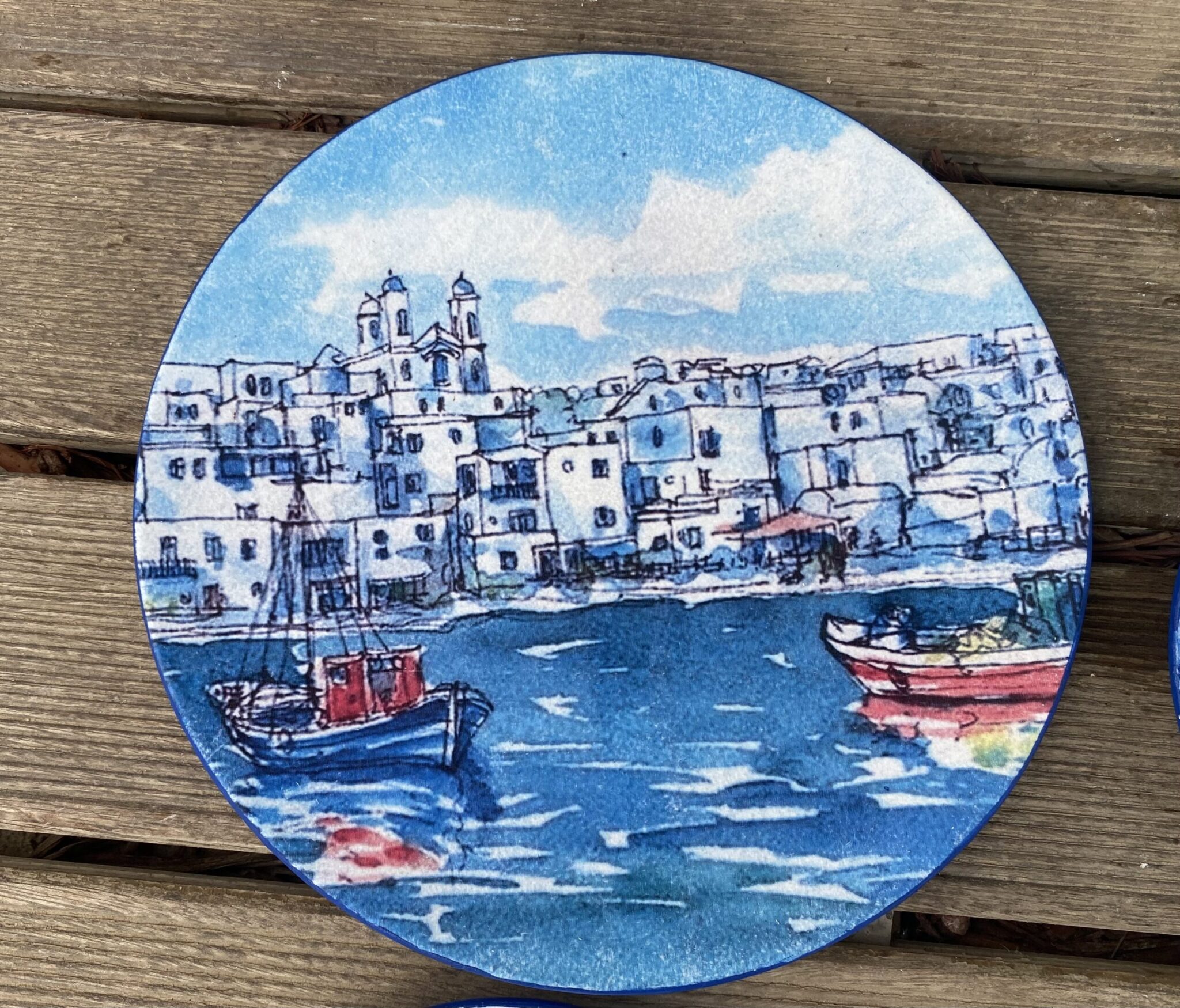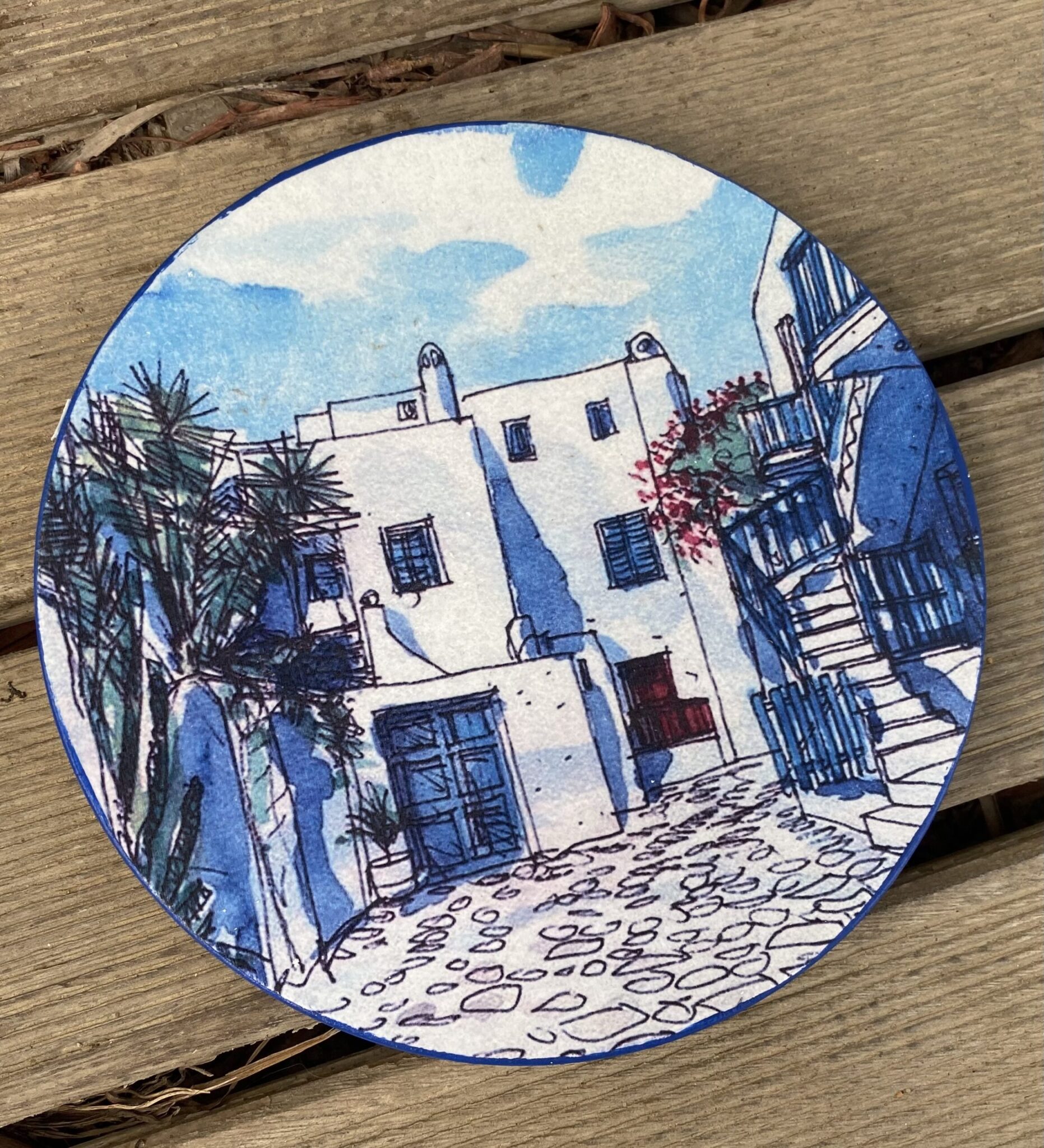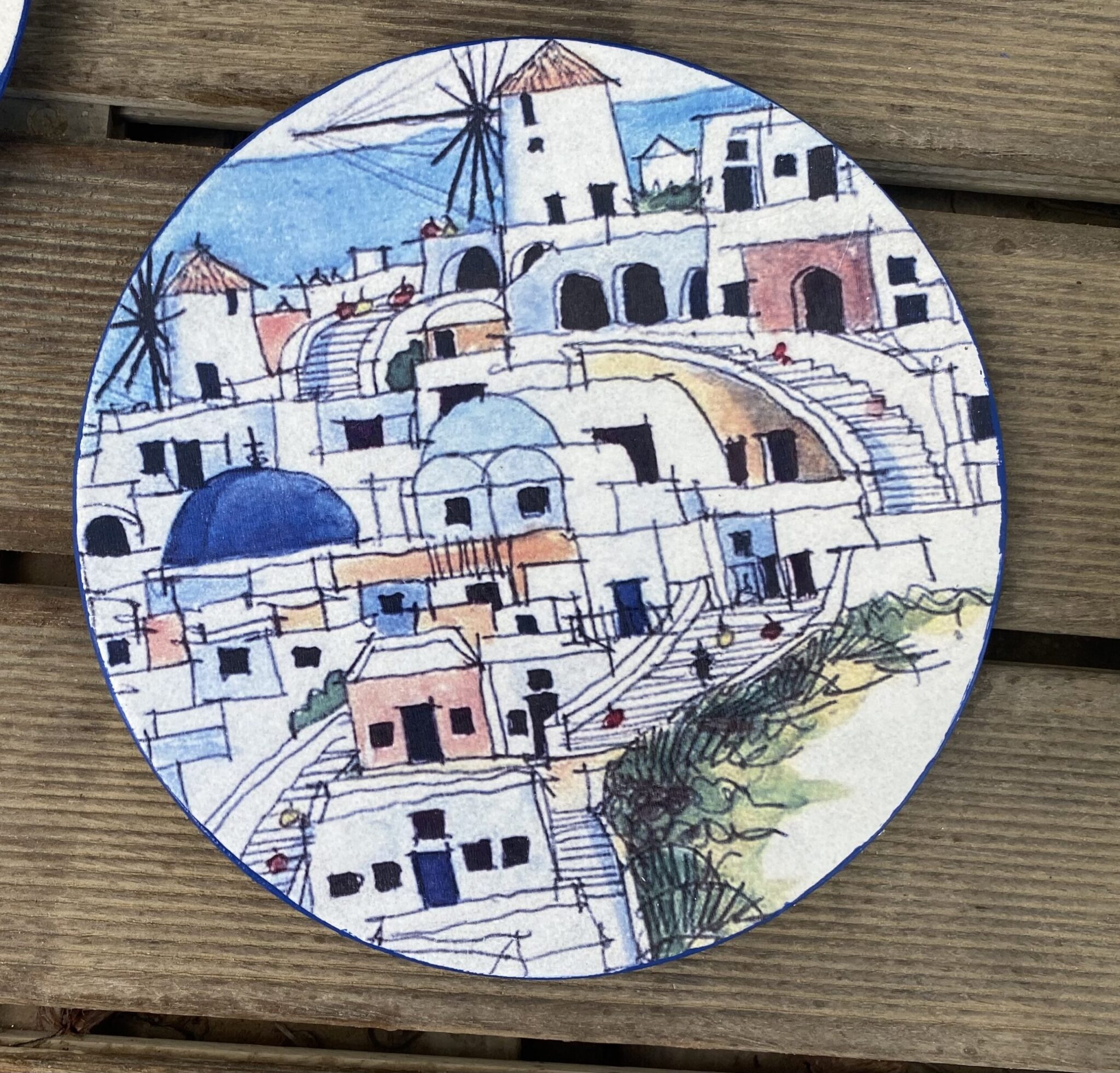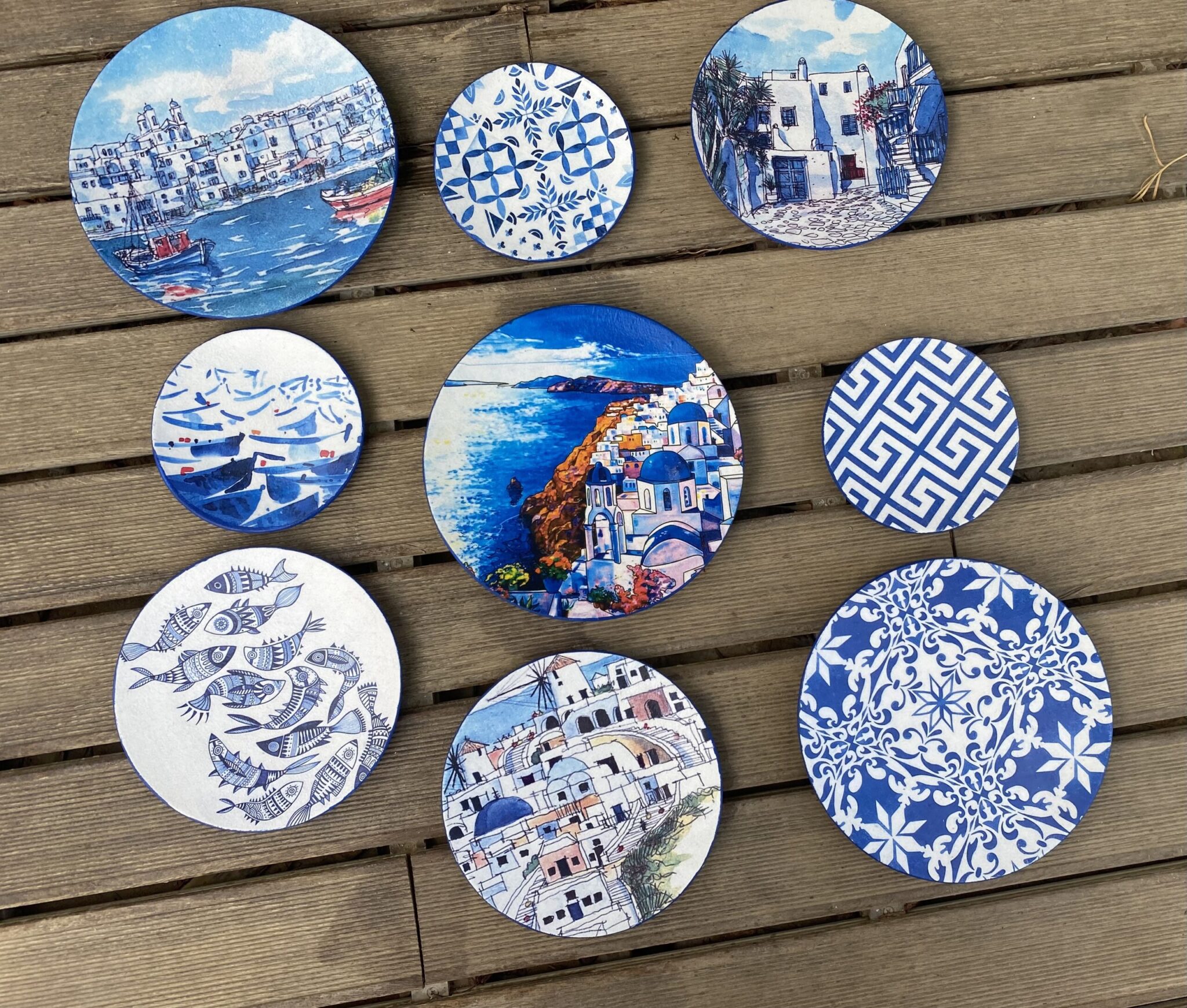 Decoupaged porcelain wall plates theme “Mykonos”