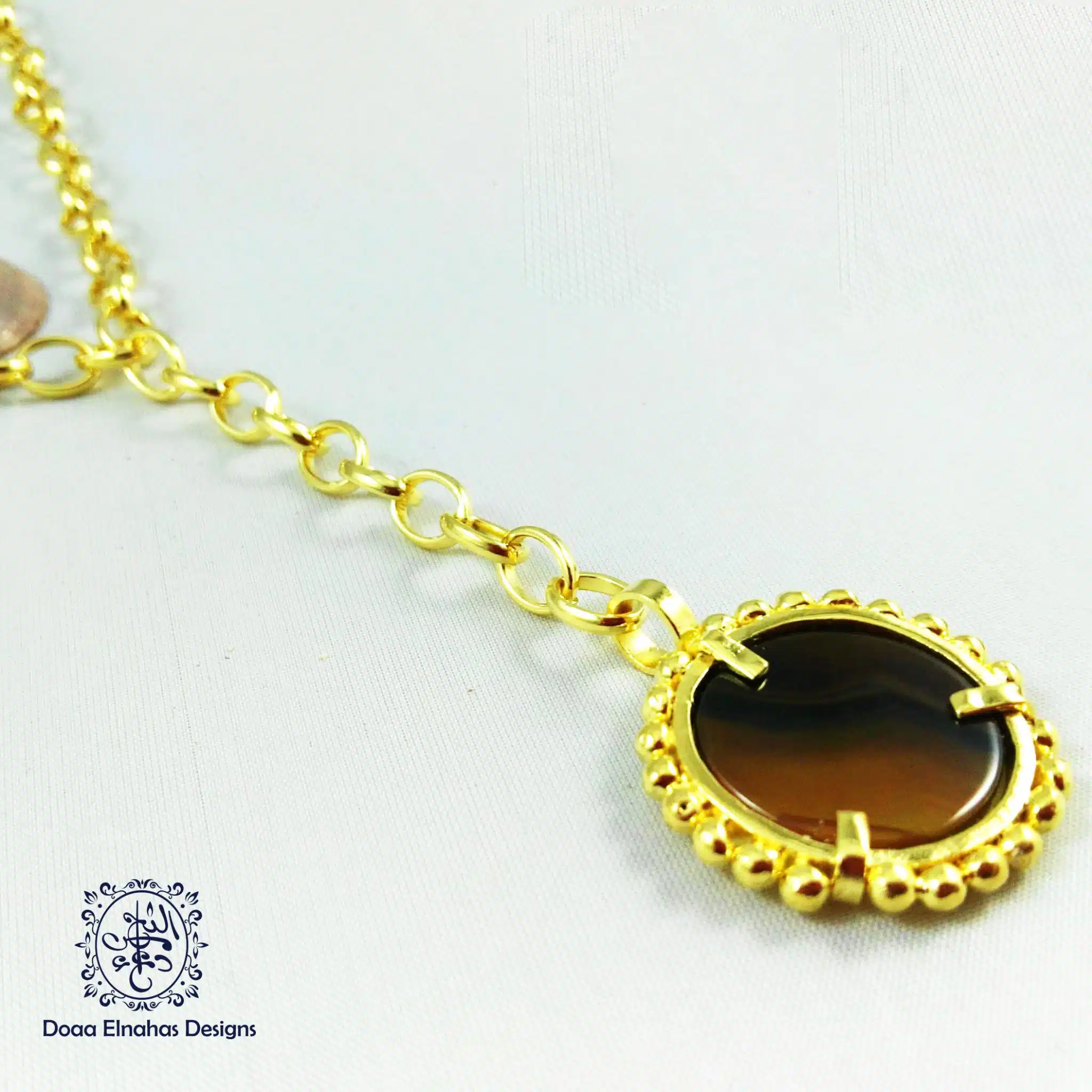 Gold-plated brass necklace with agate stone
