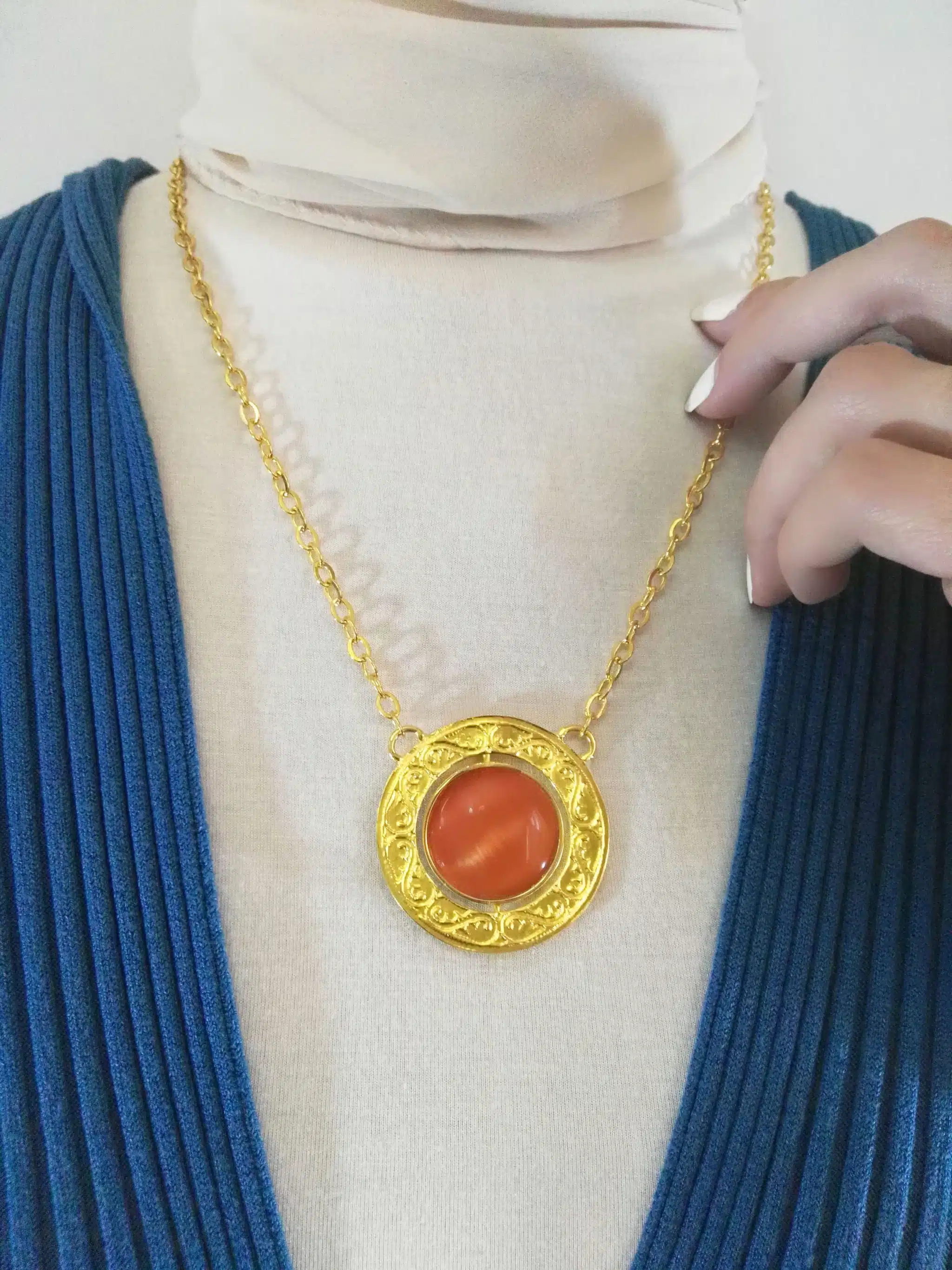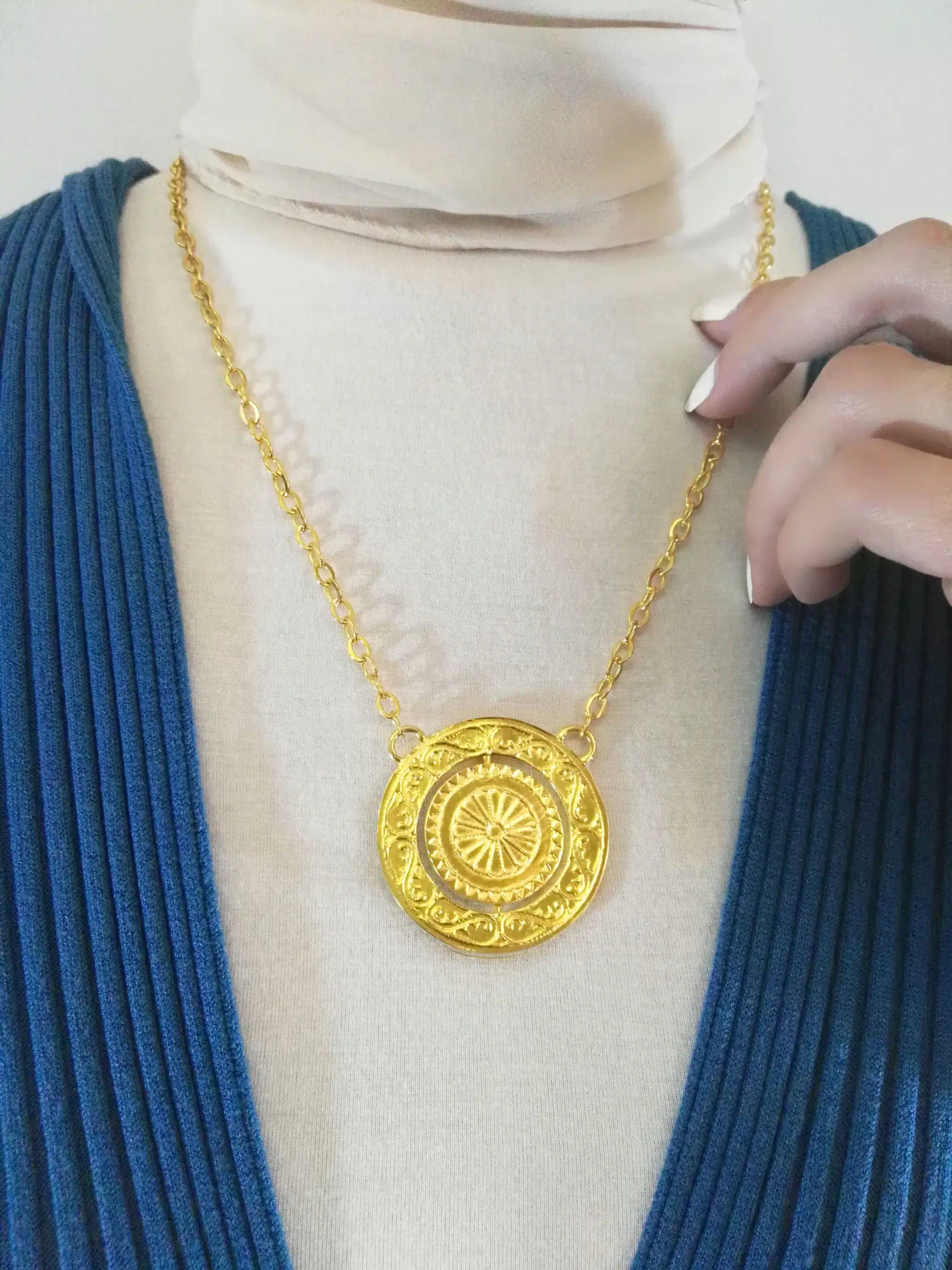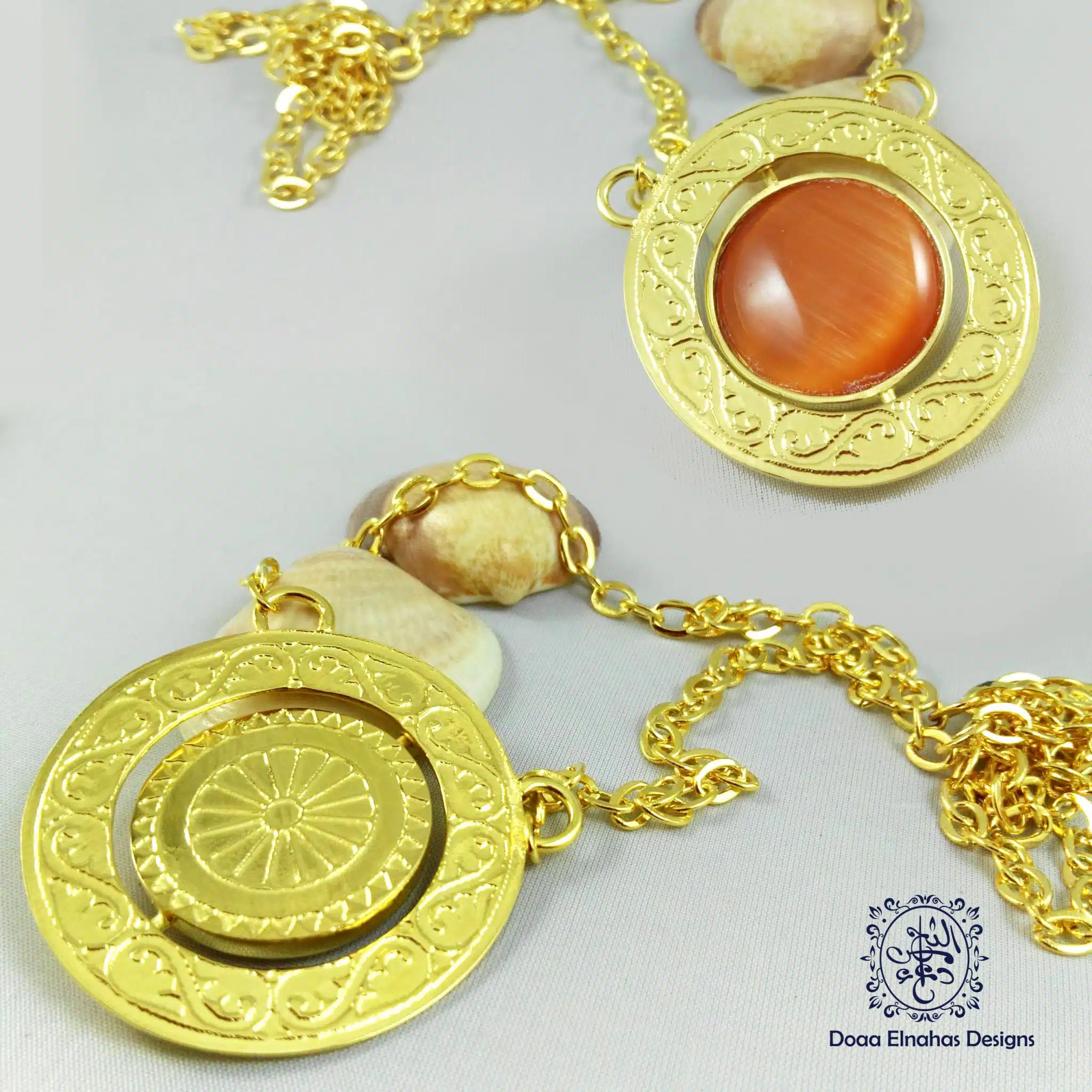 two sides pendant one side with stone while the other side has Islamic ornaments