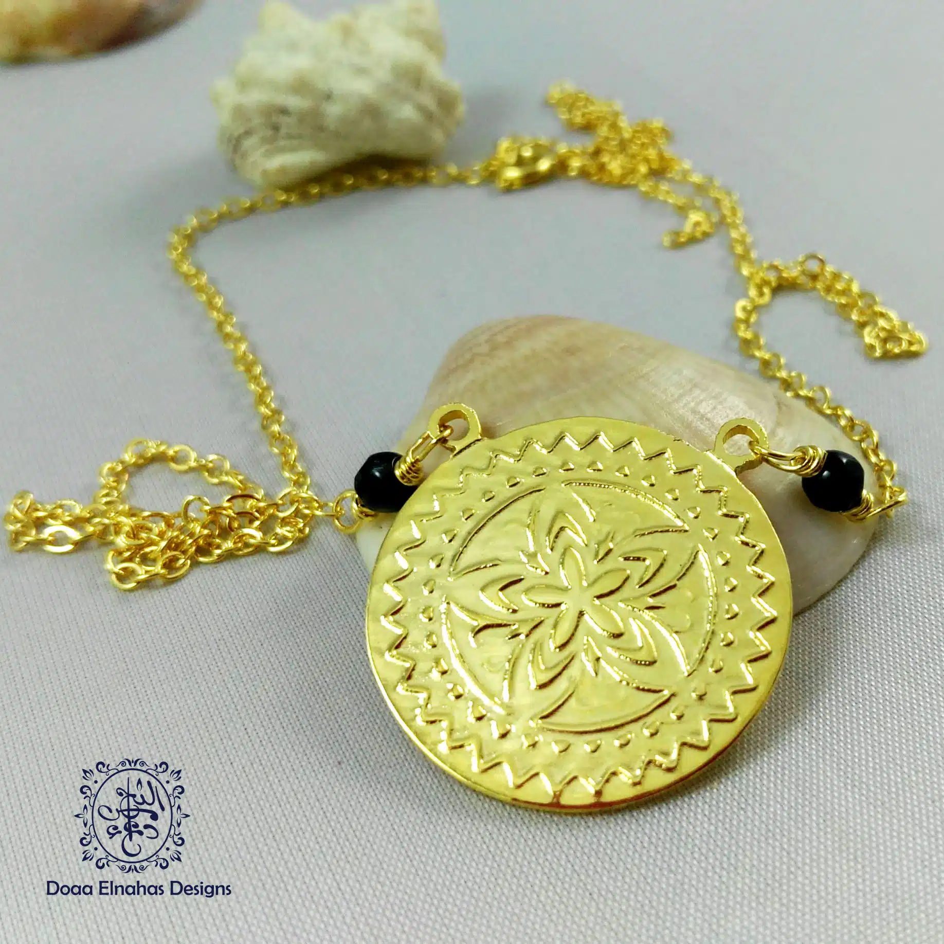 G0ld-plated brass with Islamic ornaments and agate stones