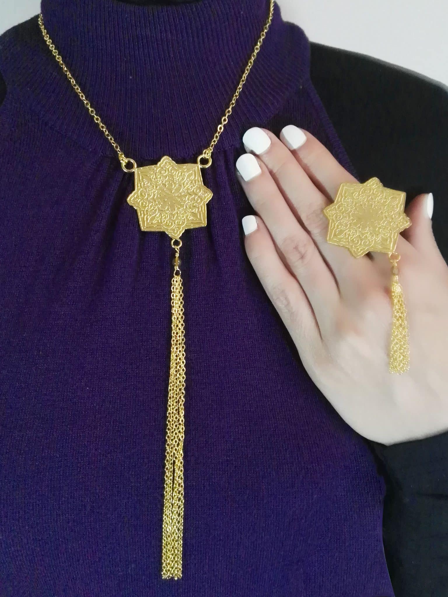 gold-plated pendant engraved with Islamic ornaments in an adjustable chain