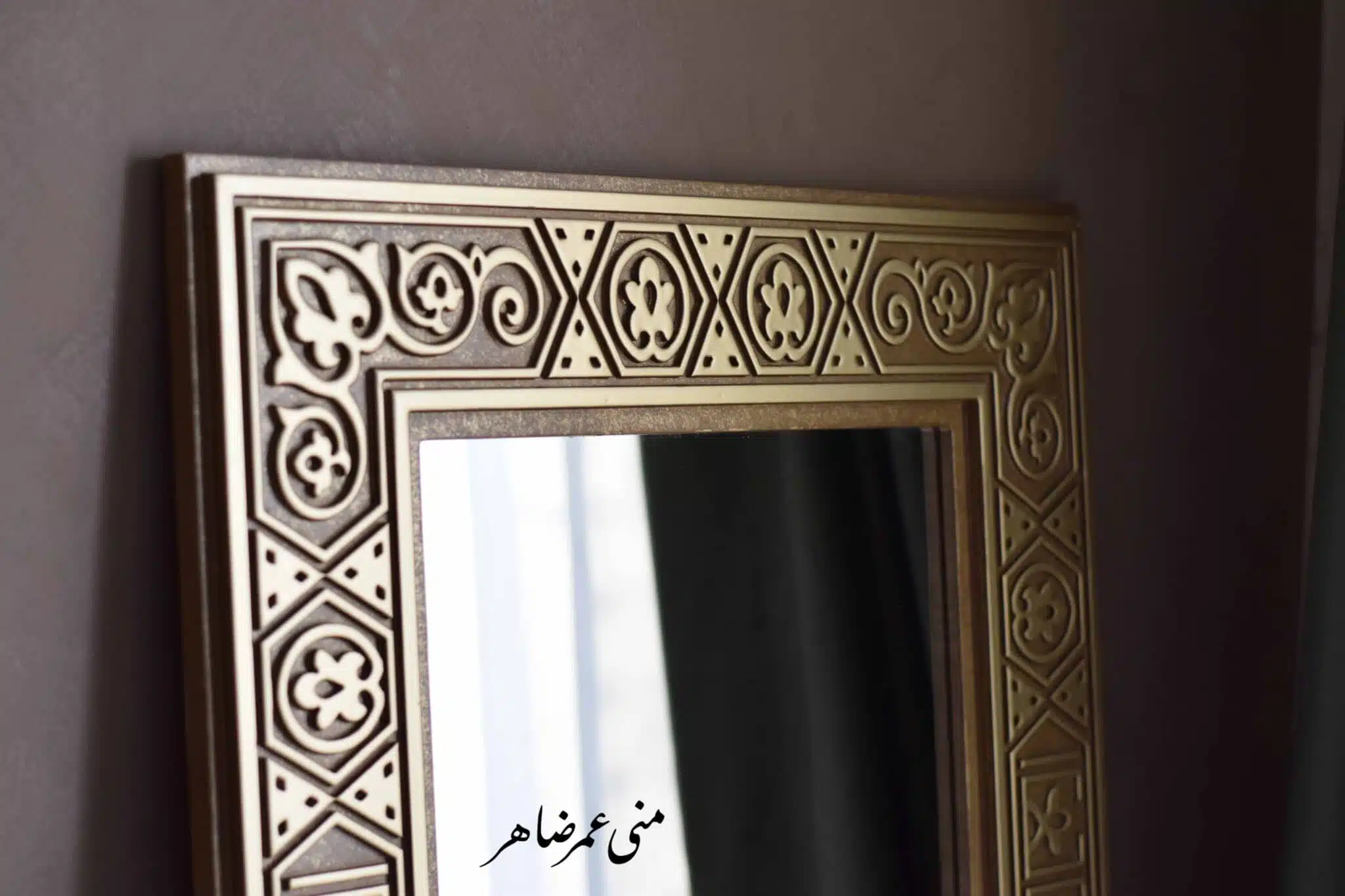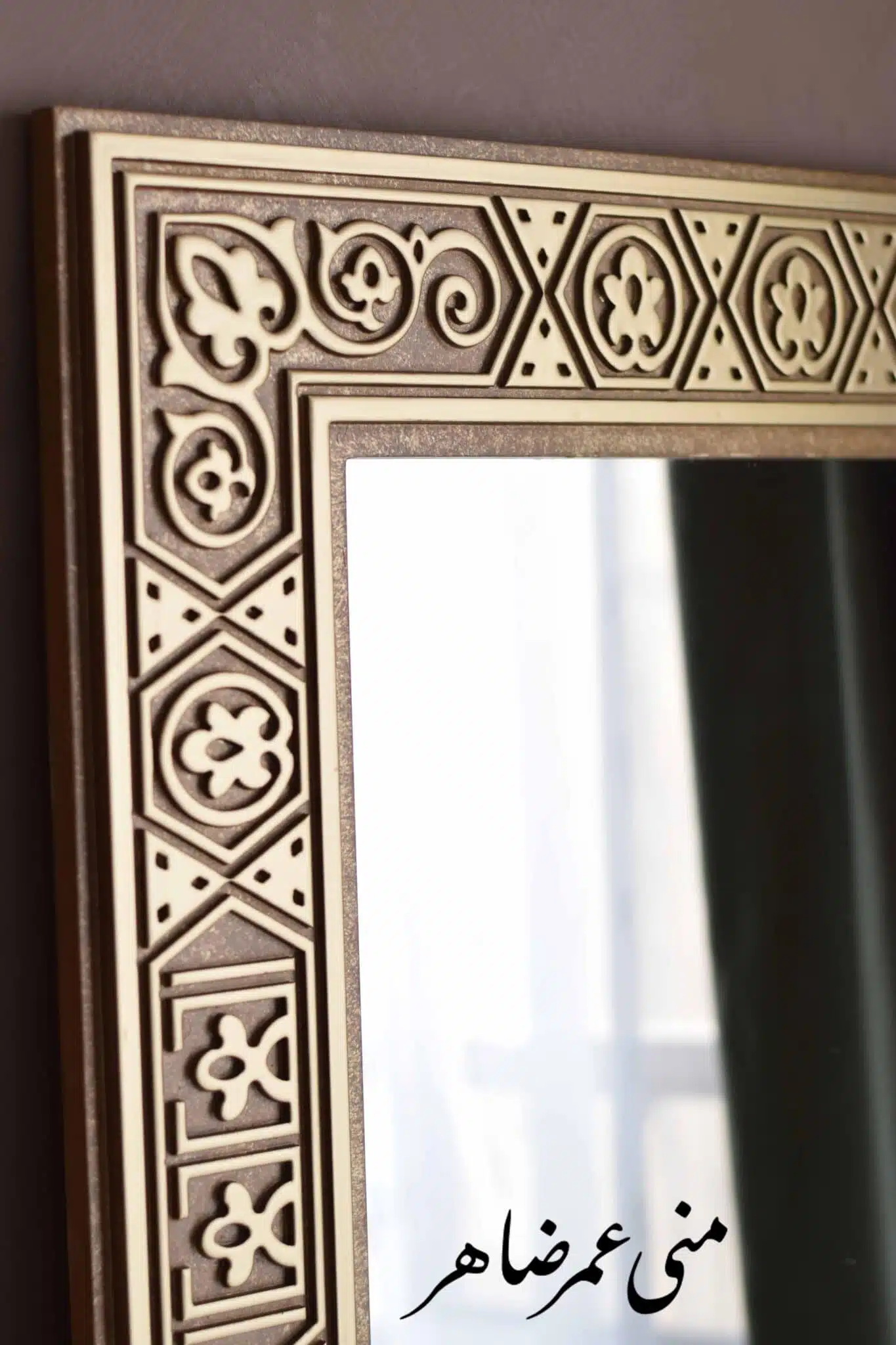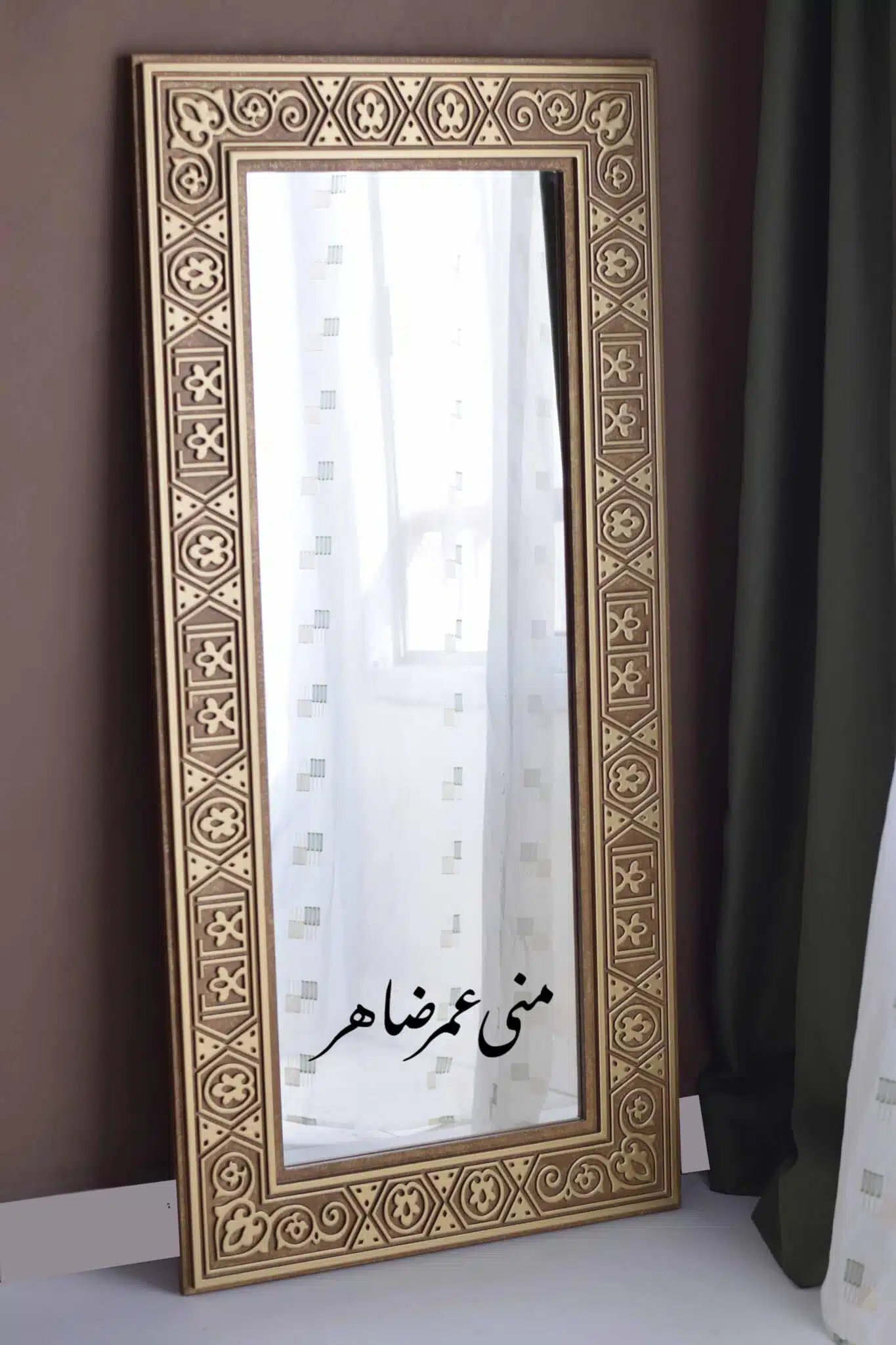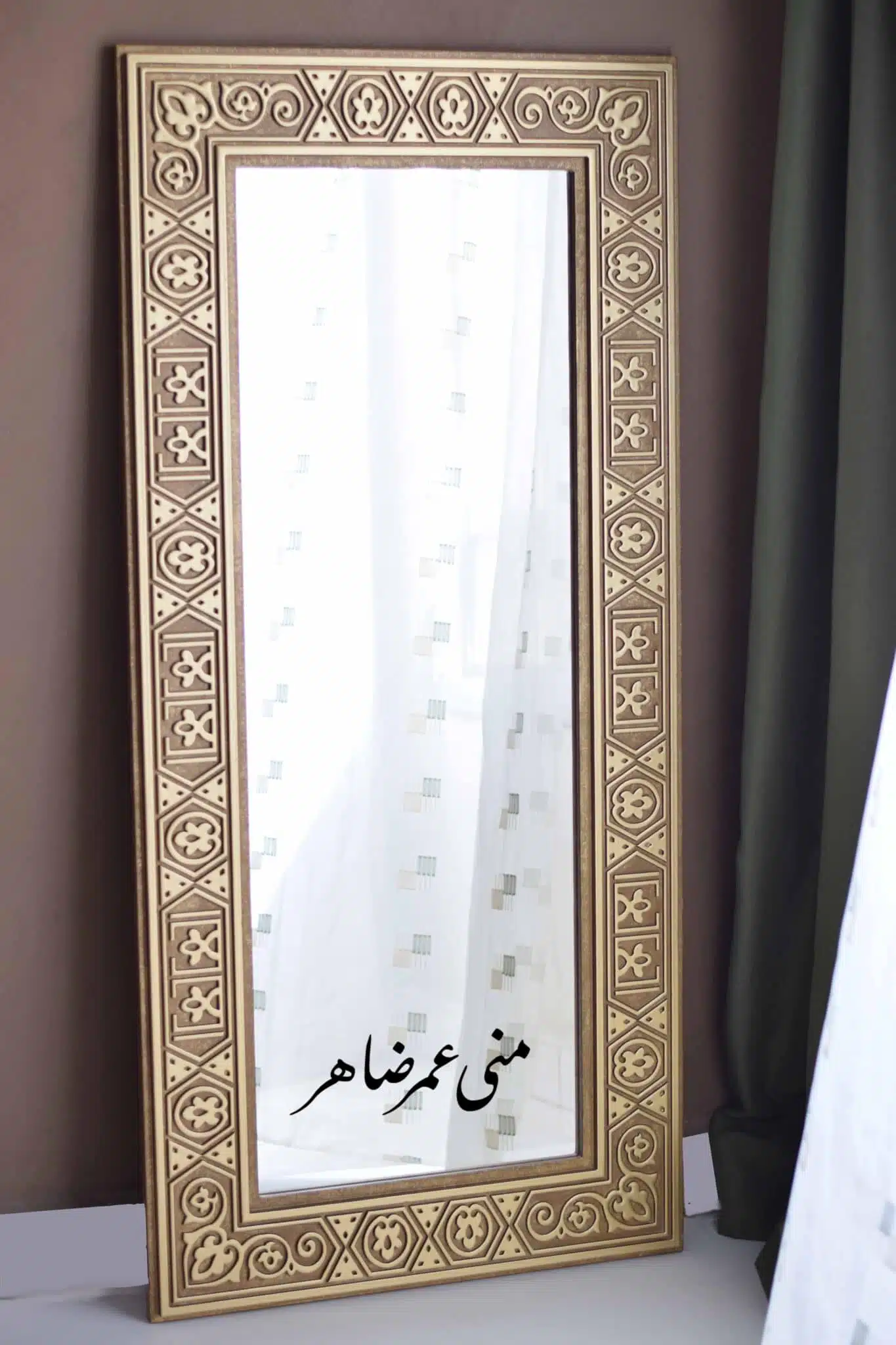 - Material: Wooden frame with mirror.