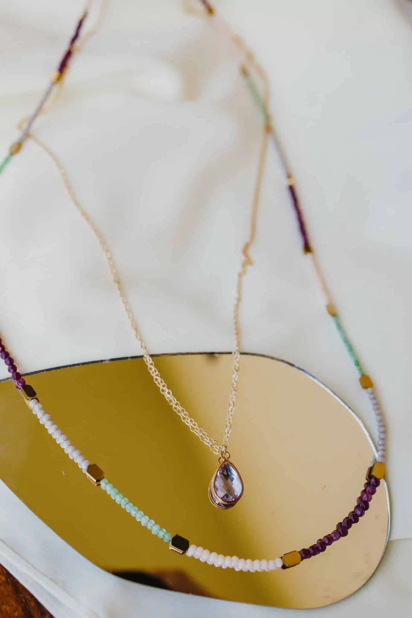 This necklace is made of Hematite Crystal Agate Stainless Steel