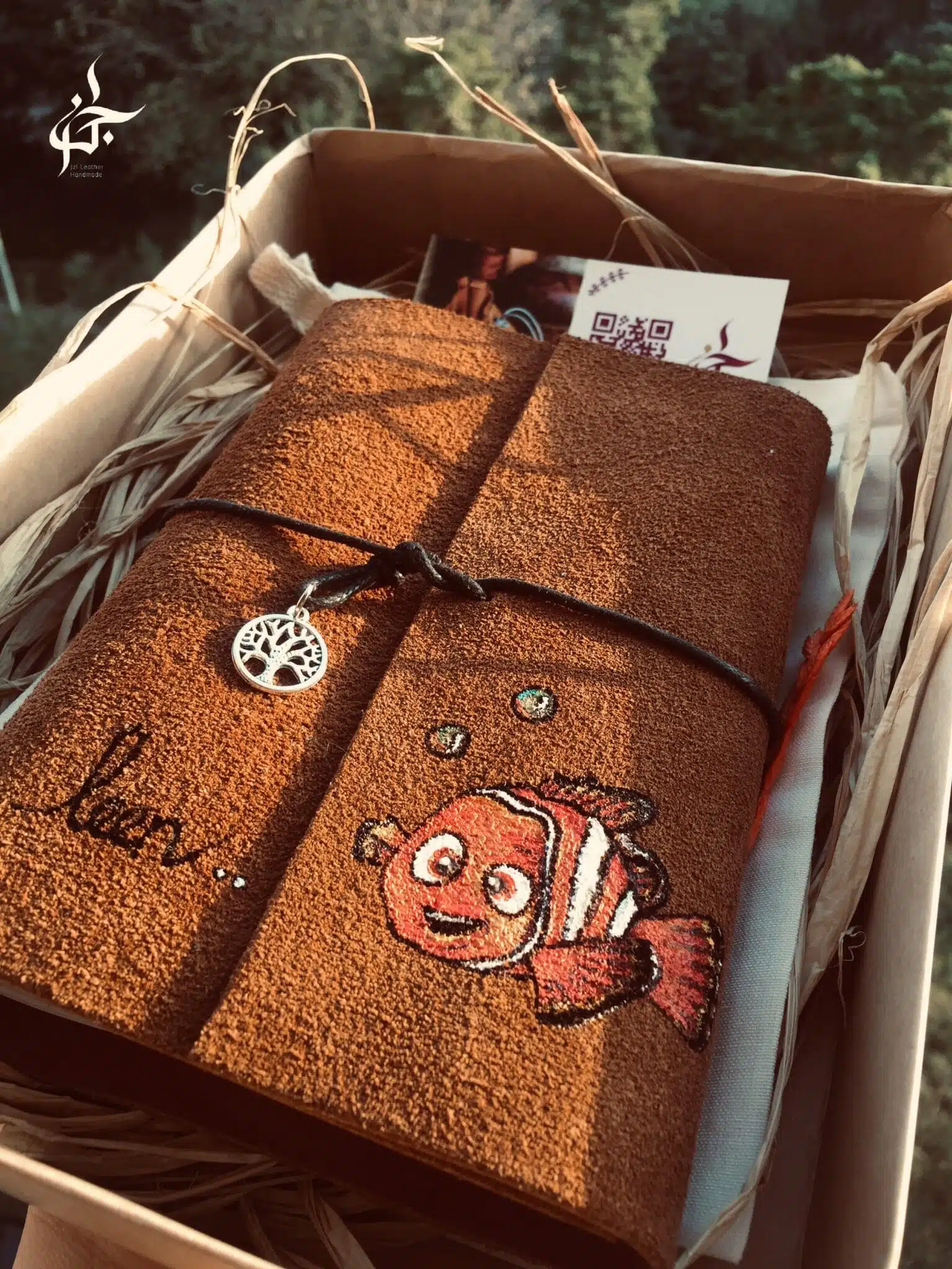 handmade genuine leather notebook with hand painted cover.