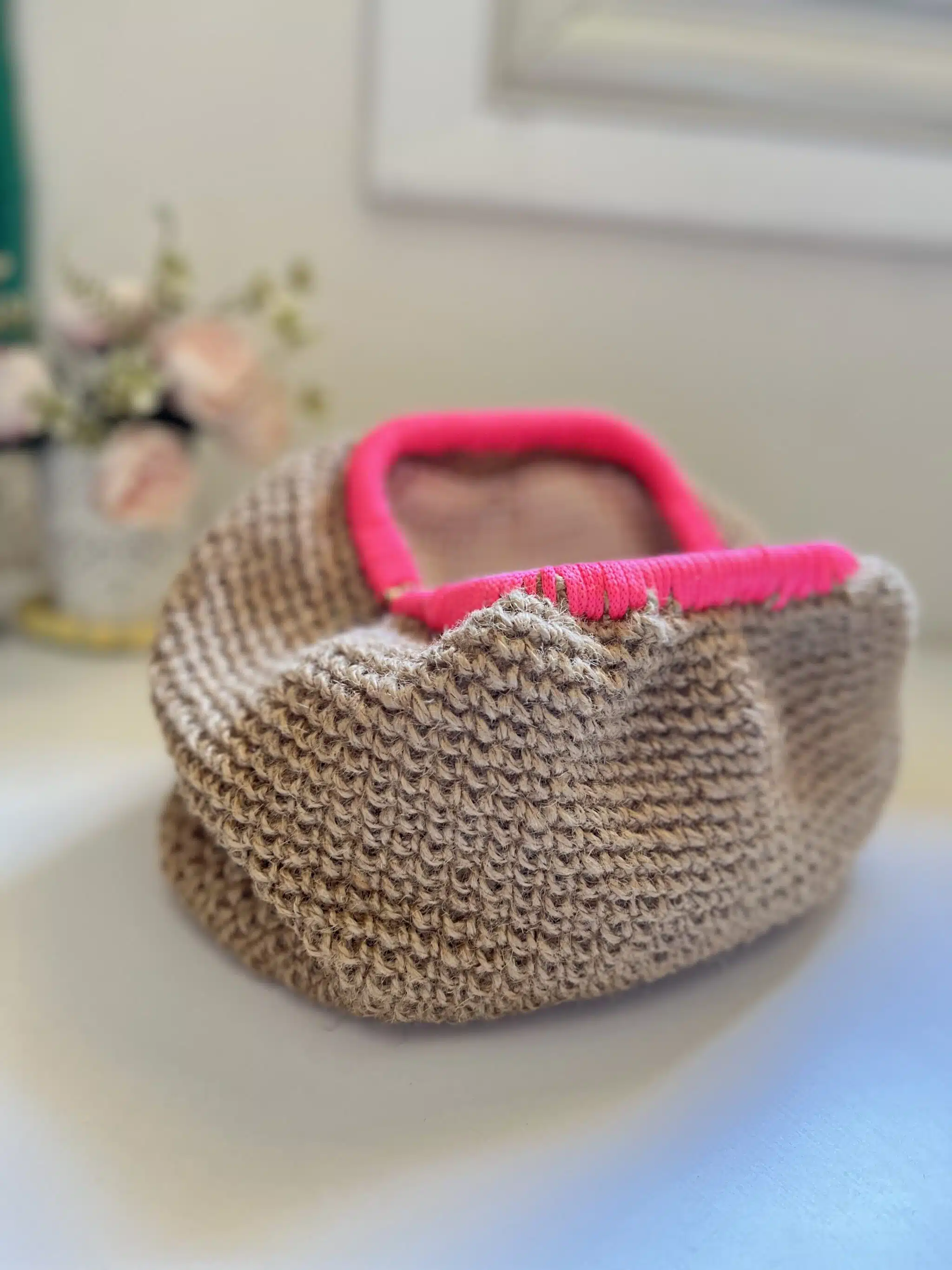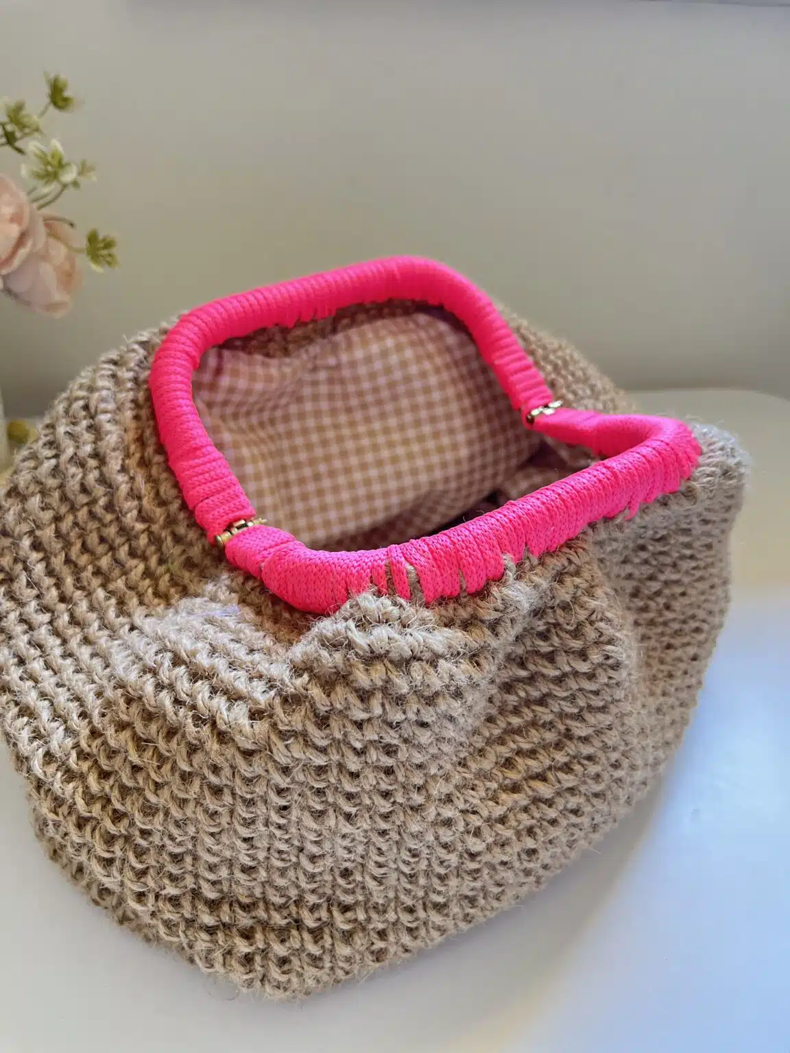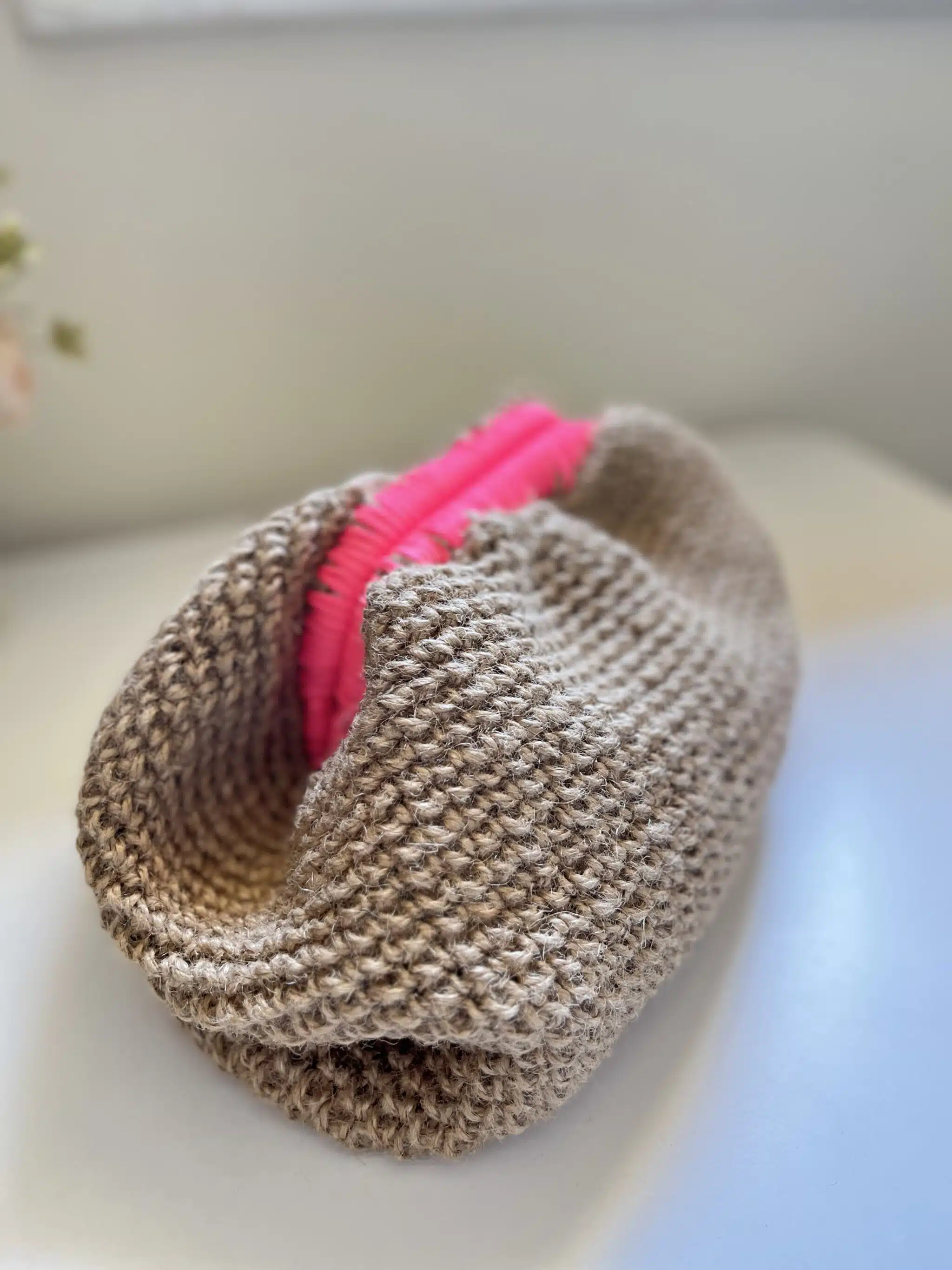 Neon crochet buffy bag with jute