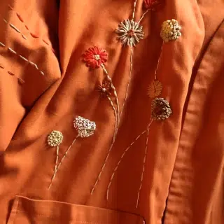 - Hand-embroidered