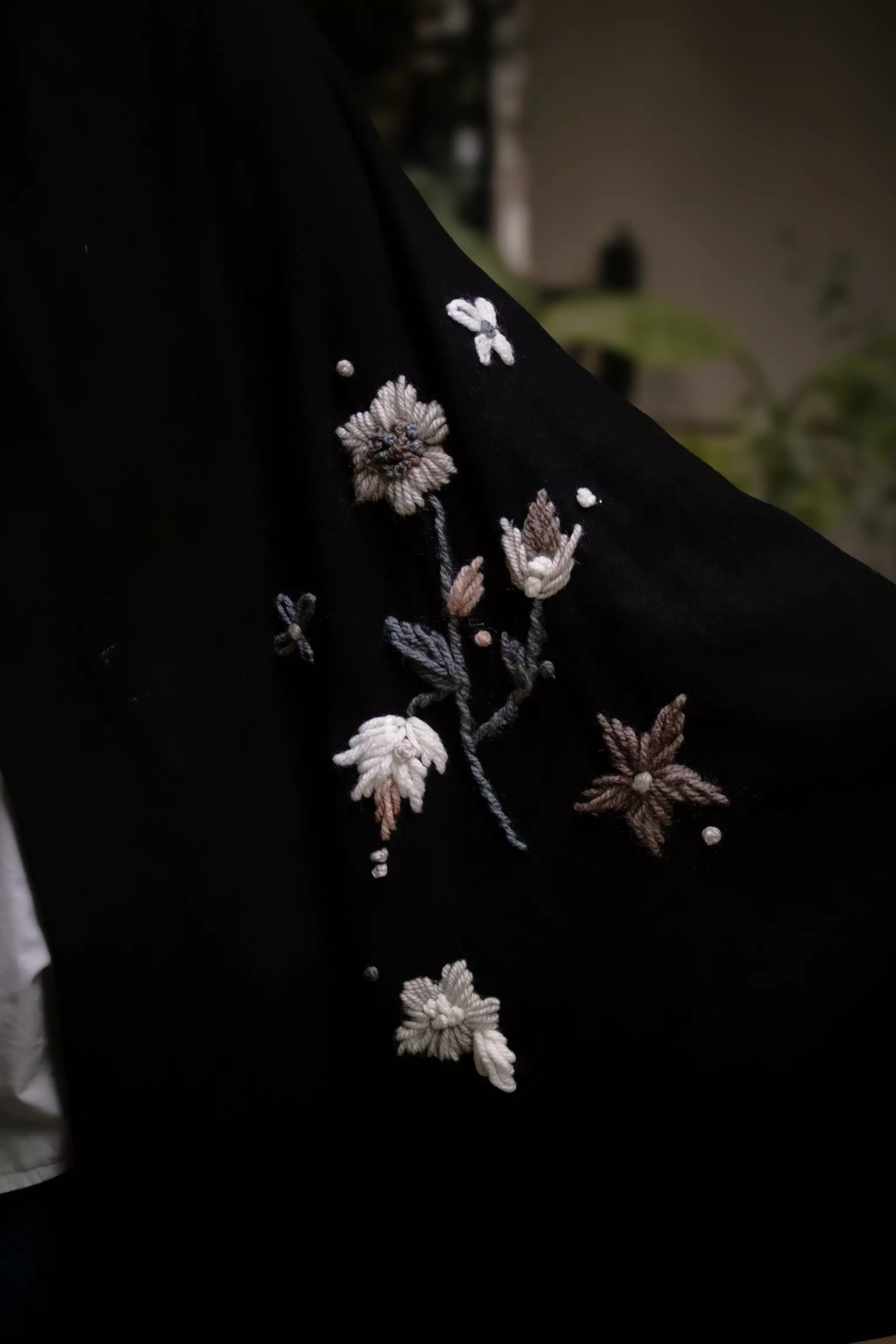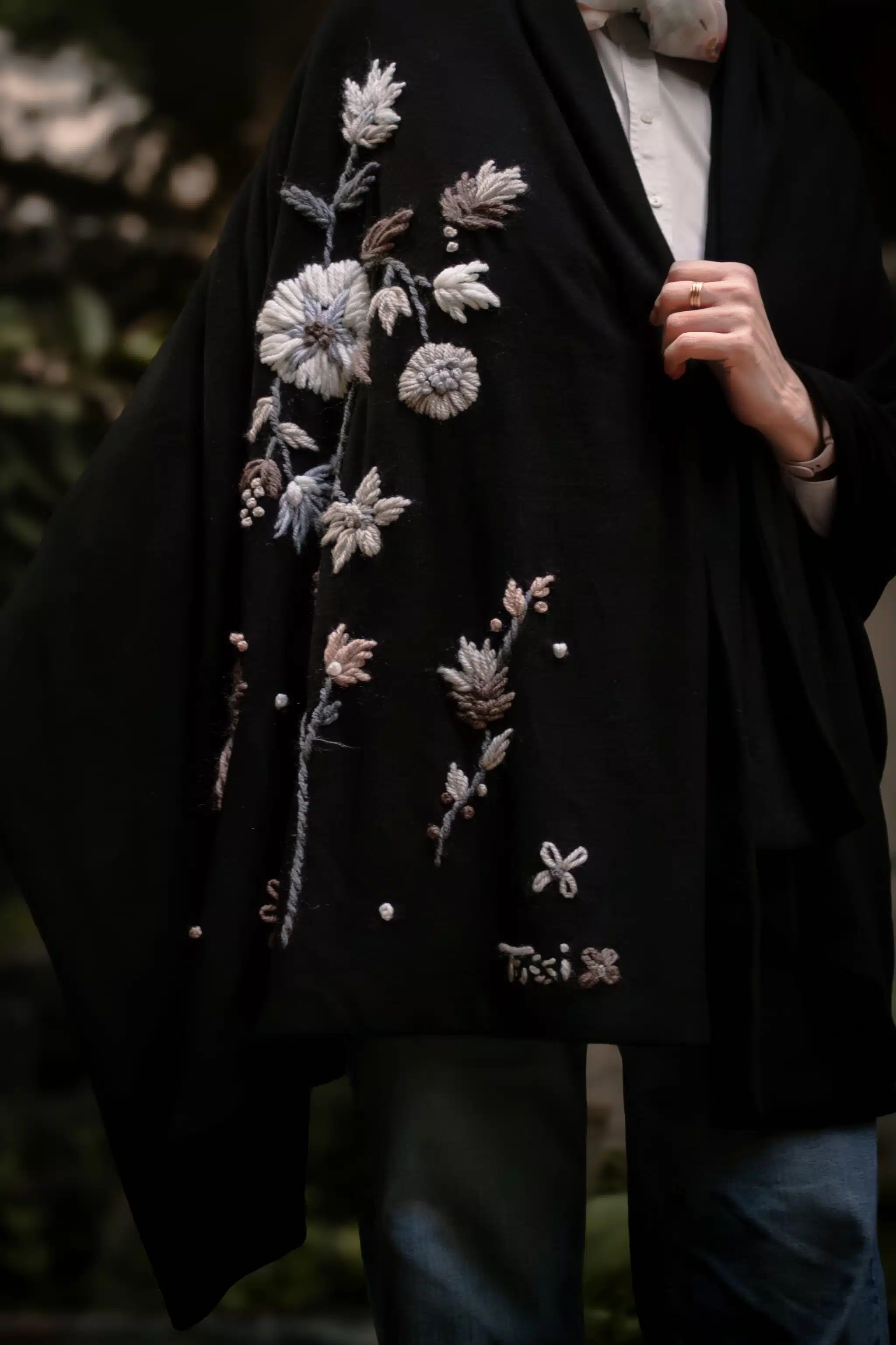 - Hand-embroidered