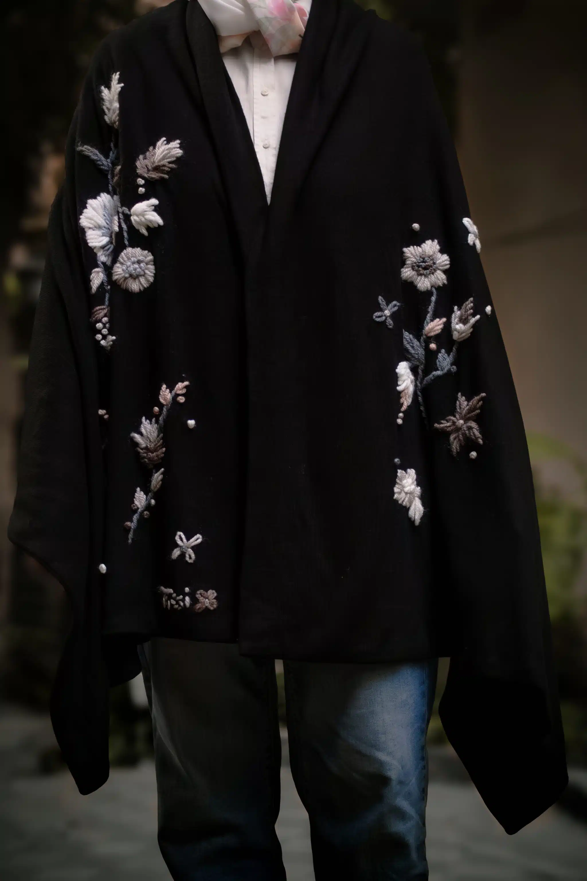 Neutral Floral Black Shawl