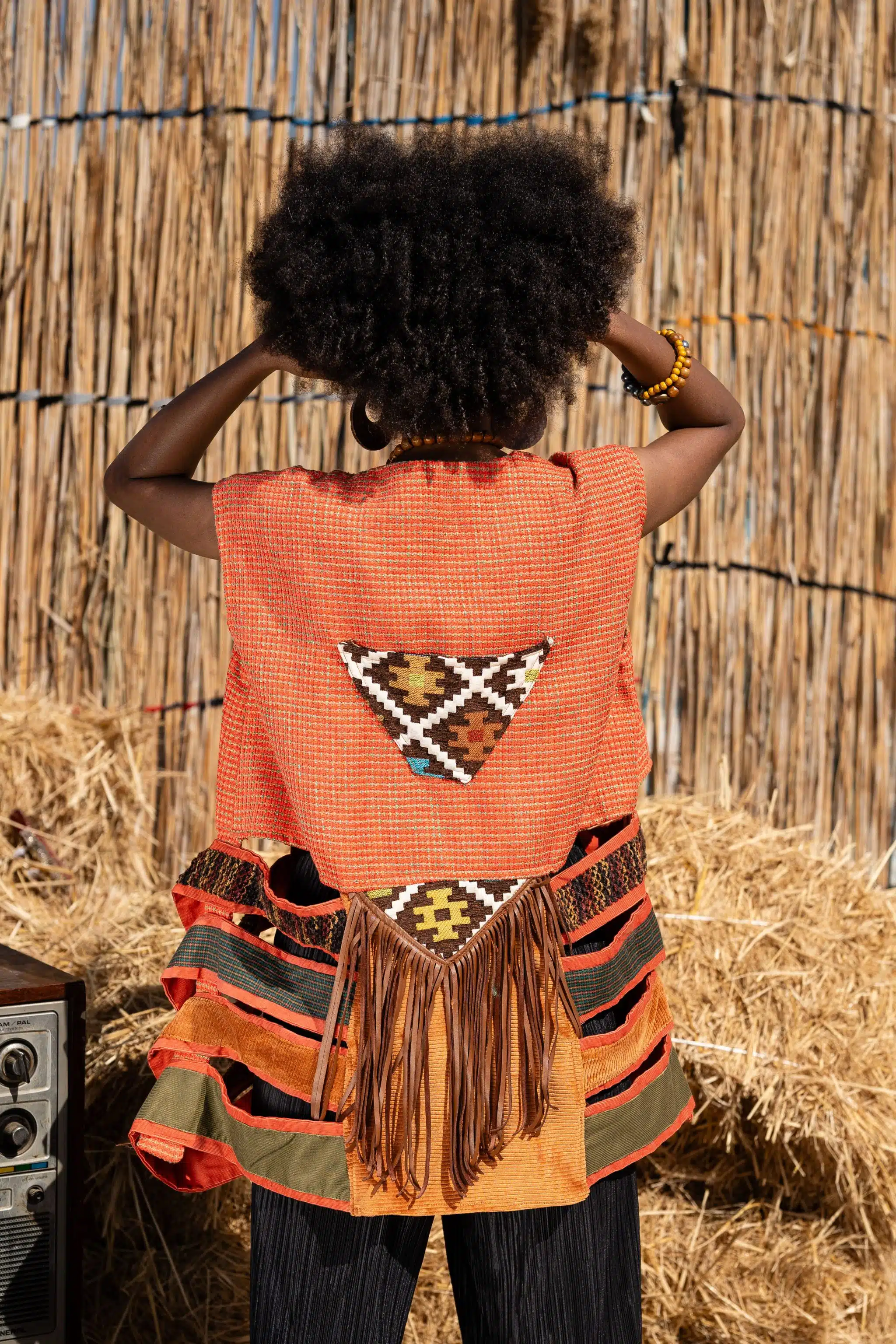 This patchwork nomad ethnic vest is an absolute must have in a woman’s wardrobe, this vest designed to give you chic and hippie look.