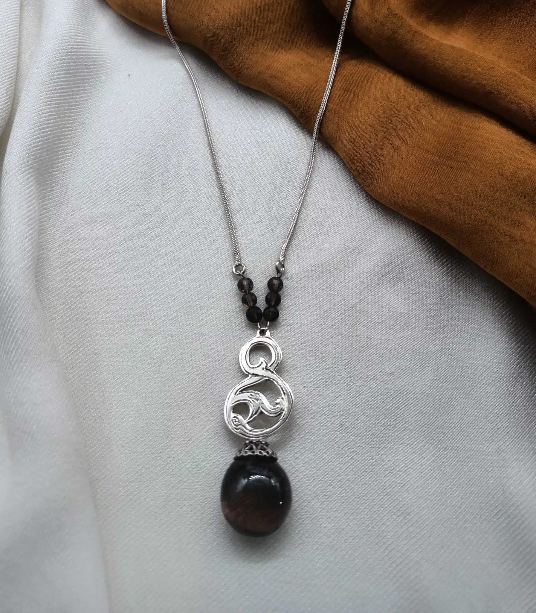1. قلادة مستلهمة من زخارف نباتية من الفضة الخالصة واحجار smoked Topaz