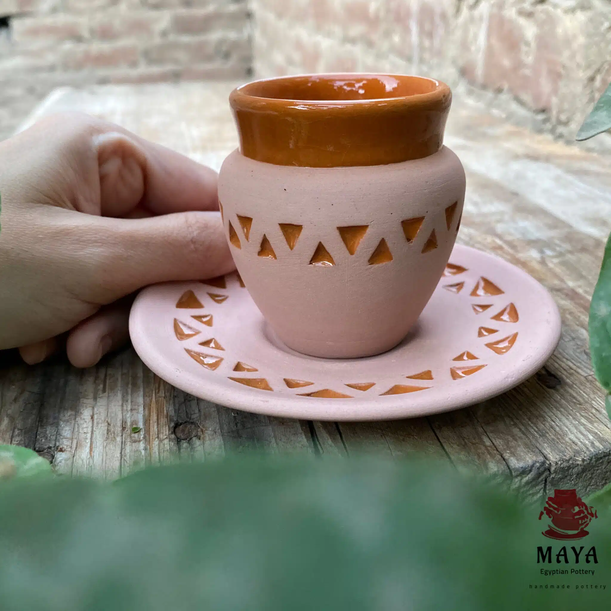 A pottery coffee cup featuring hand-drawn and carved Nubian triangles. If the quantity runs out, it will be remanufactured within 20 days.