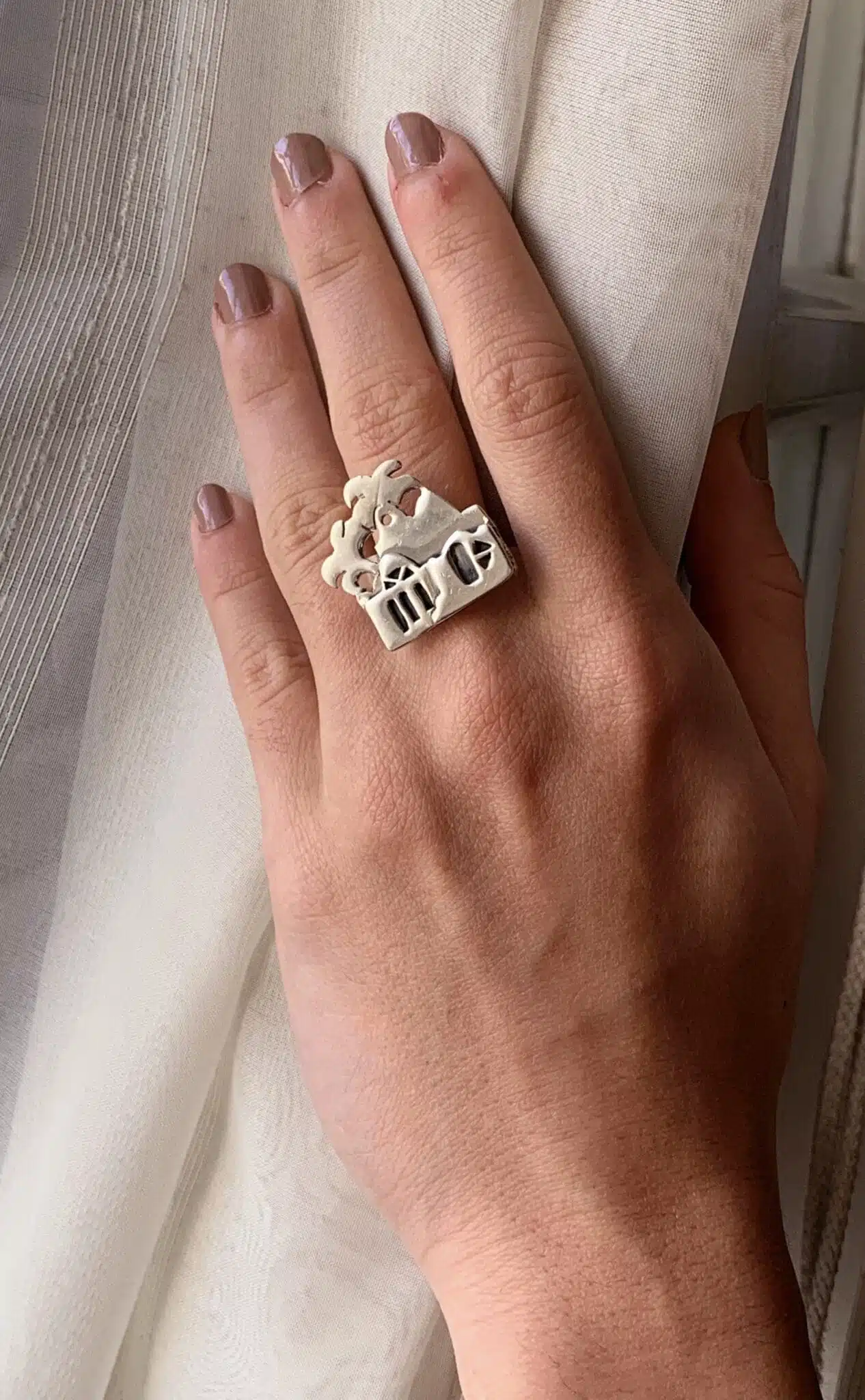 Handmade sterling silver 925 ring featuring a Nubian house