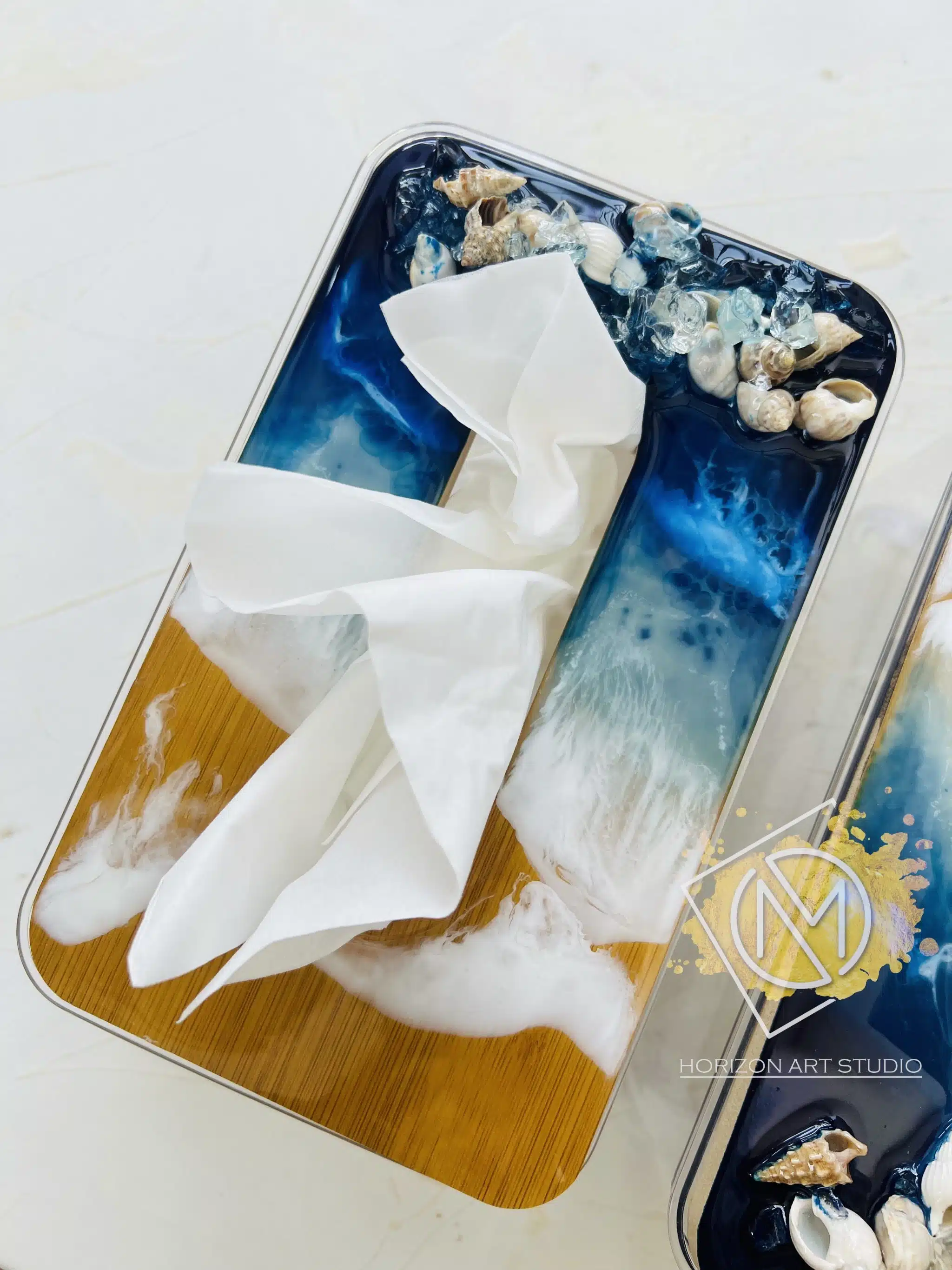 Transparent box with natural bamboo wood with a layer of luxurious resin