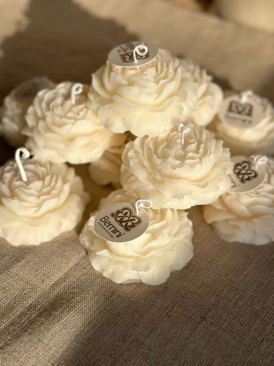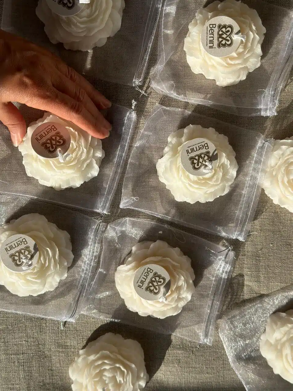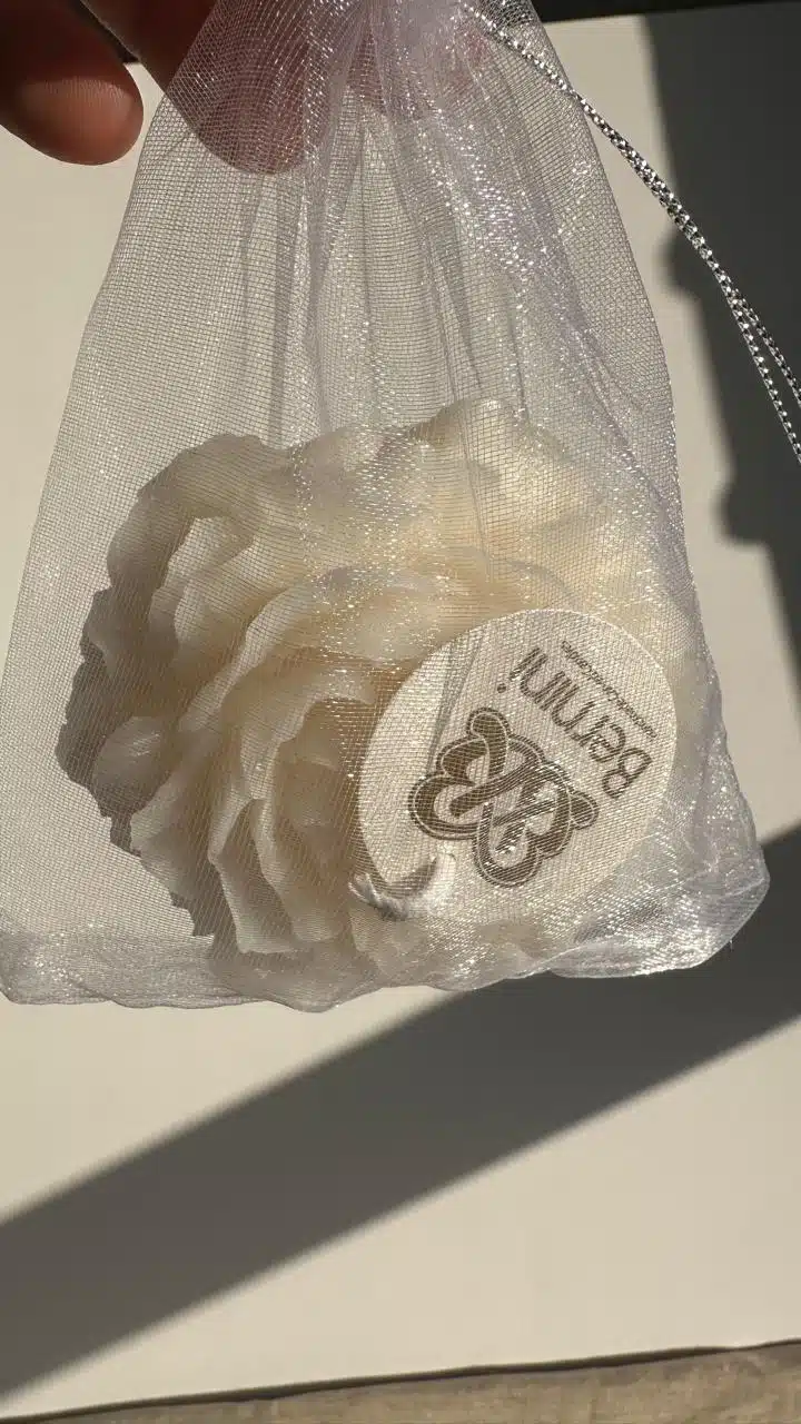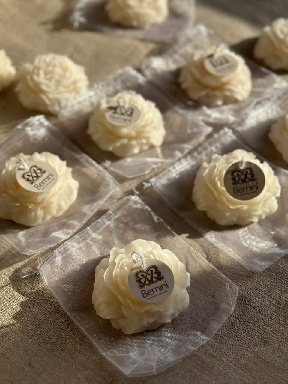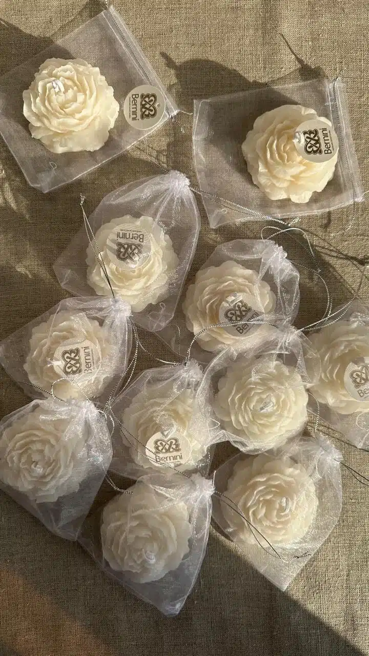 Set of 6 scented flower candles. Comes covered with Tull or Organza bag for each flower