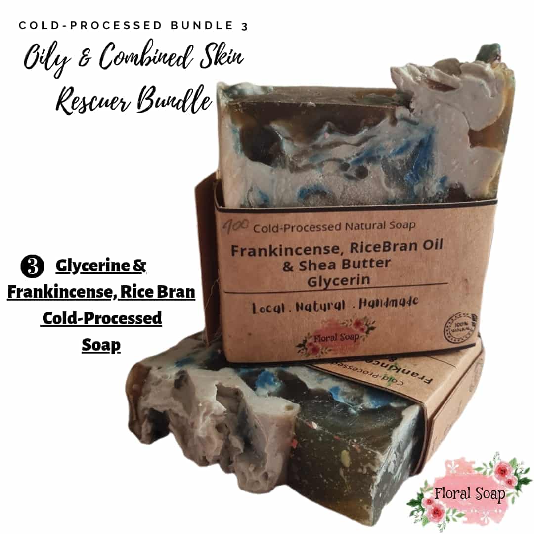 It’s a blend of Glycerine with Shea Butter Soap and Cold-processed Soap enriched with Frankincense &Rice Brain Oils.