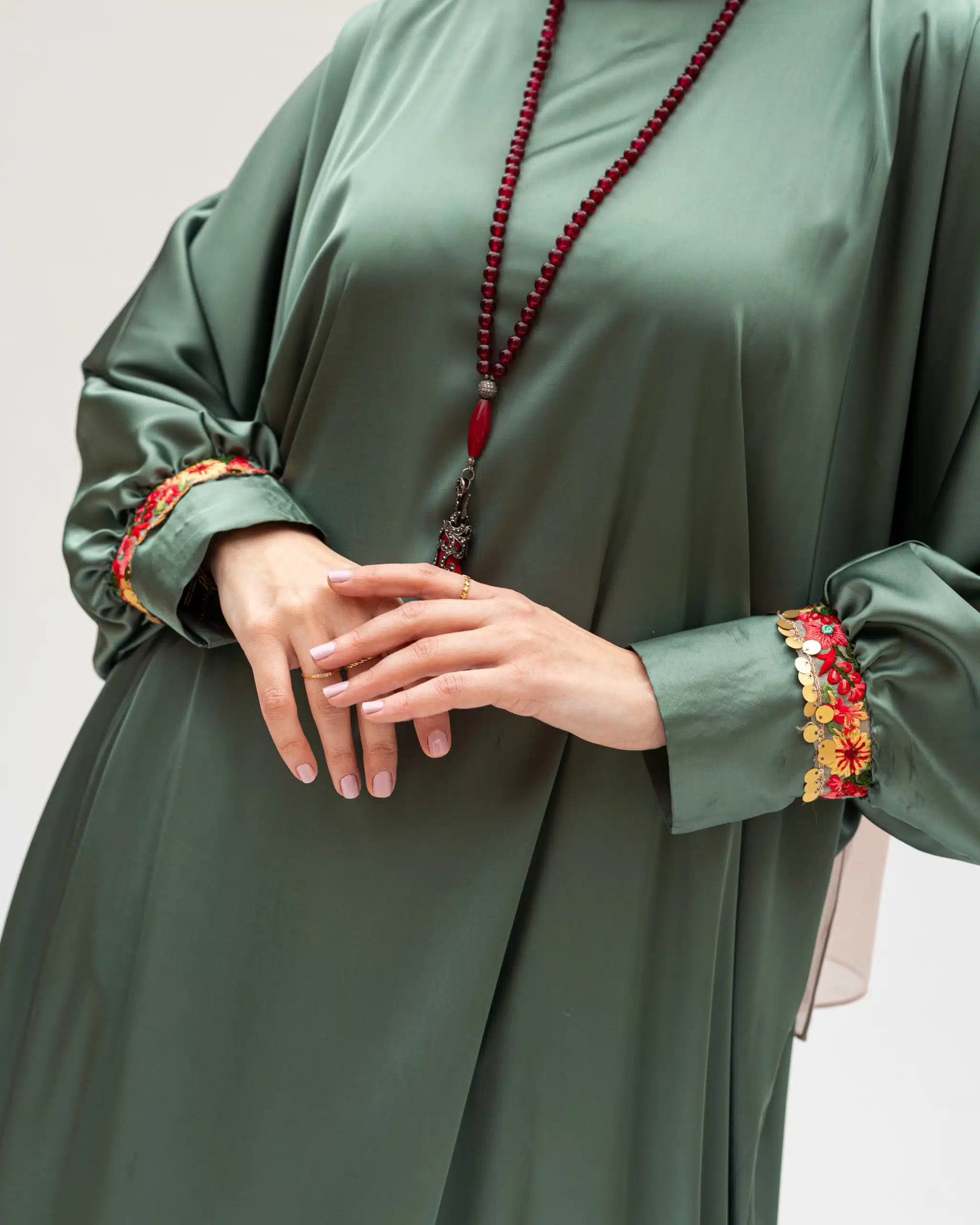 - flared kimono style sleeves